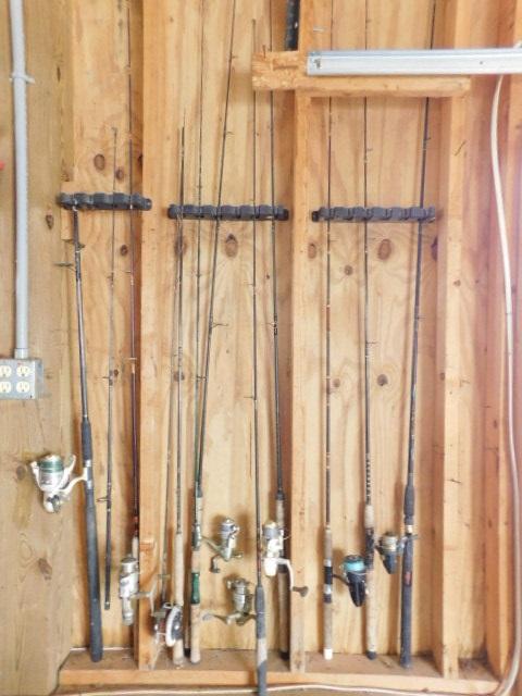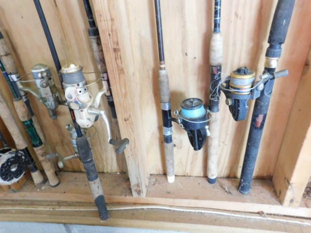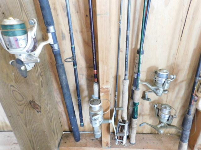 Collection of Fishing Rods and Reels including Accessories (Shelf not Included) condition of rods and reels no known