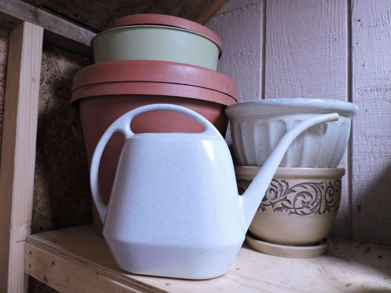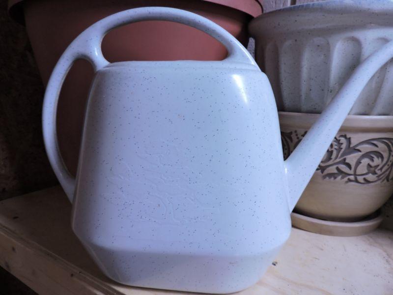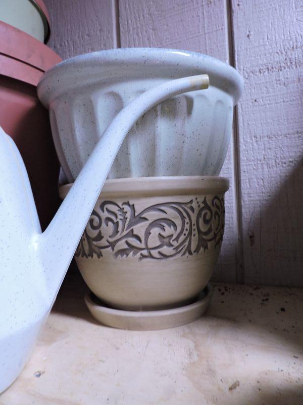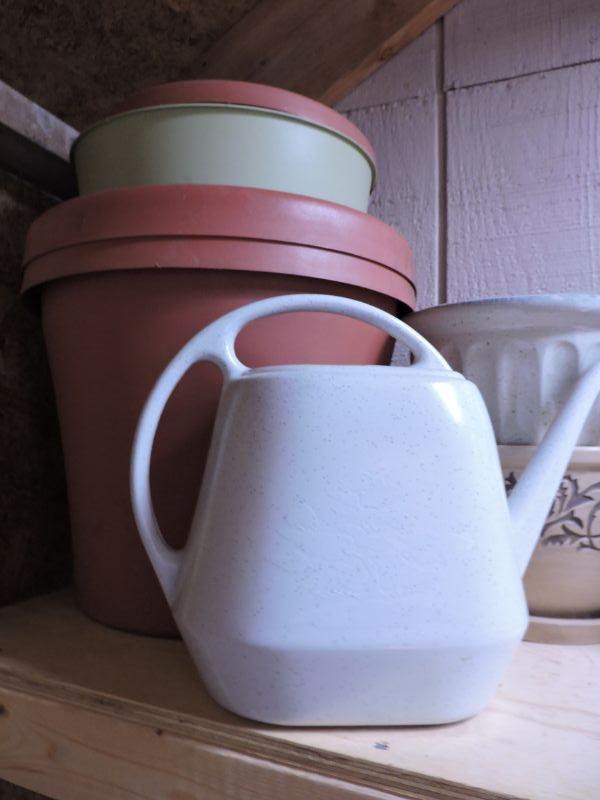 Plastic and ceramic with watering can. Please read Terms and Conditions before placing a bid. Pick up is Friday, October 25th between 4 and 7, and Saturday, October 26th between 9 and 1. Please bring boxes, tools, and muscle to help move your items. Props included in photos are not included in listing. All measurements are approximate.