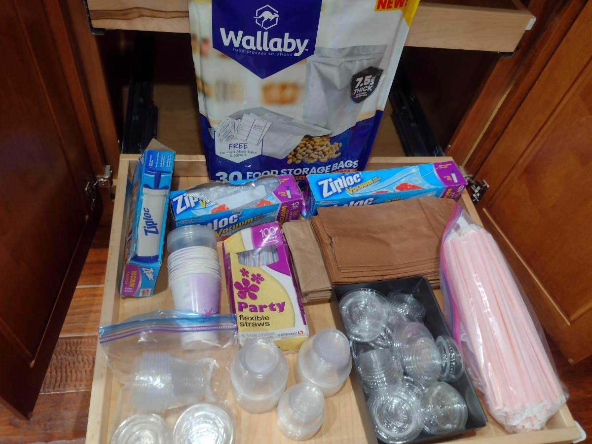 Collection of Food Storage Bags and Cups- Long Term Storage Bags Included. 24 Wallaby gallon size bags included. Please see all pictures for selection.