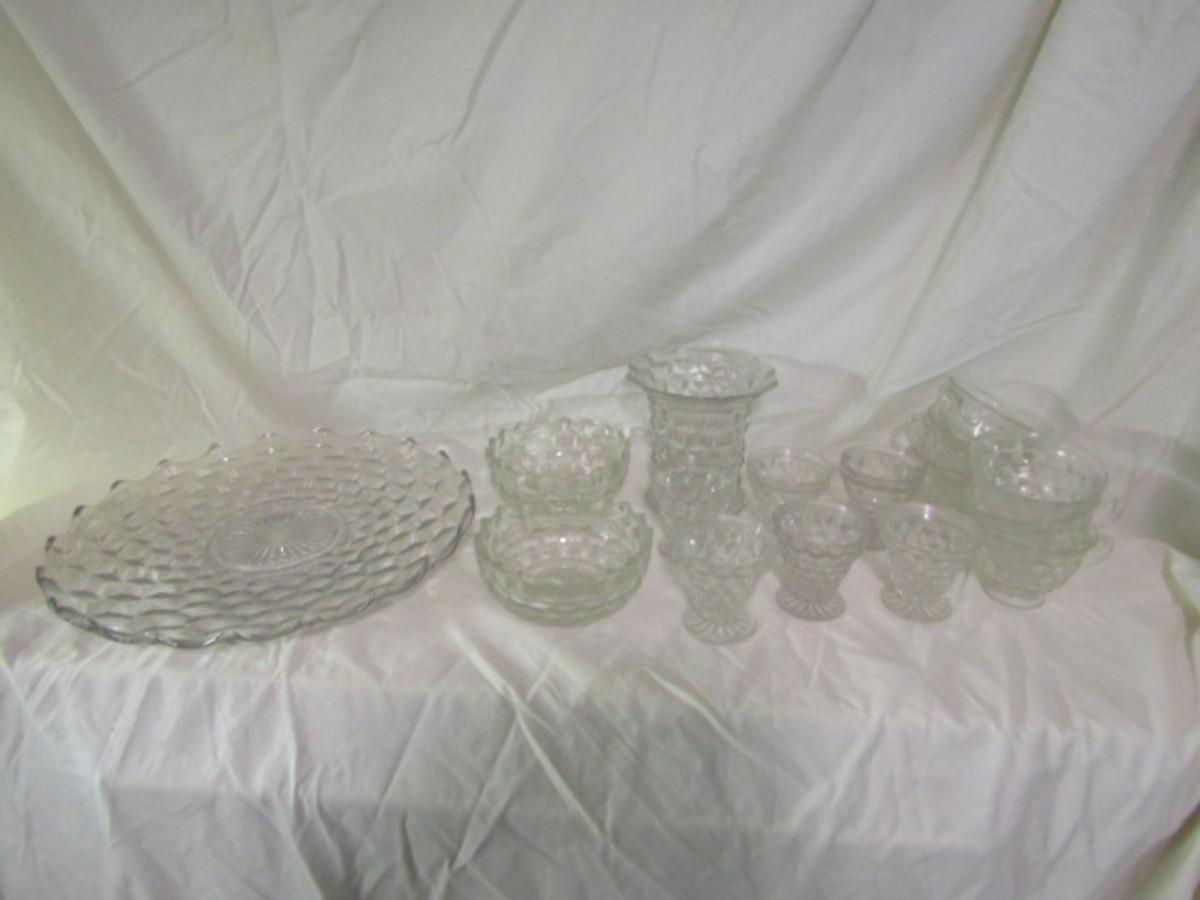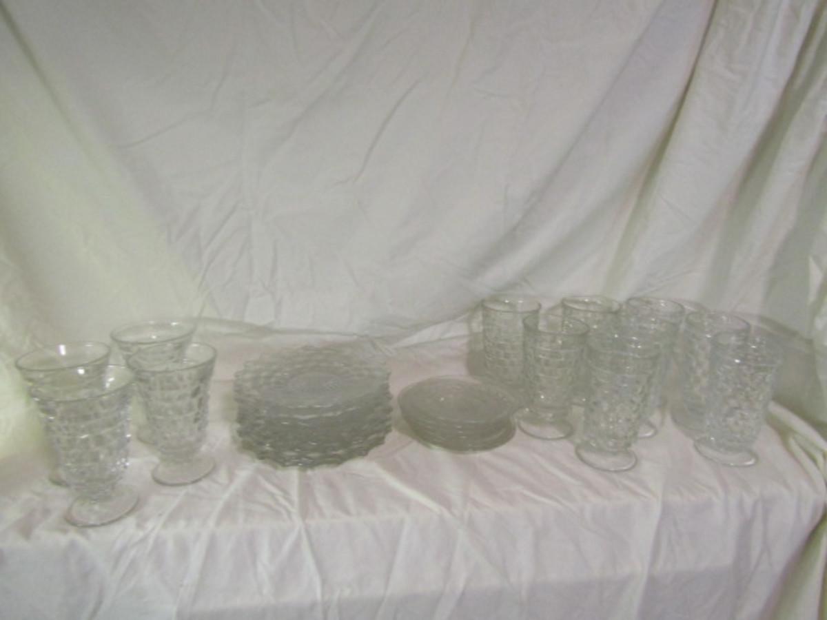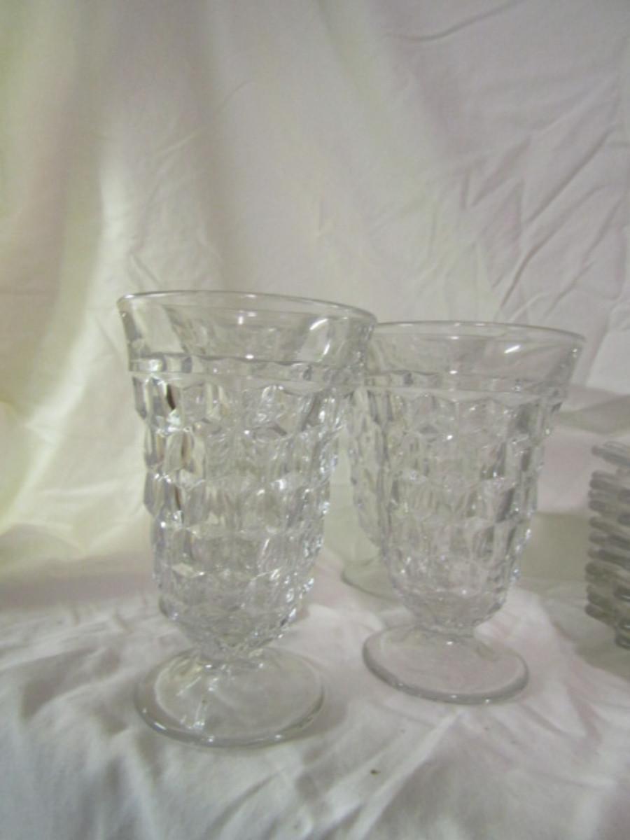 Collection of Fostoria American Cube Style Glassware- Approx 53 Pieces. In used condition, may be some chipping.