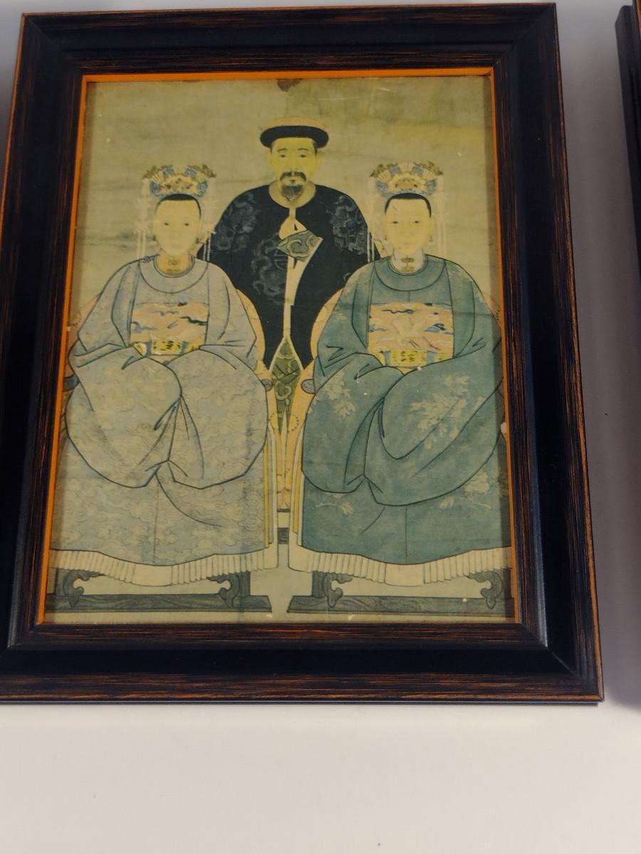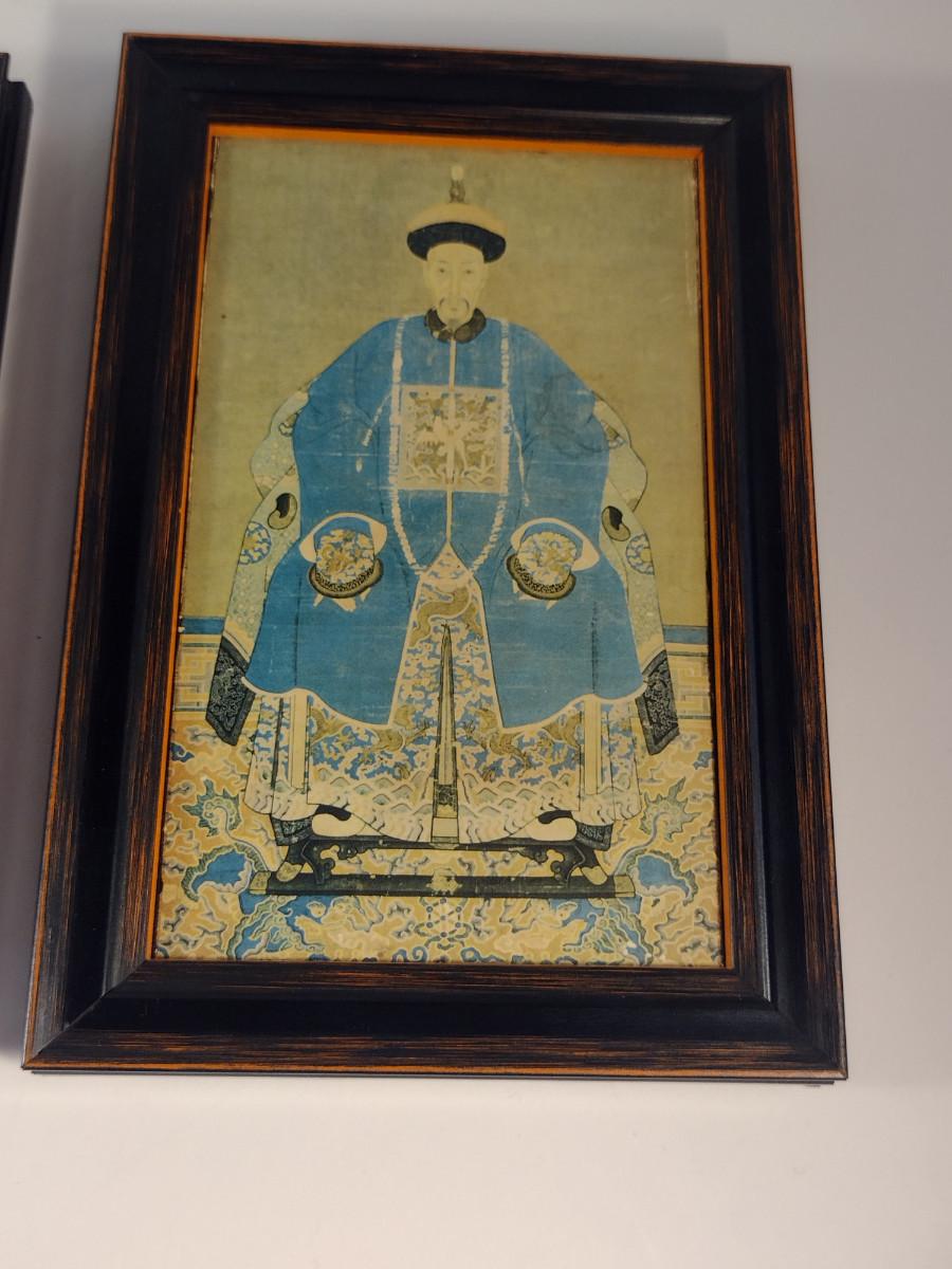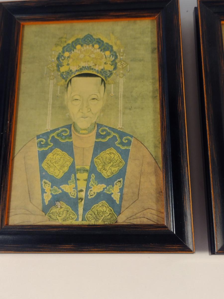 Collection of Framed Chinese Ancestor Portraits- Set of Three- Approx 6 3/4" x 4 3/4"
