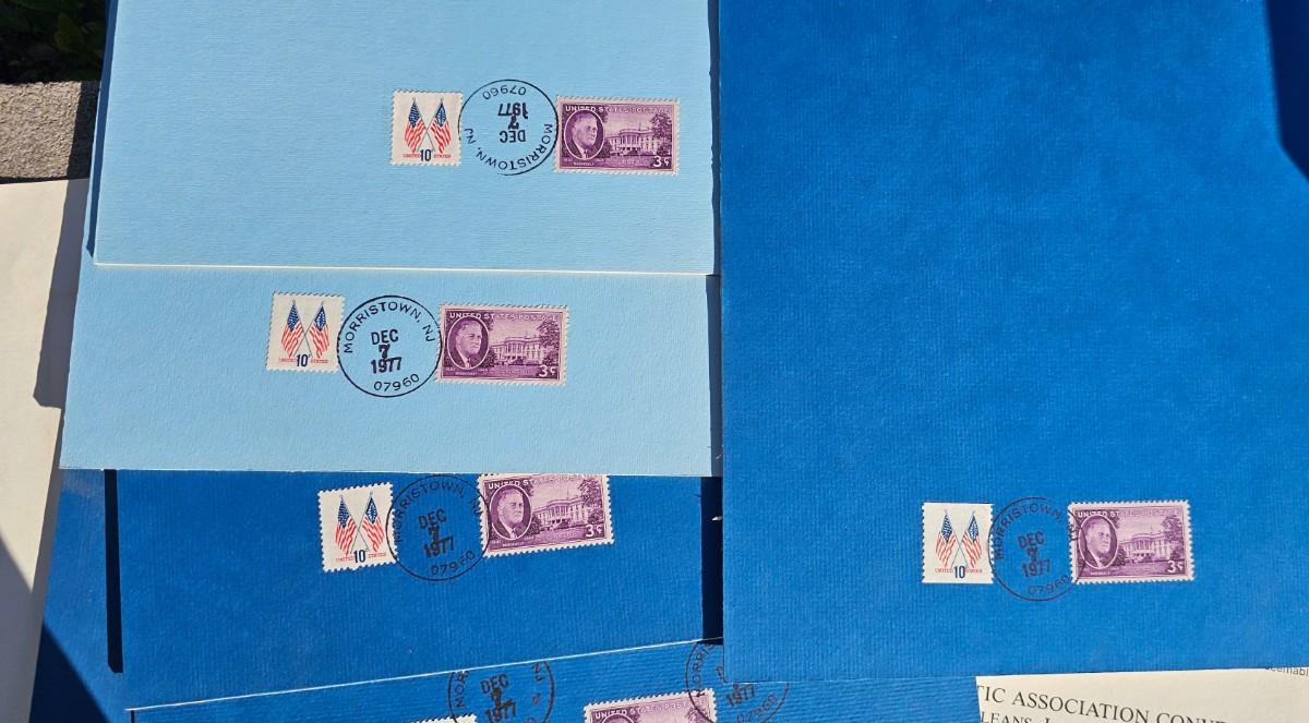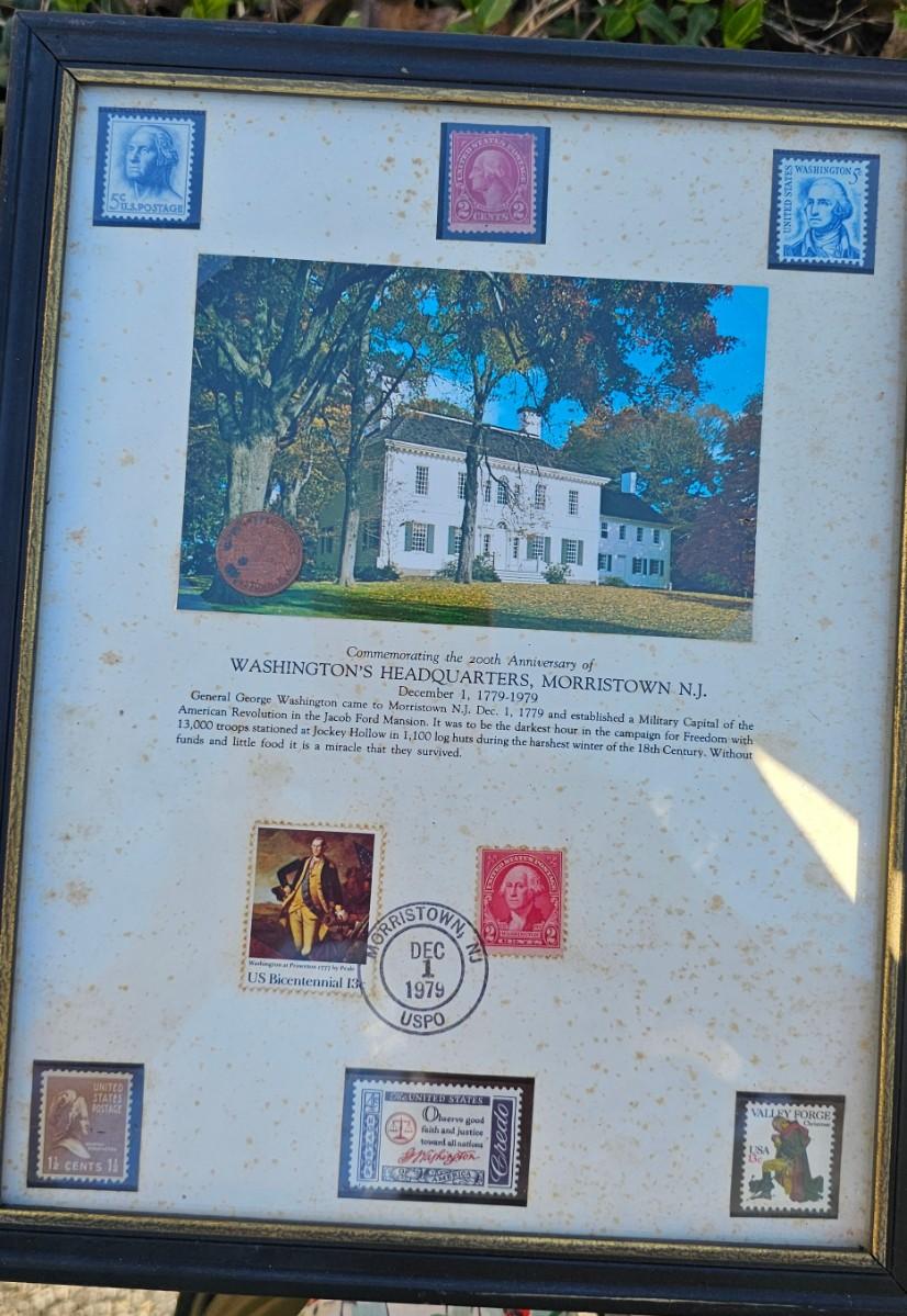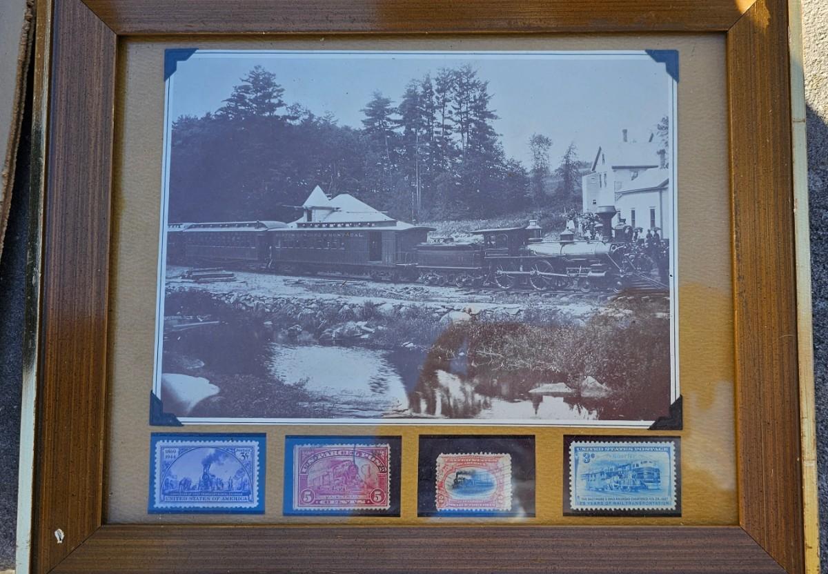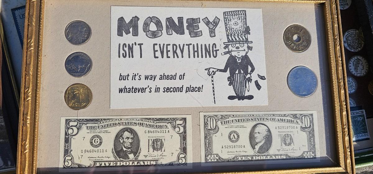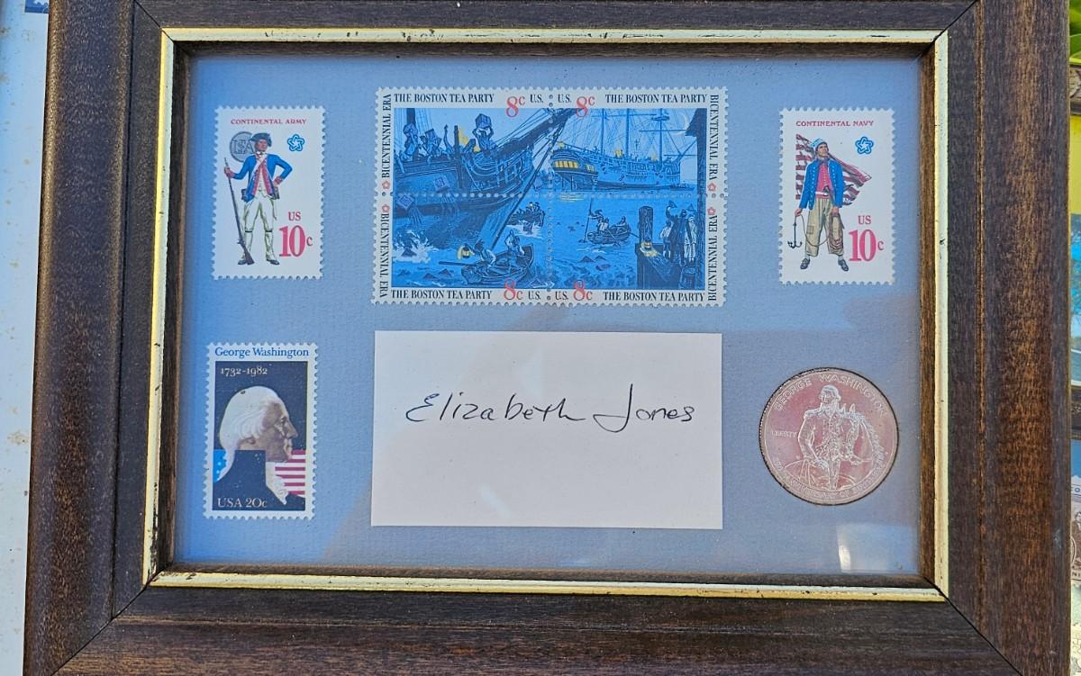 Collection of 9 framed stamps and coins in vintage frames with some bonus items