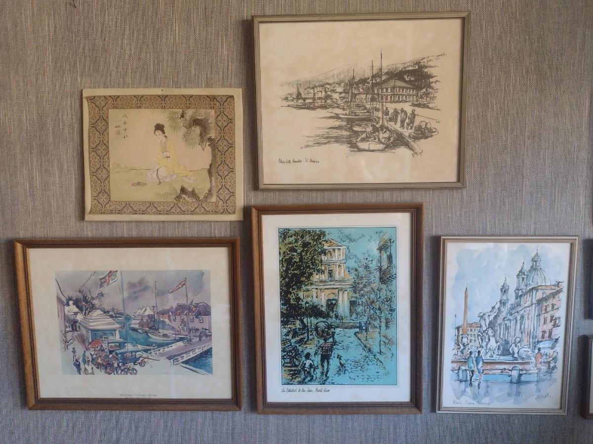 Collection of Framed Wall Art Watercolors and Fabric Art
