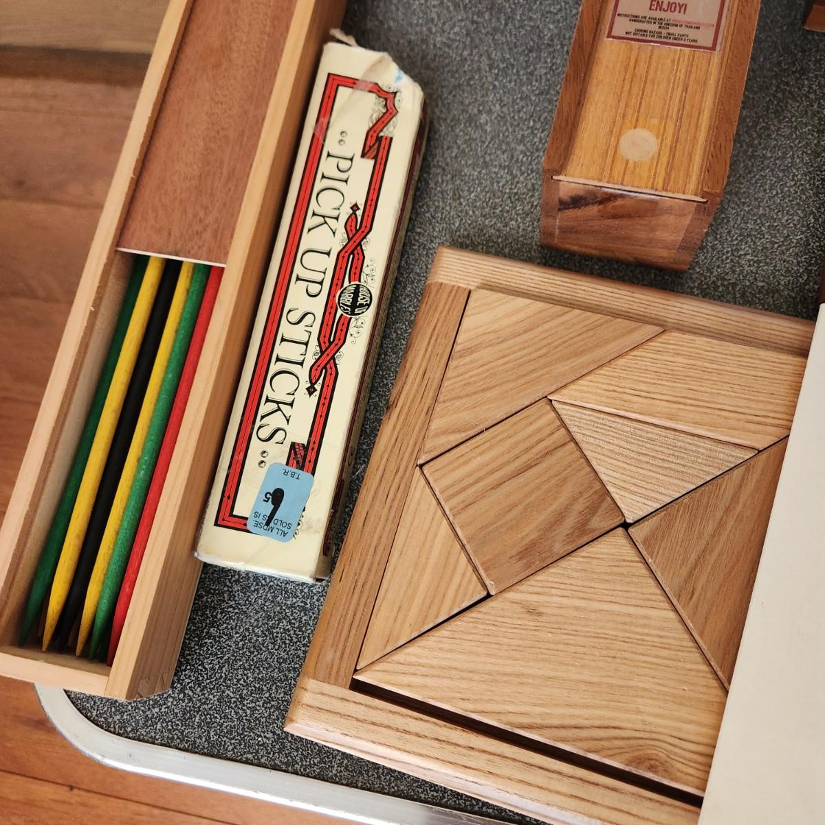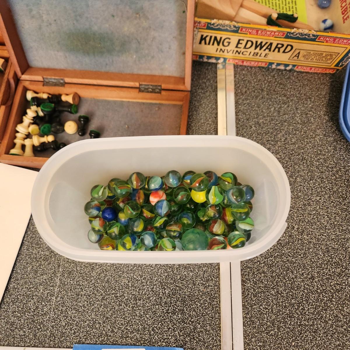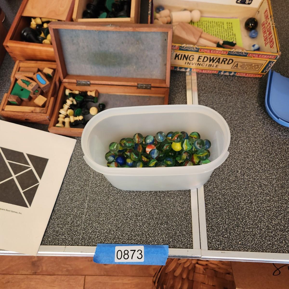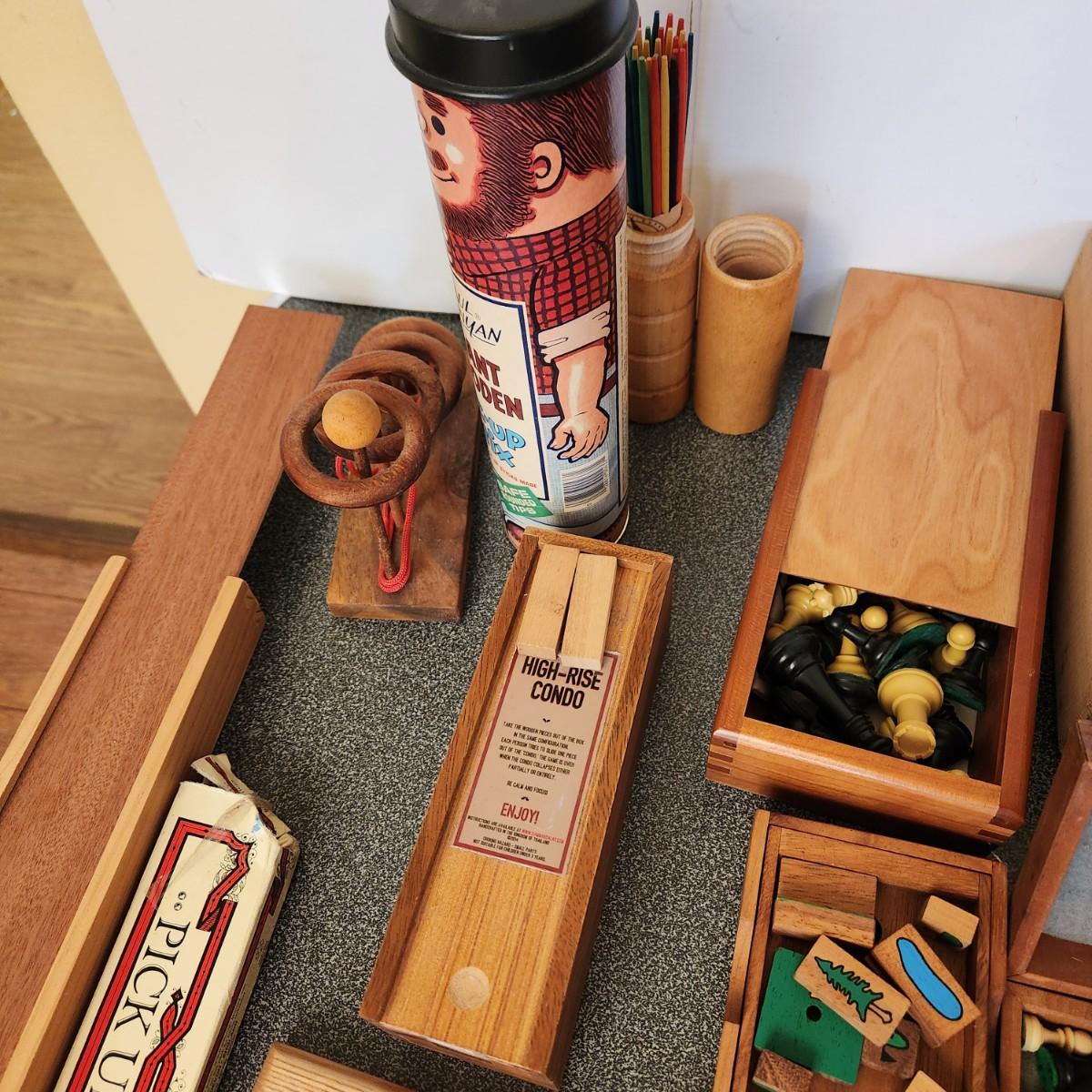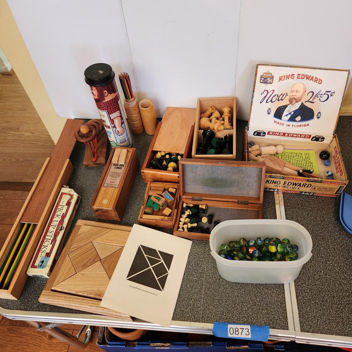 Collection of Games Marbles Marble Shooter, Pickup Sticks, Chess Pieces, Wood Puzzles