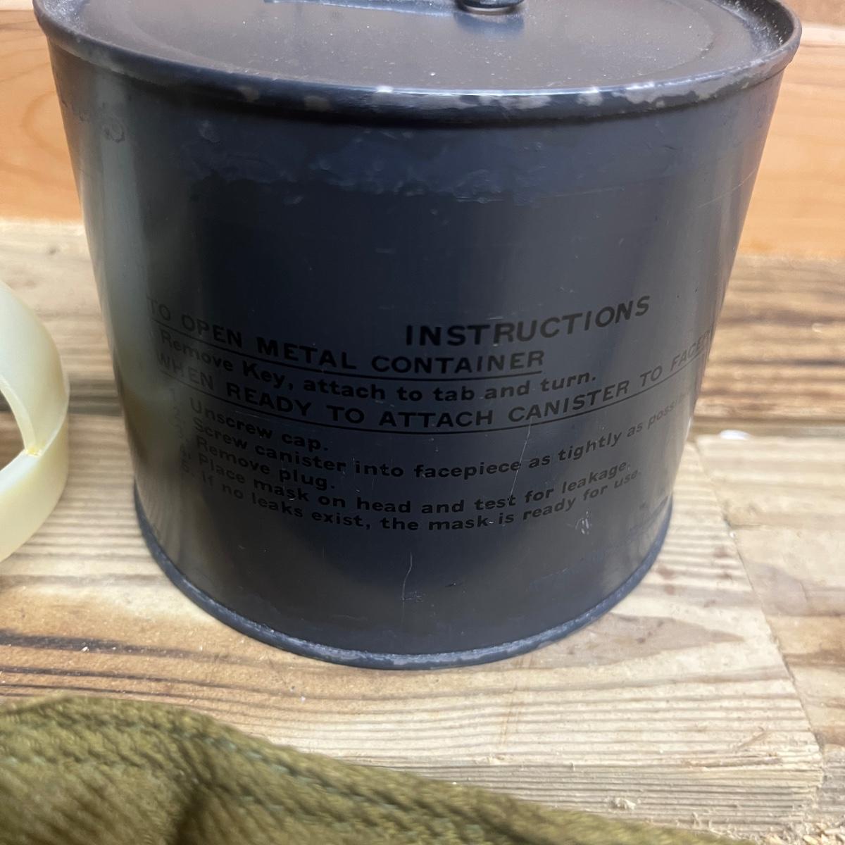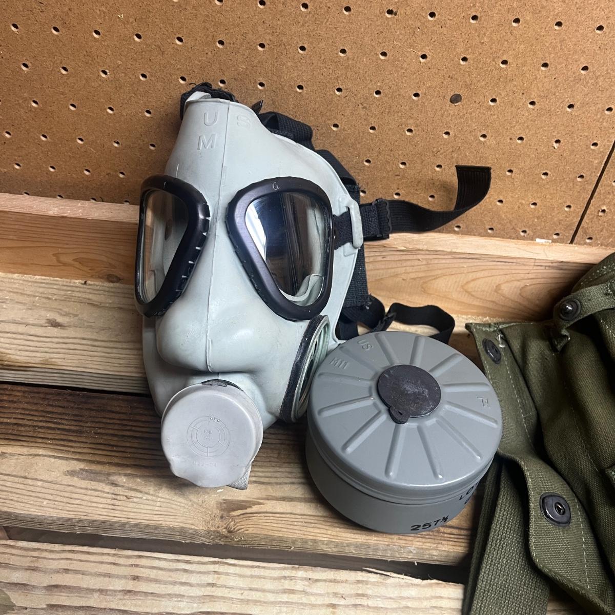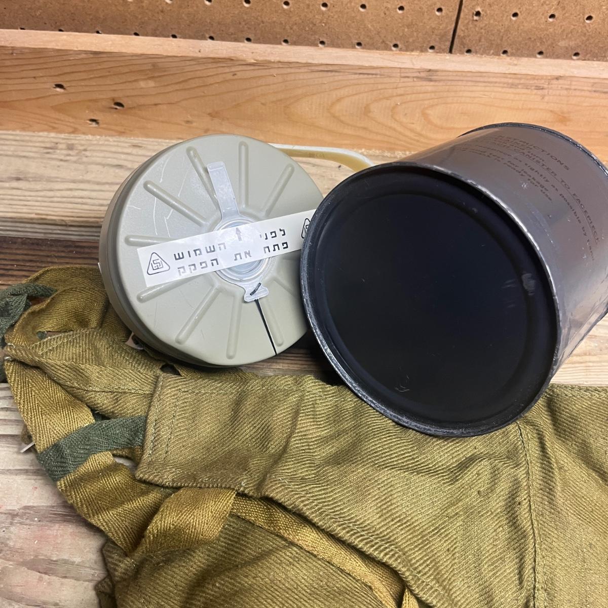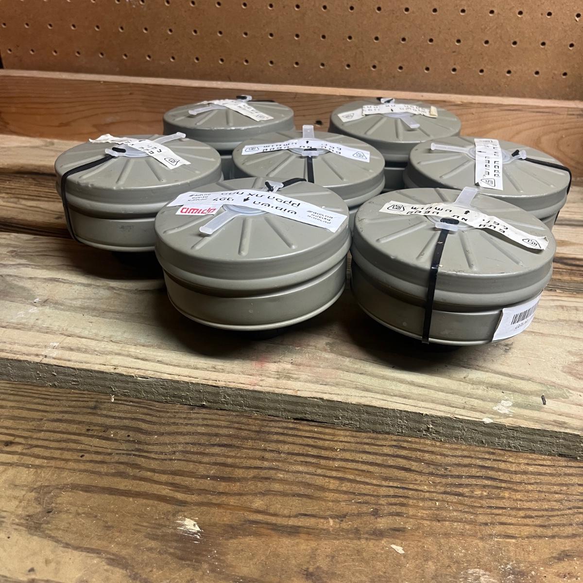 Lot includes four gas masks, over 10 canisters and a few carrying bags.