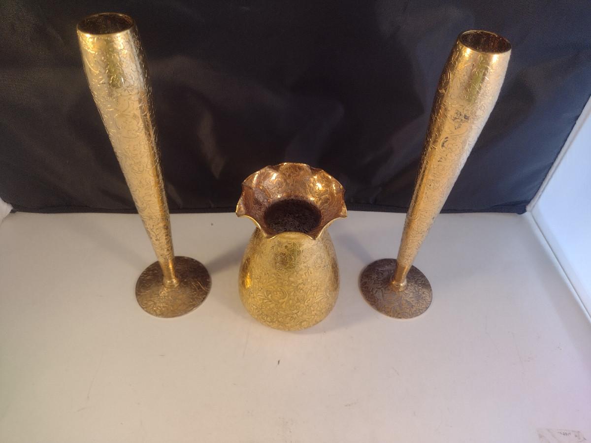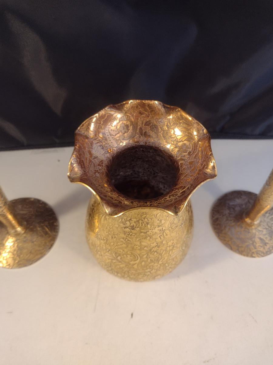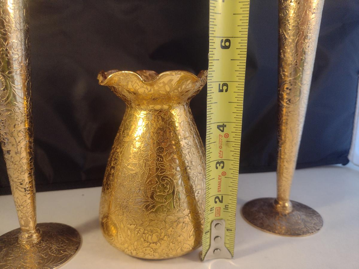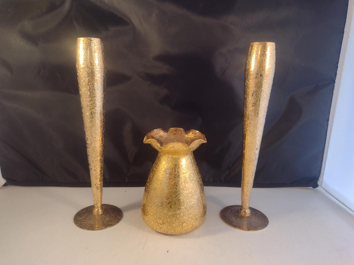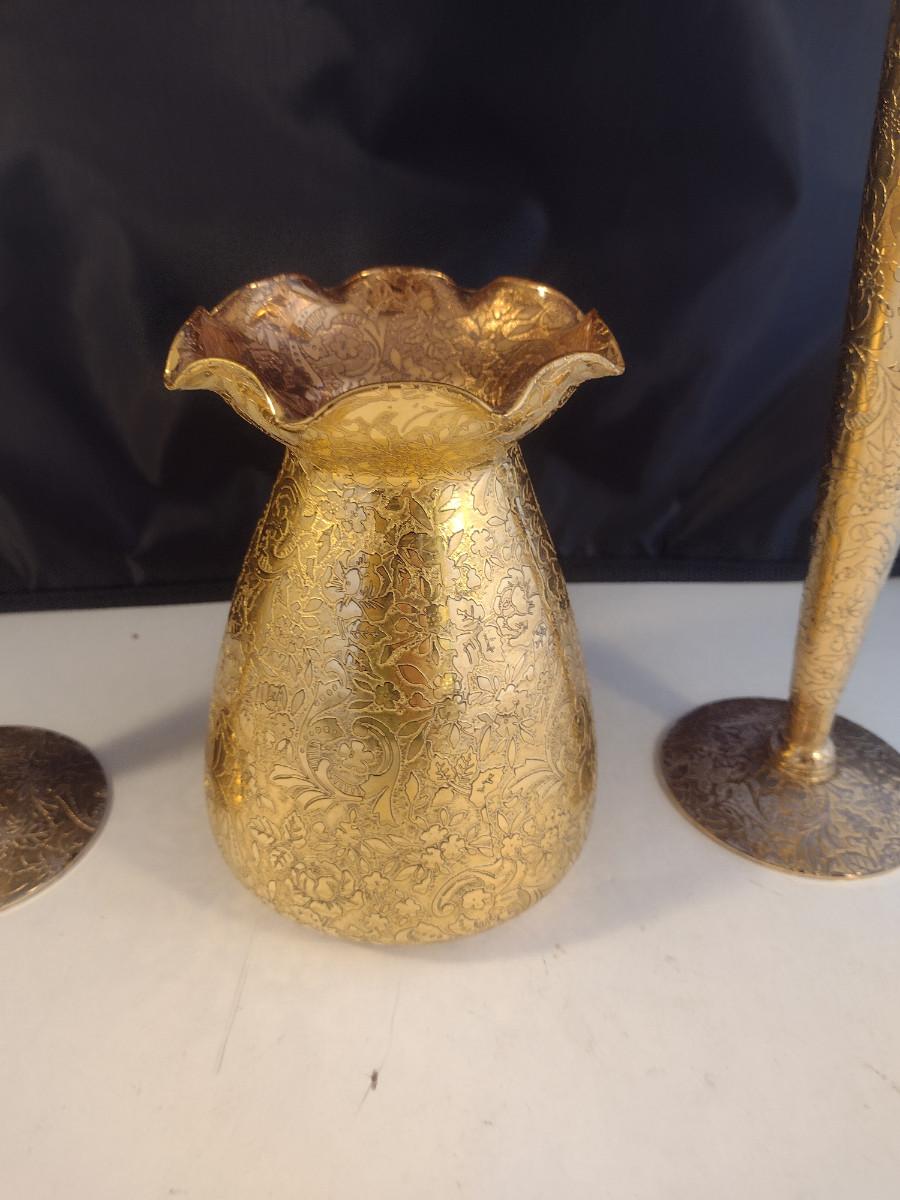 Collection of Gilded Embossed Glass Vases- Possibly Glastonbury