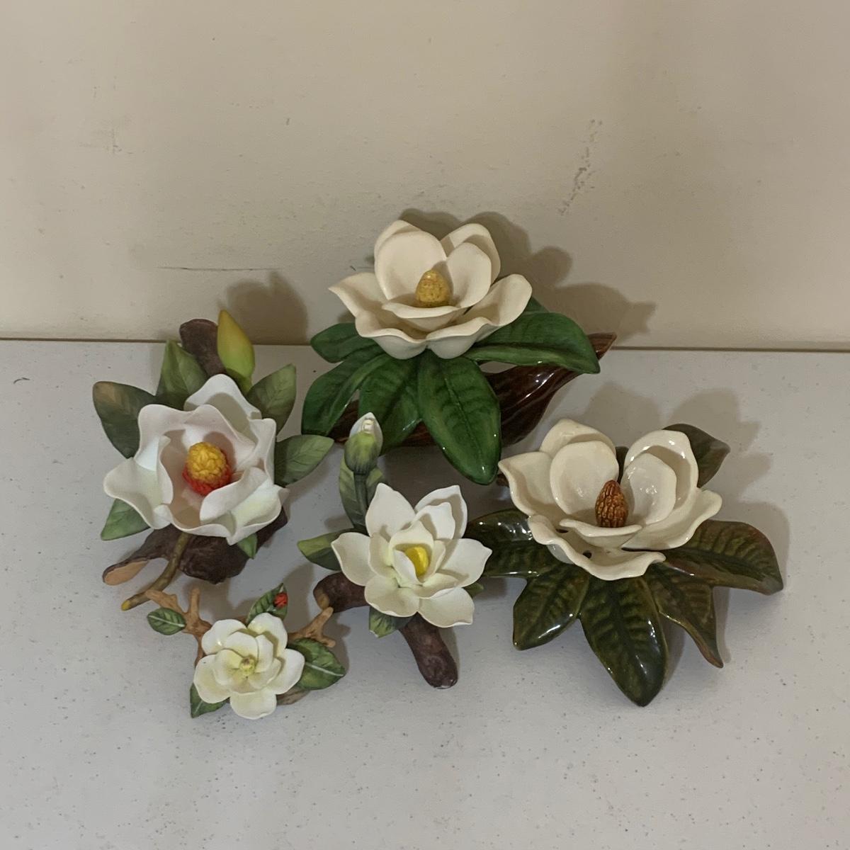 Collection of 5 Assorted Painted Ceramic Magnolia's