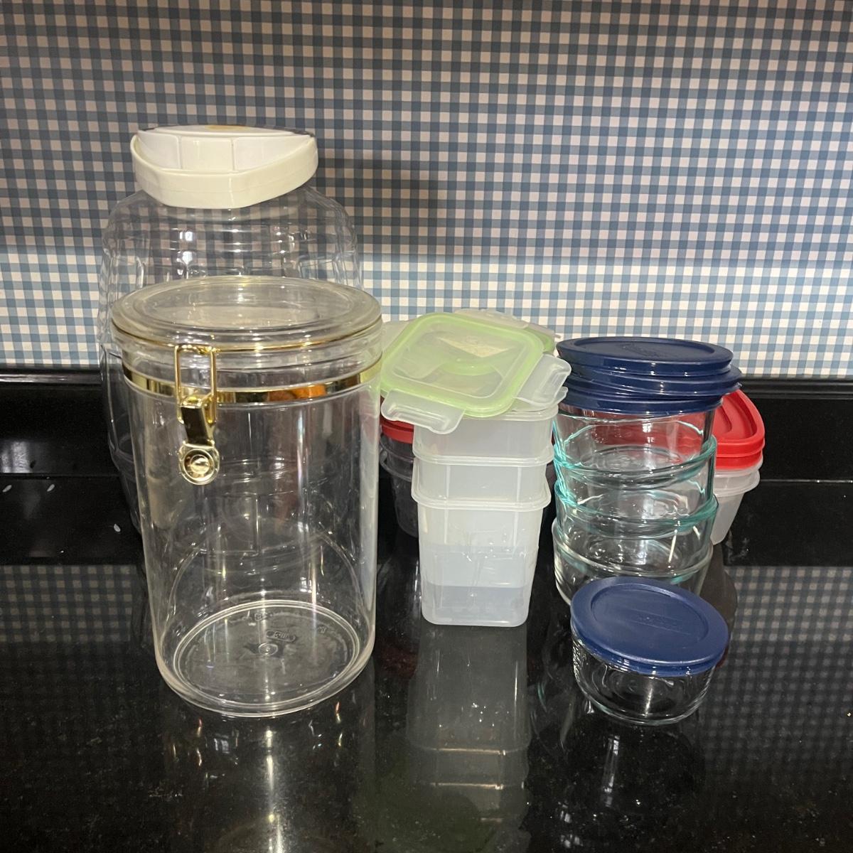 Collection of Glass & Plastic Containers With Lids (2K-MG)