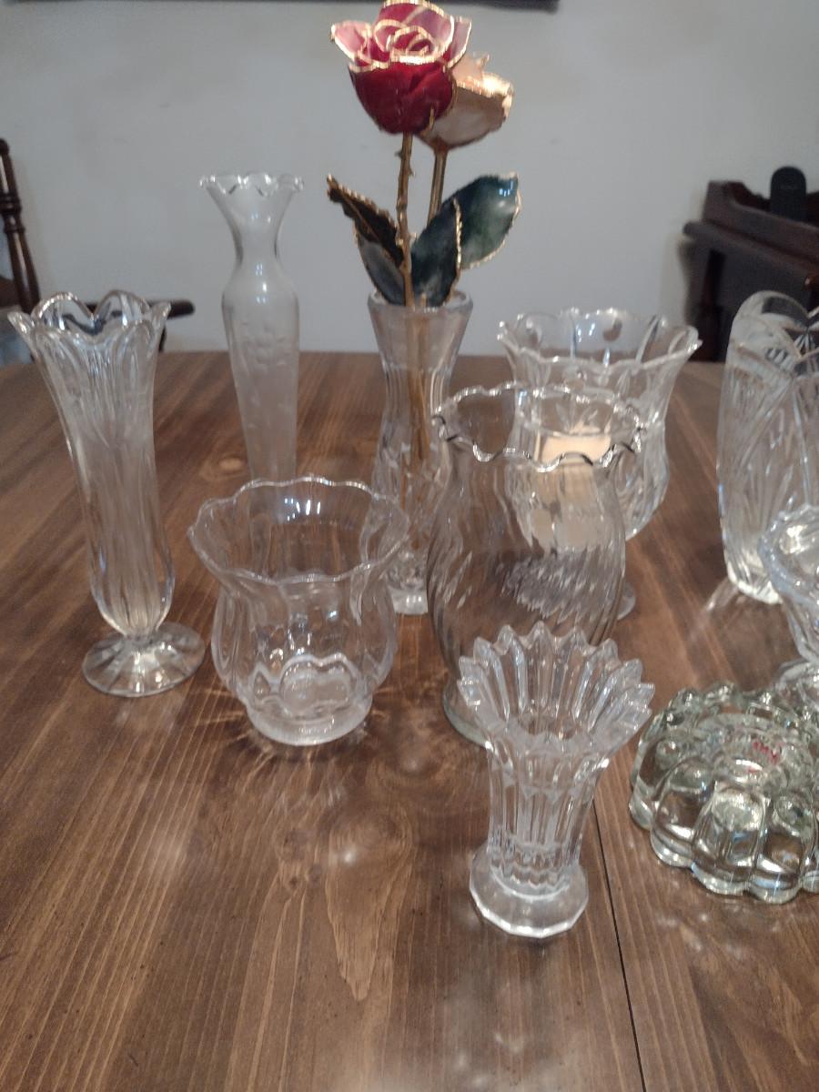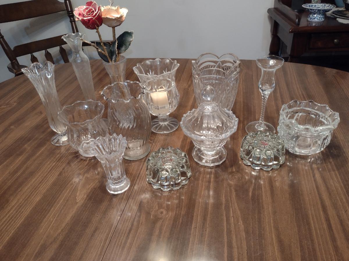 Collection of Glass/Crystal Home Decor- Vases, Candle Holder, Candy Dish