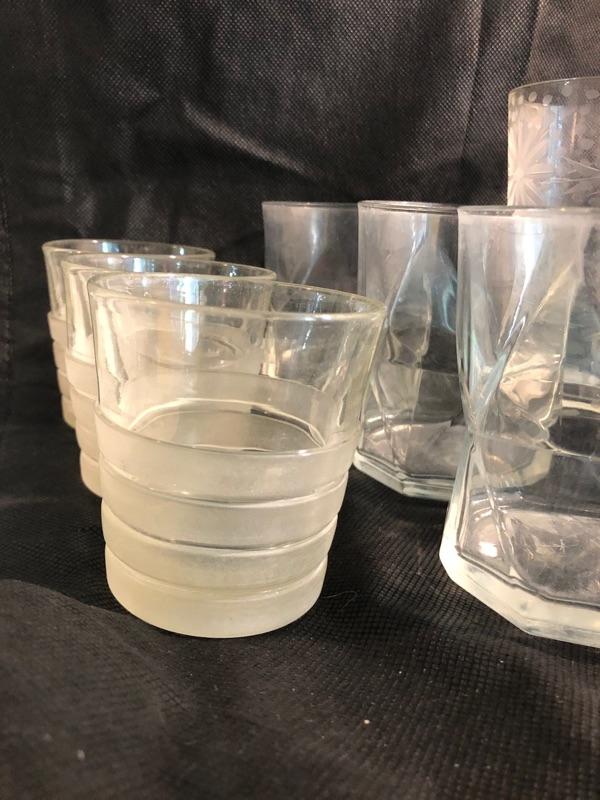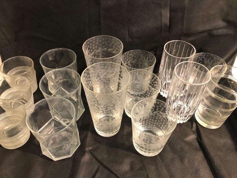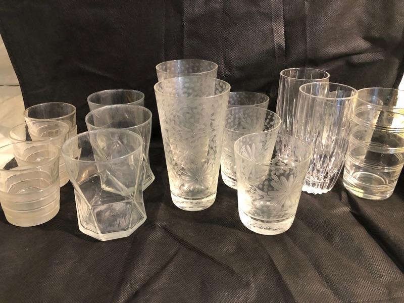 Set of 4 cocktails and 2 highballs, set of 2 lead crystal highballs, set of 3 cocktails, set of 3 juice glasses and 1 random highball