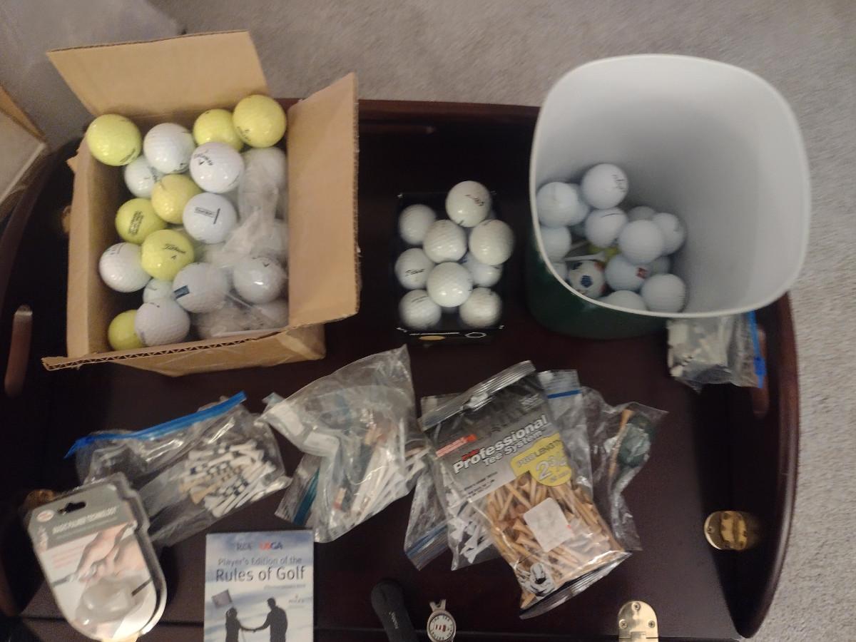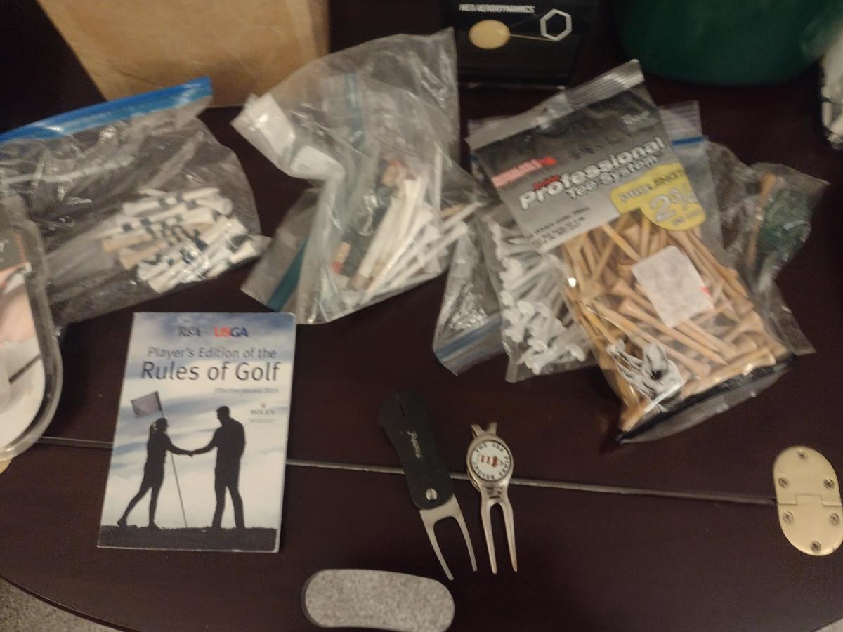 Collection of Golf Items- Assorted Balls, Tees, Booklet, Green Repair, etc.