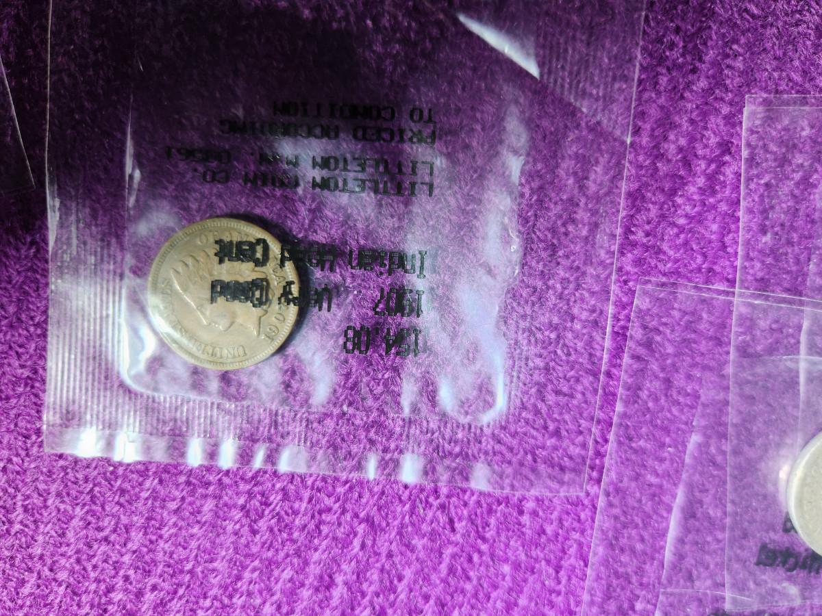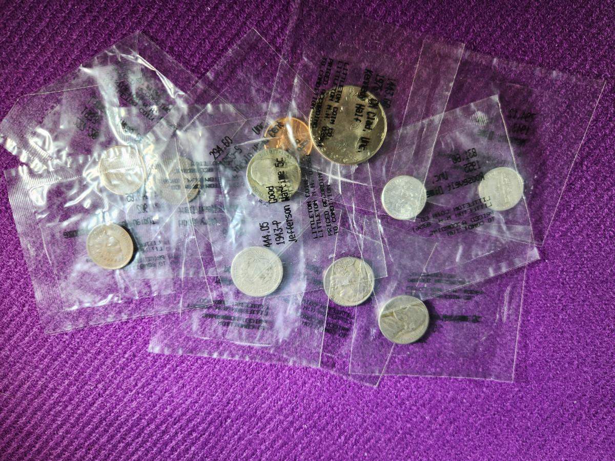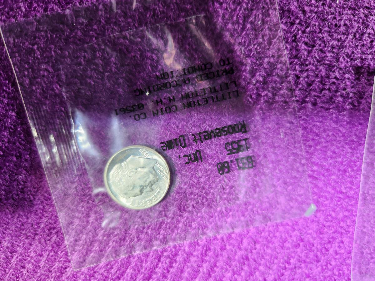 This auction lot is for a Collection of Graded Coins in Sealed Cellophane. These items are from the Littleton Coin Company. Included in this lot are a 1976 Kennedy Half Dollar, a 1955 Roosevelt Silver Dime, a 1943 Mercury Dime, a 1911 V Nickel, a 1936, 2/1943 nickels, a 1907 Indian Head Penny, a 1902 Indian Head Penny and a 1955-S and 1933 Lincoln Head Penny. A total of 11 coins in the lot.