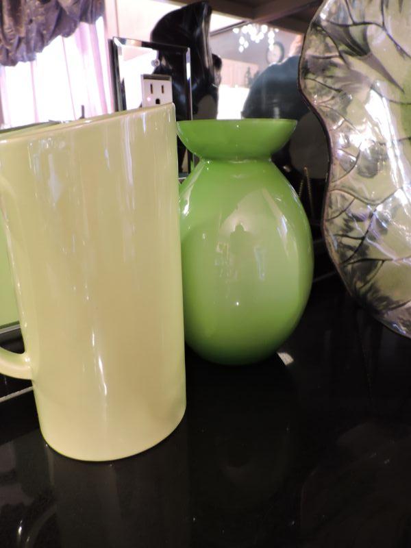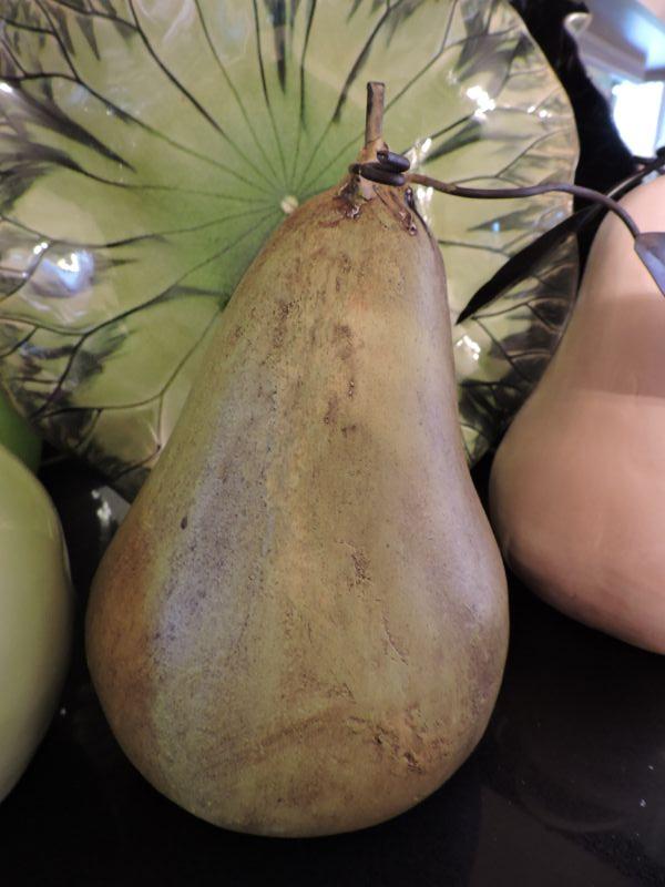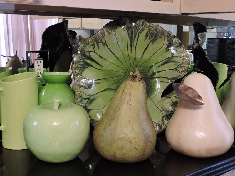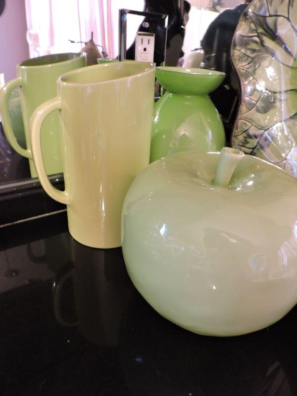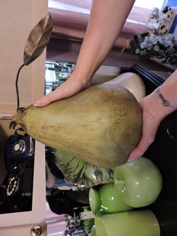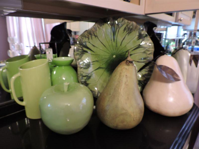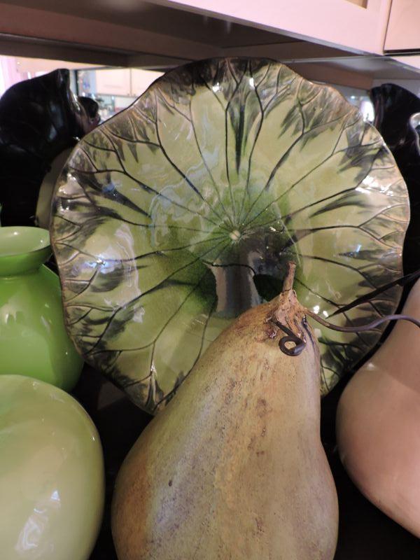 Beautiful leaf plate, pitcher, and vase. along with oversized pears and apple. Plate is 17", pears are about 12" **Please read Terms and Conditions before placing a bid. Pick up is Wednesday, September 25 from 4pm to 7pm and Saturday, September 28 from 9am to 1pm in Williamstown, NJ. All sales are final. All sales are as is, where is. Please review all photos. Any props included in photos are not included in listing. All measurements are approximate.