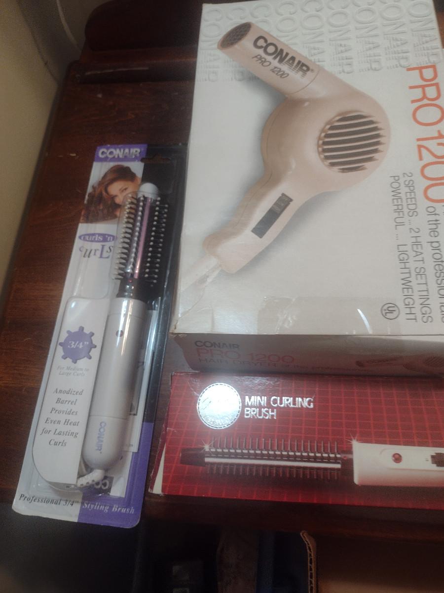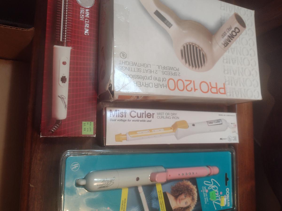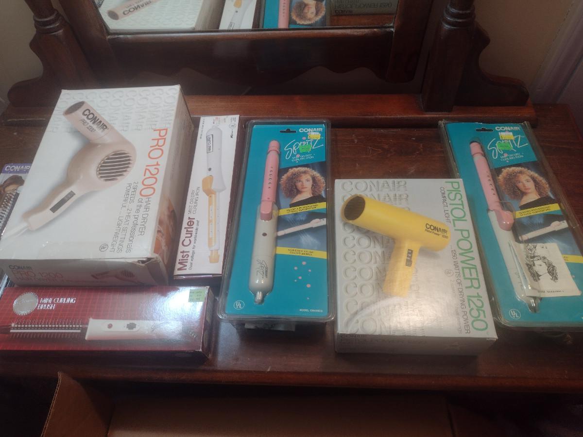 Collection of Hair Styling Tools- Blow Dryers and Curlers (F). Several are new in package.