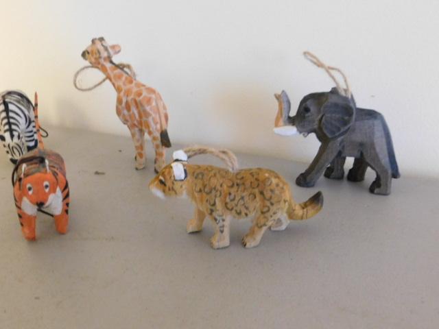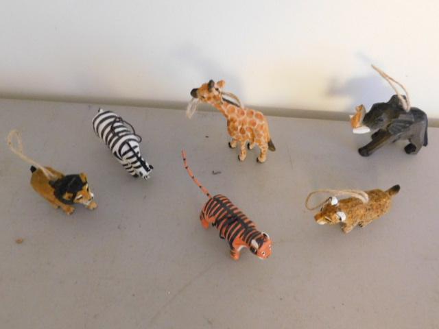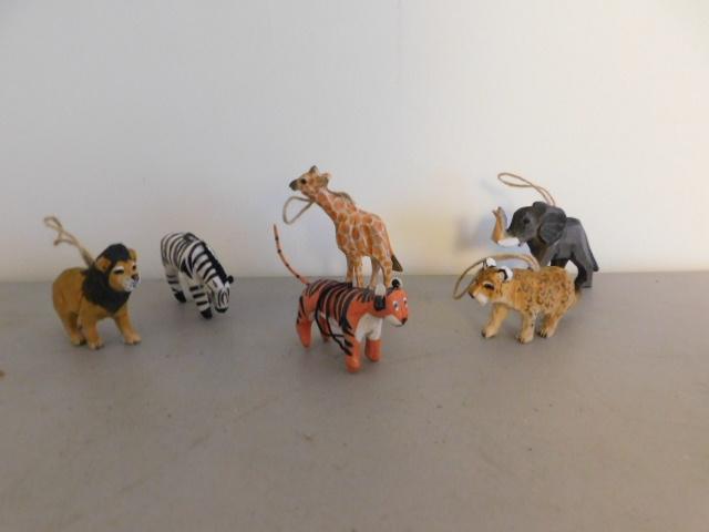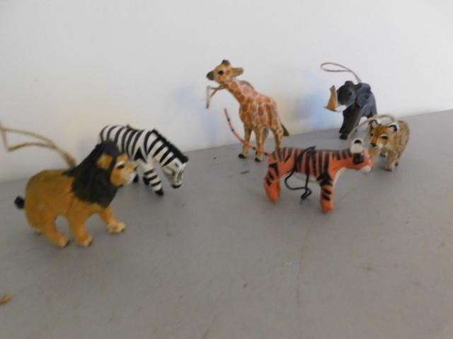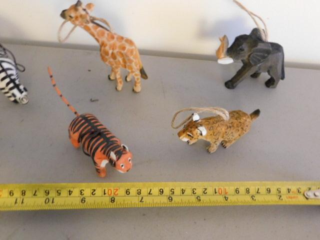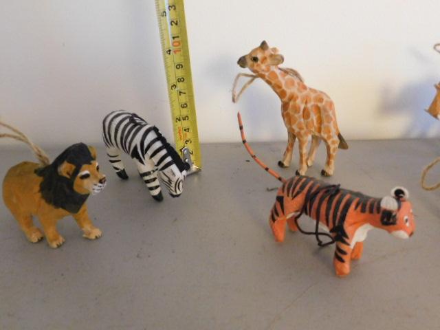 Collection of Hand Crafted Wood and Paper Mache African Animals Christmas Ornaments