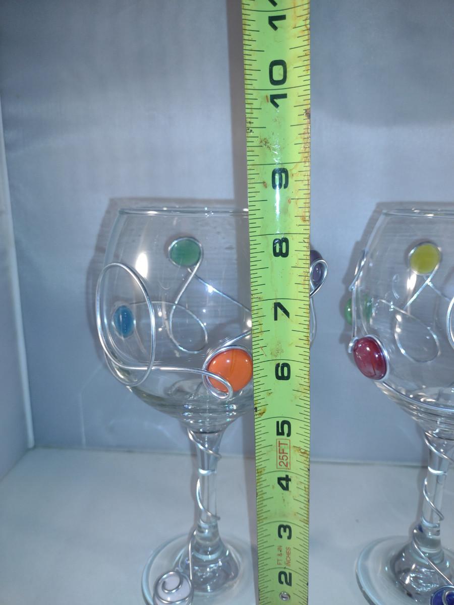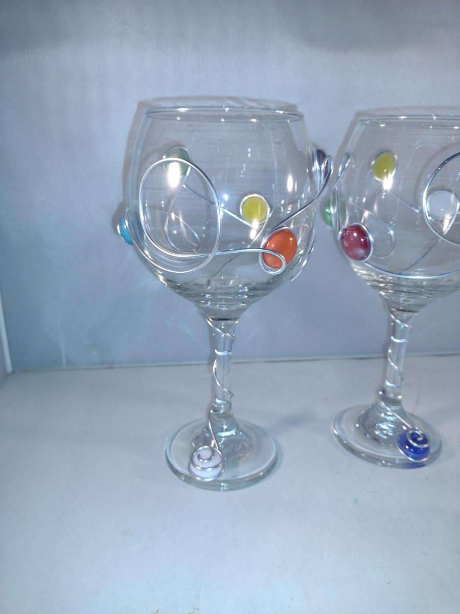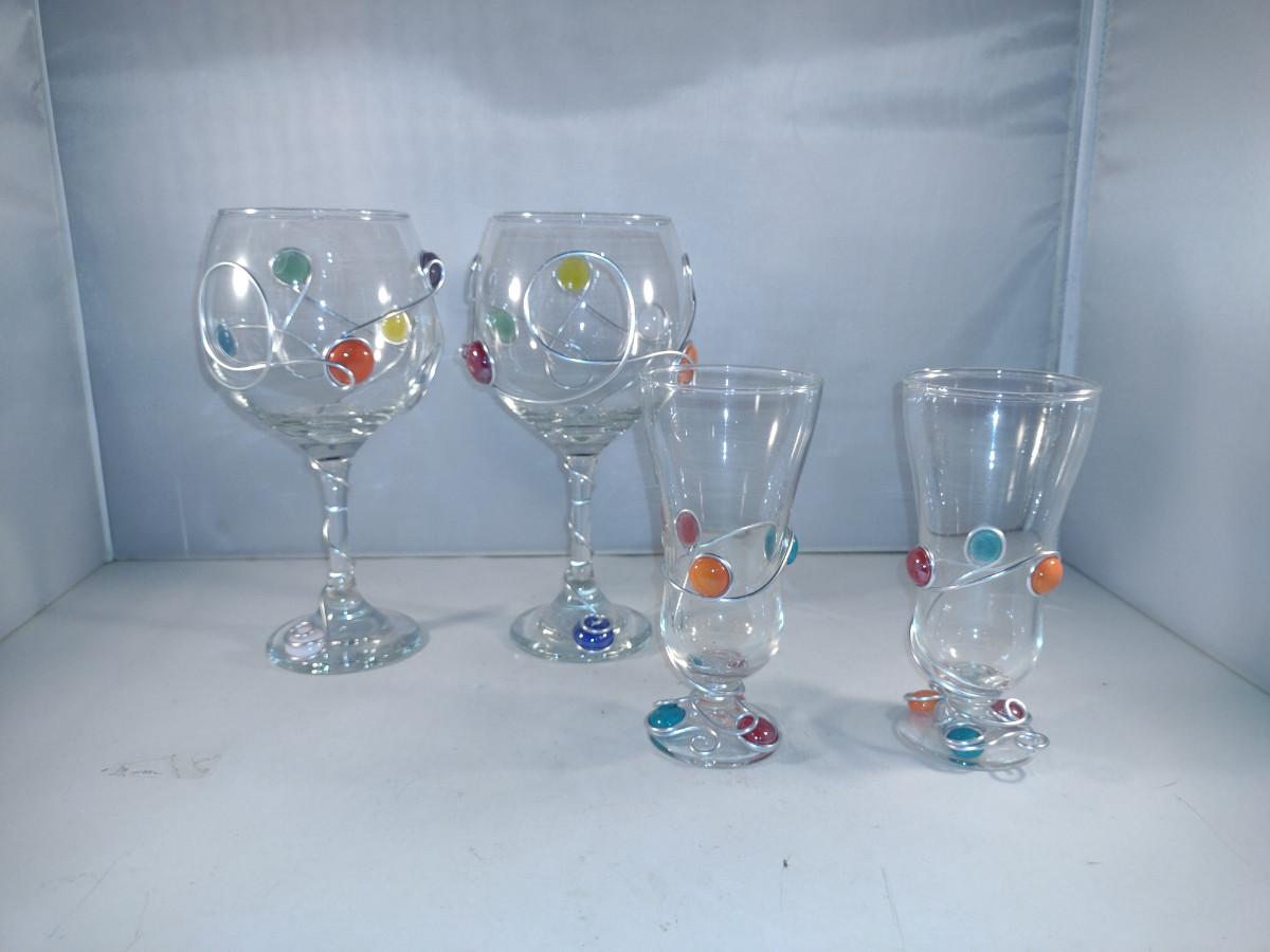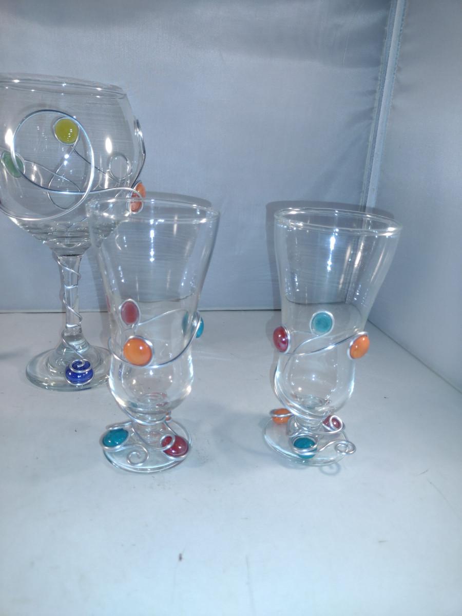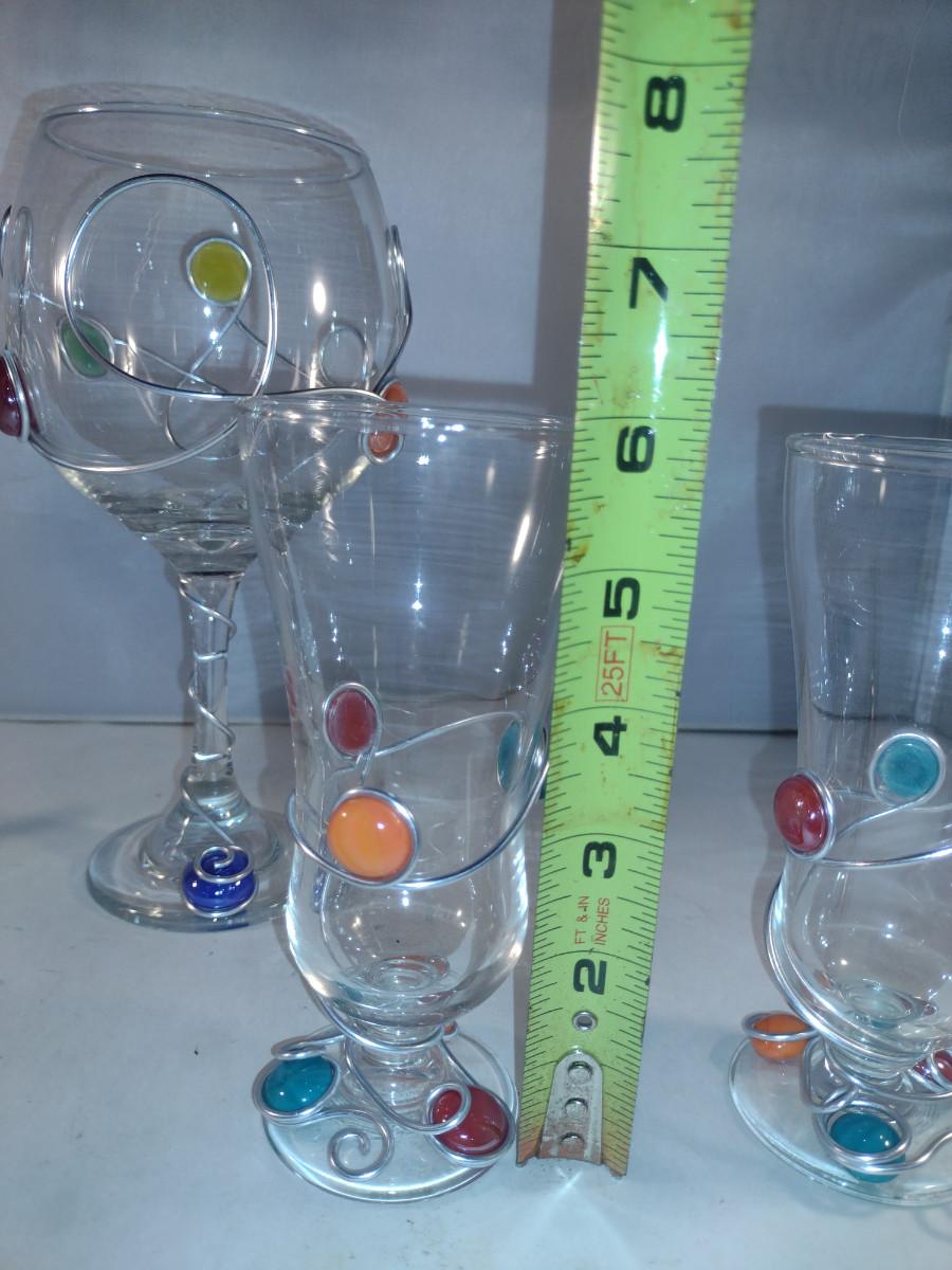 Collection of Hand Decorated Glass Drink Ware- Metal Wire and Colorful Marbles- Four Pieces