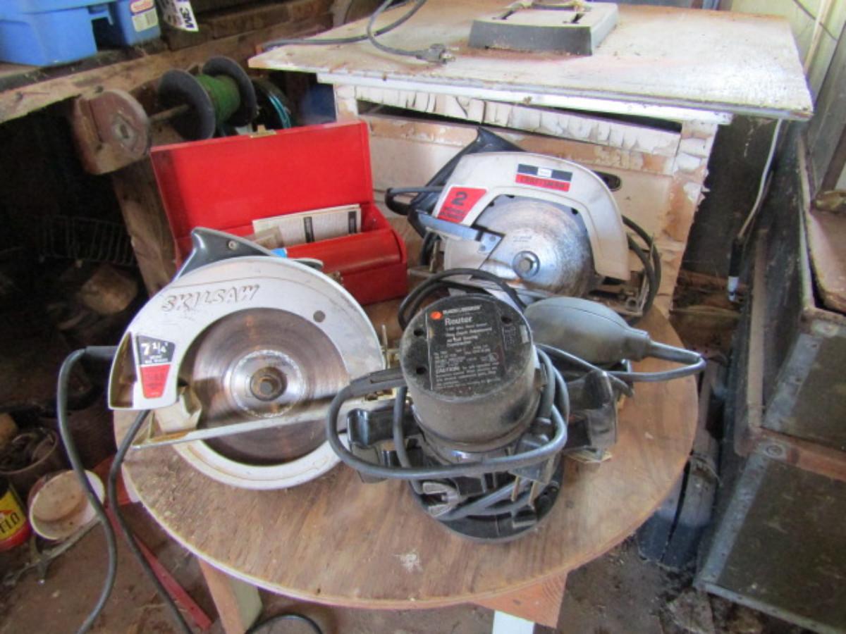 Collection of Hand Tools- Circular Saws, Router, Propane Torch
