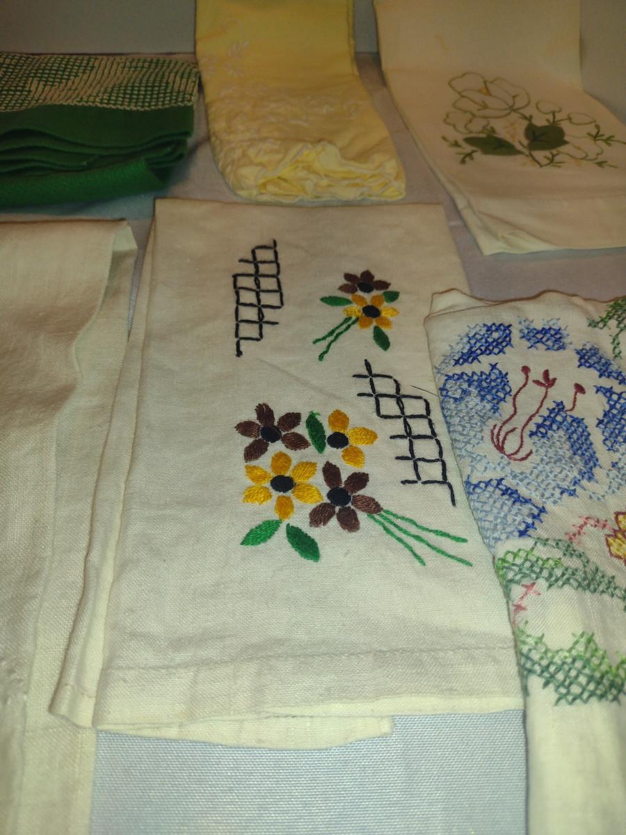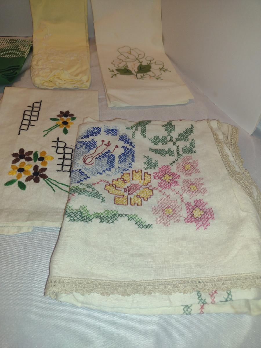 Collection of Hand Towels/Linens with Needlework or Embroidery. Please see all pictures for selection.