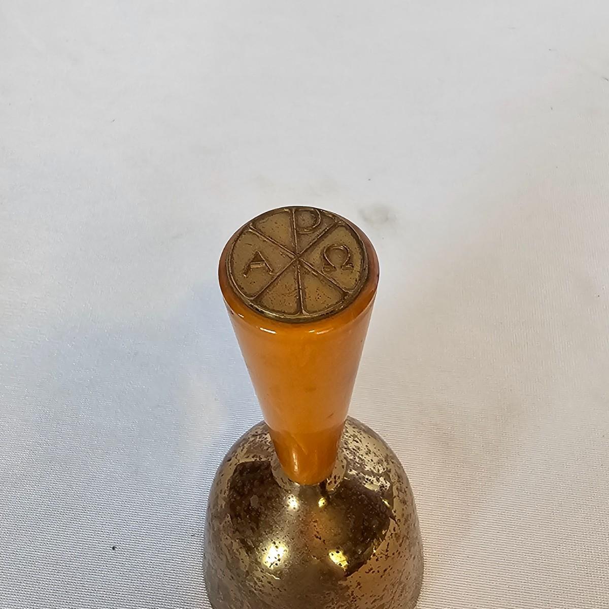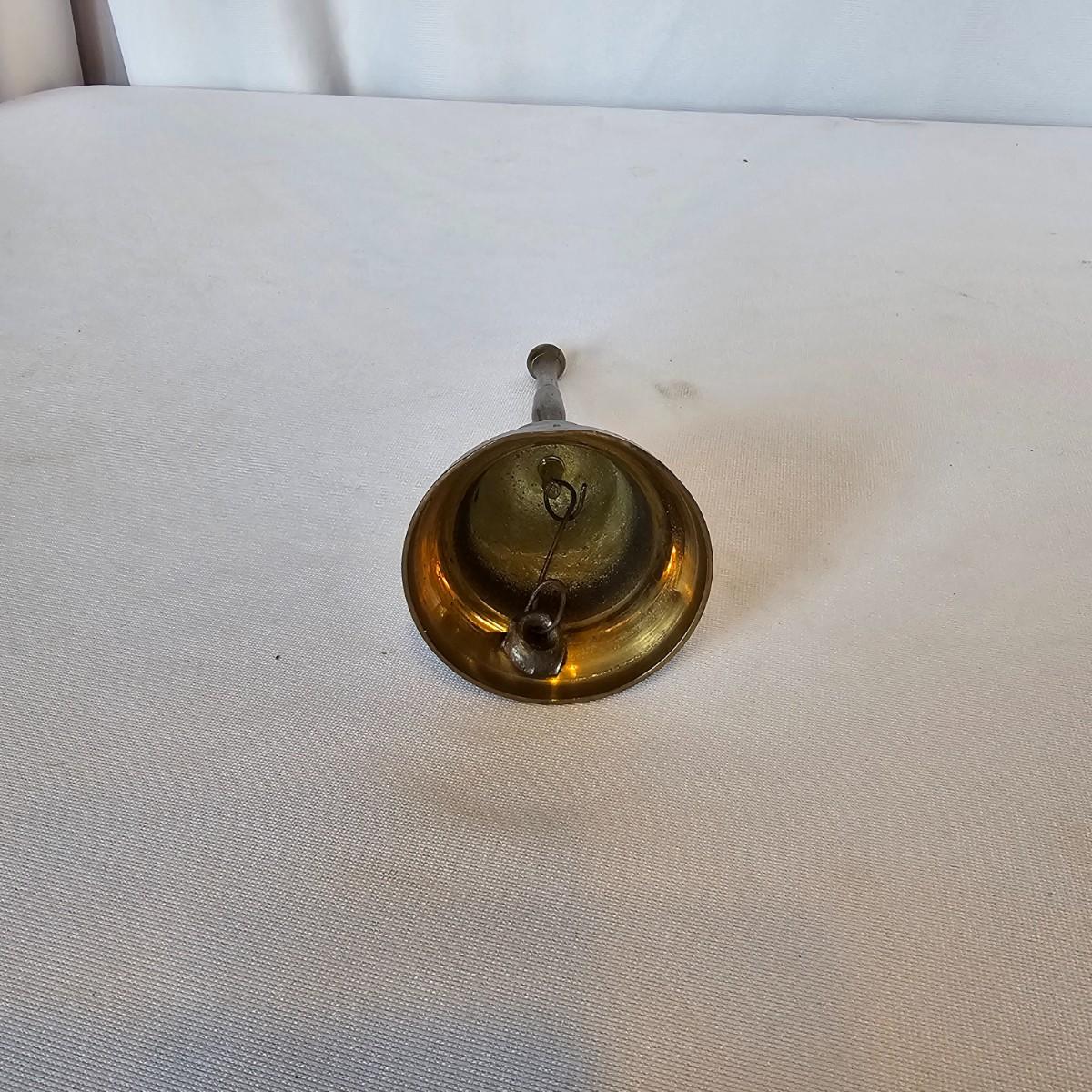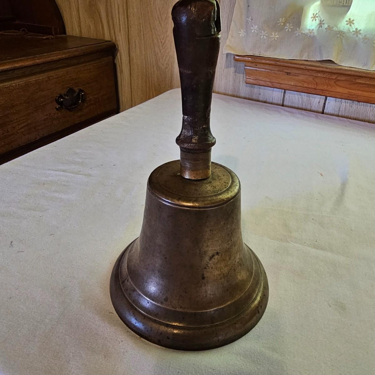 Seven different handbells and sizes. Five are brass, two are steel. Largest bell with wood handle is 6.5"D x 10"H. Smallest one is 2.5"D x 3"H. Handle on large bell is loose. See photos for details. Shipping available.