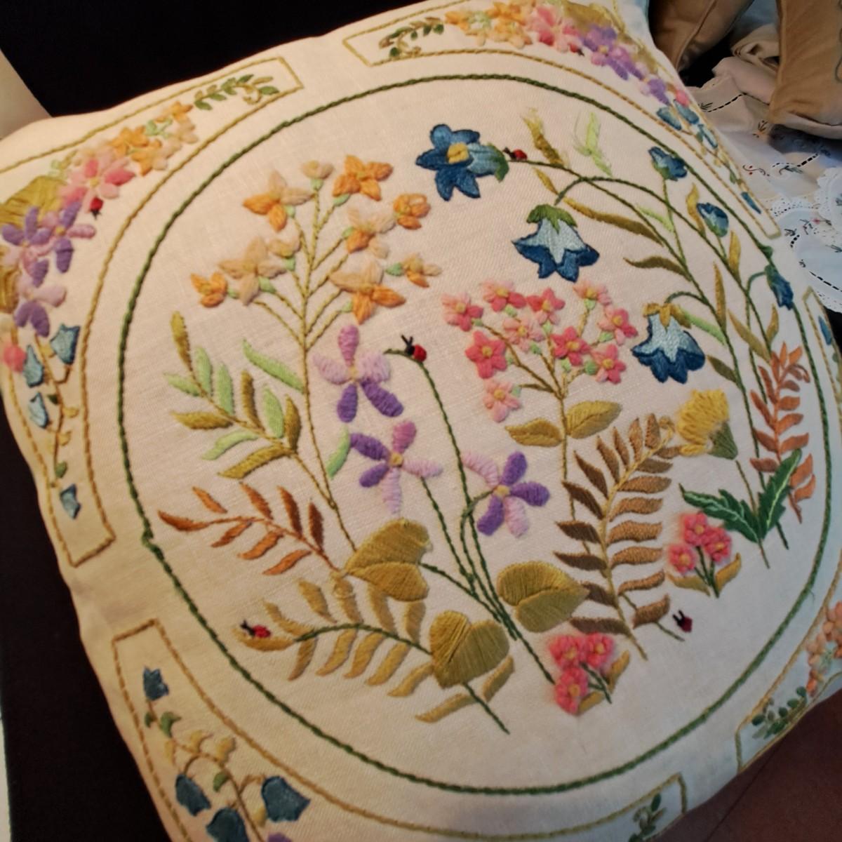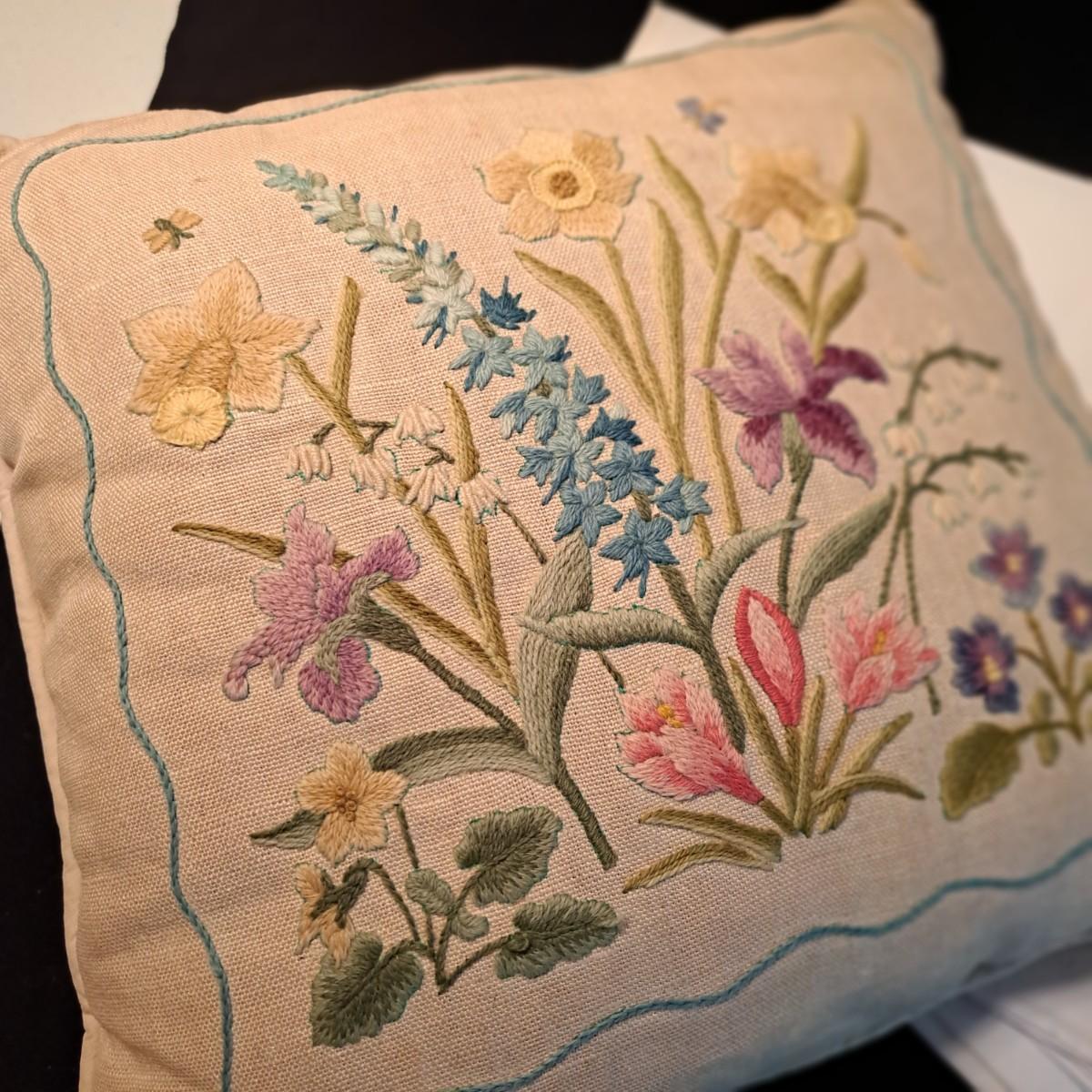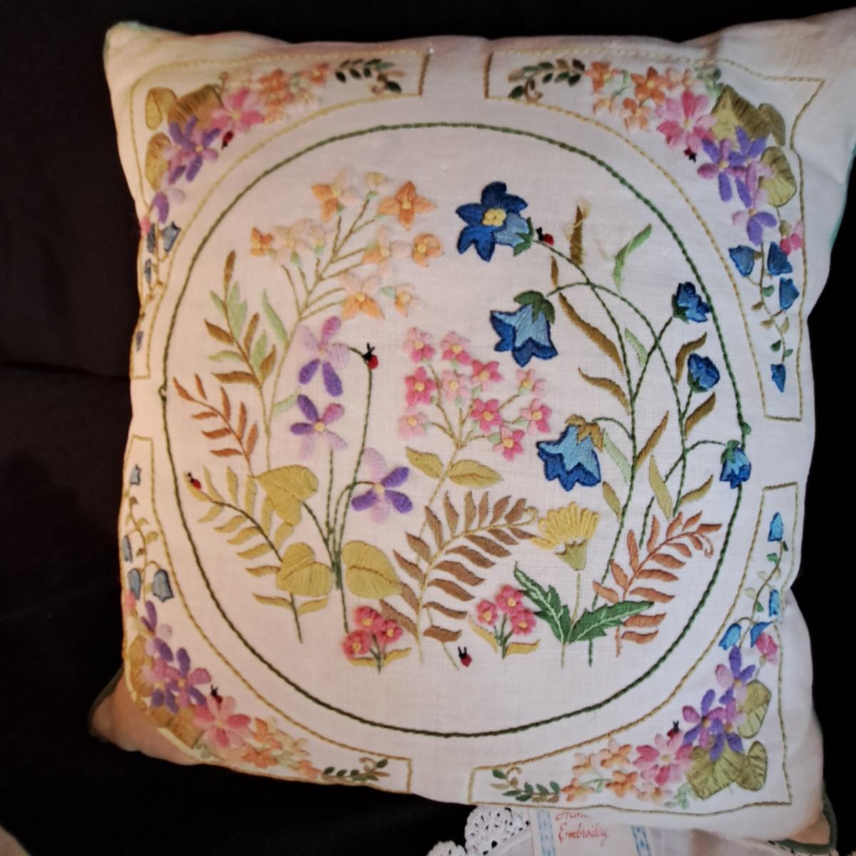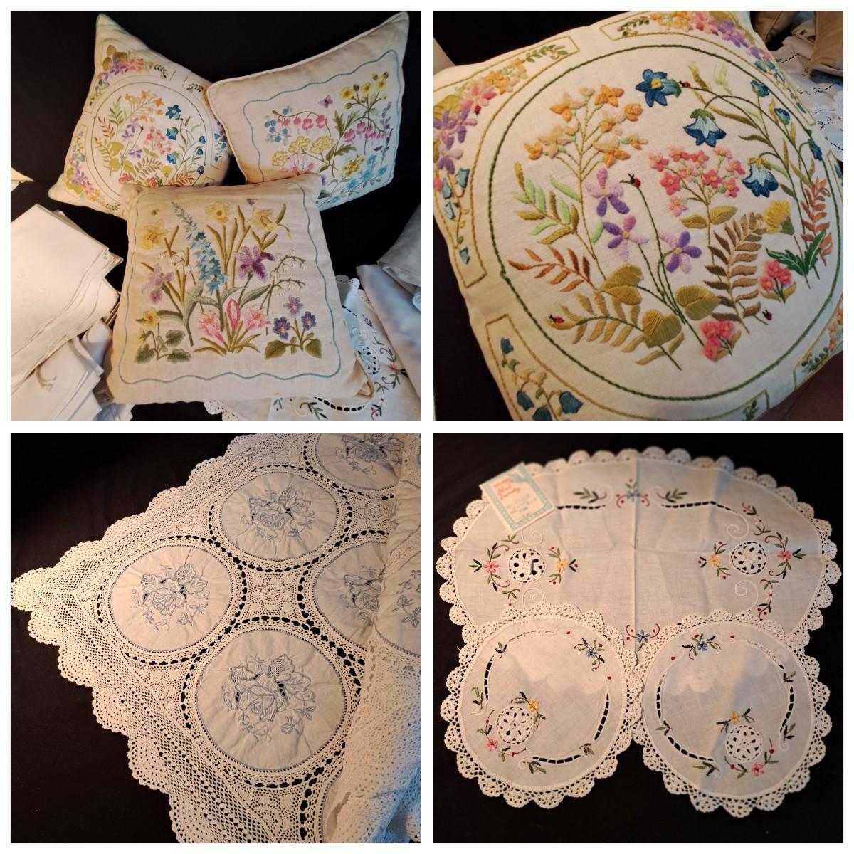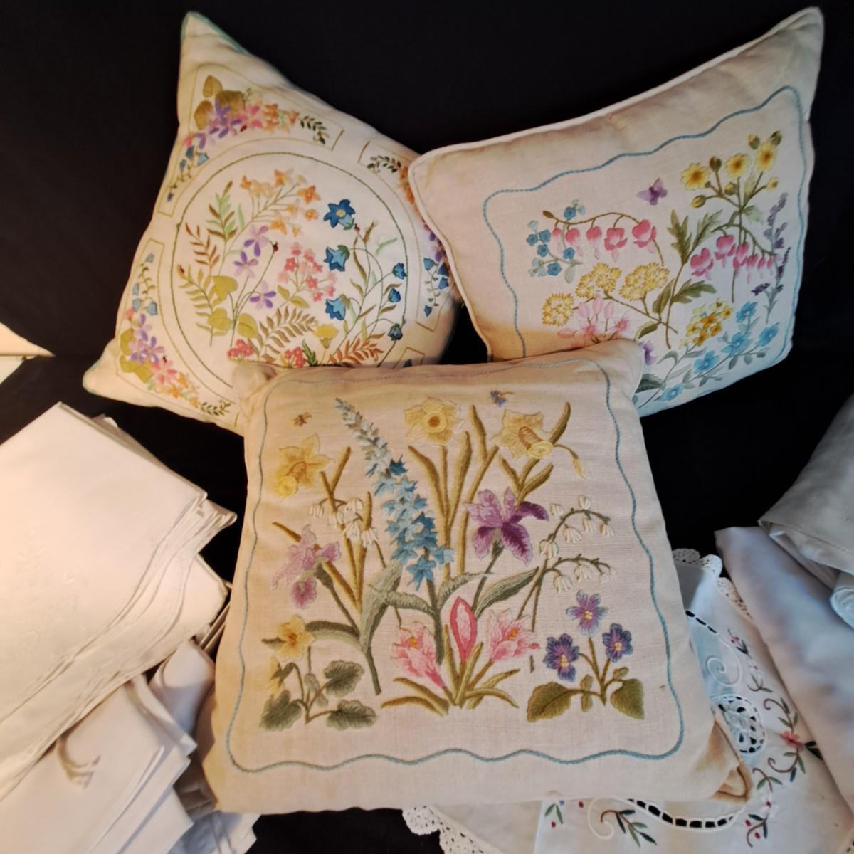 Collection of Hand-Embroidered Crewel Pillows & Linens (BD-SD)