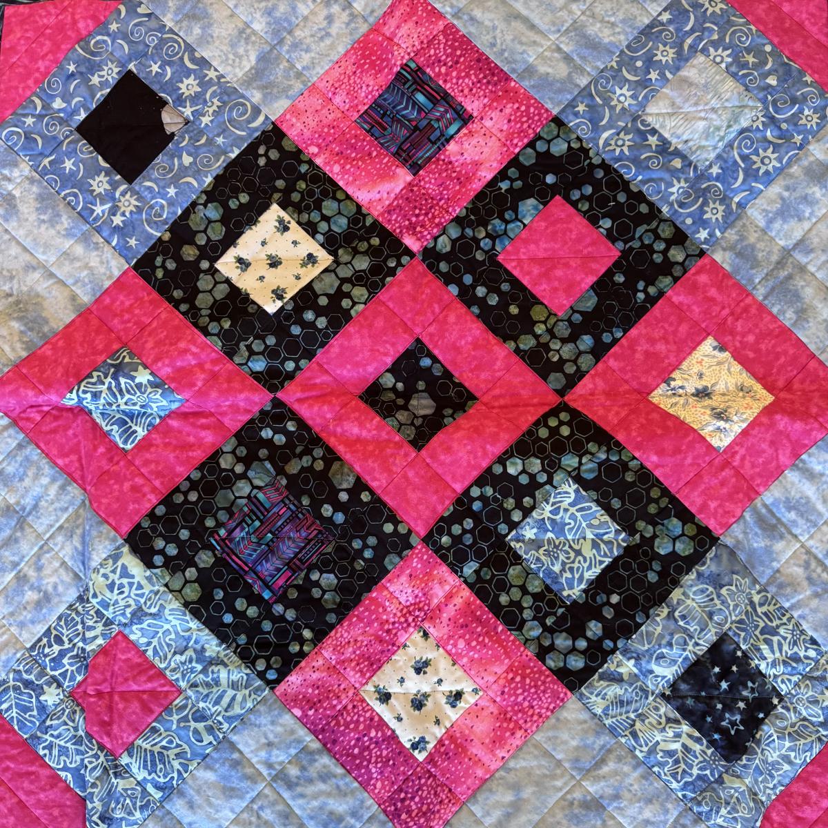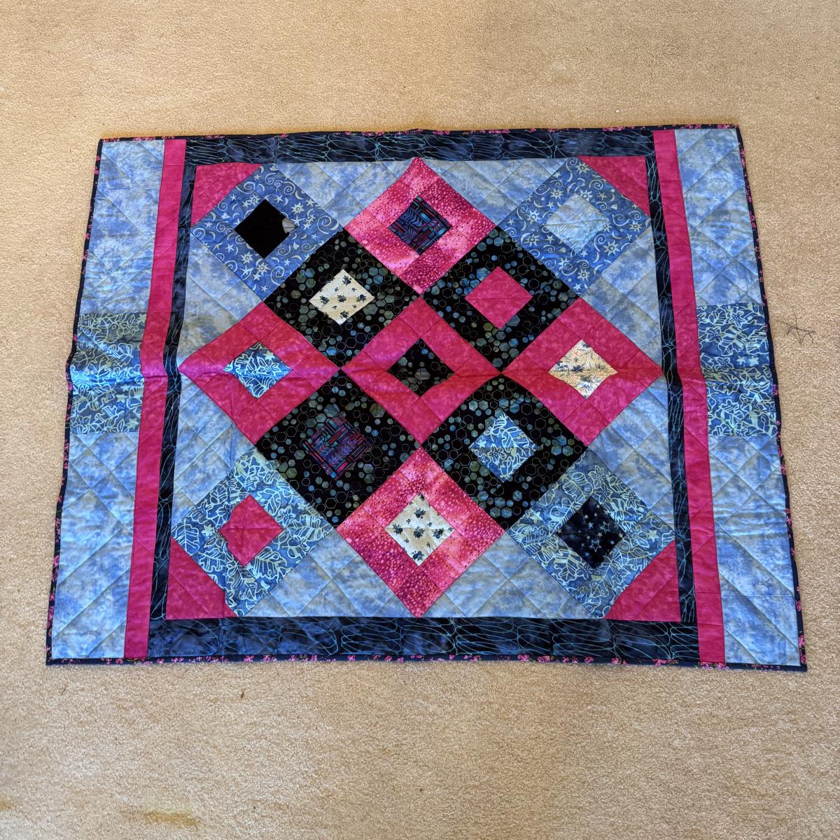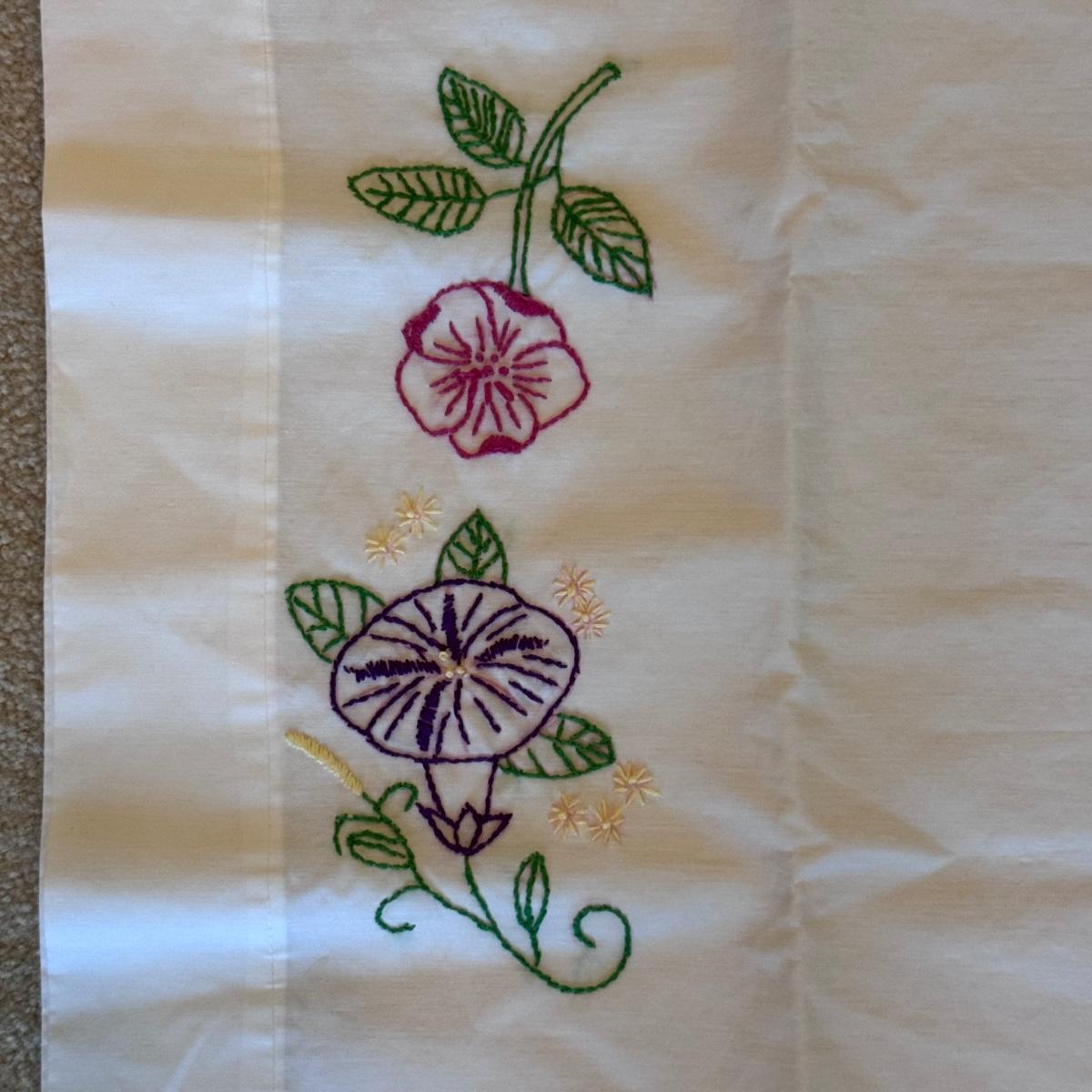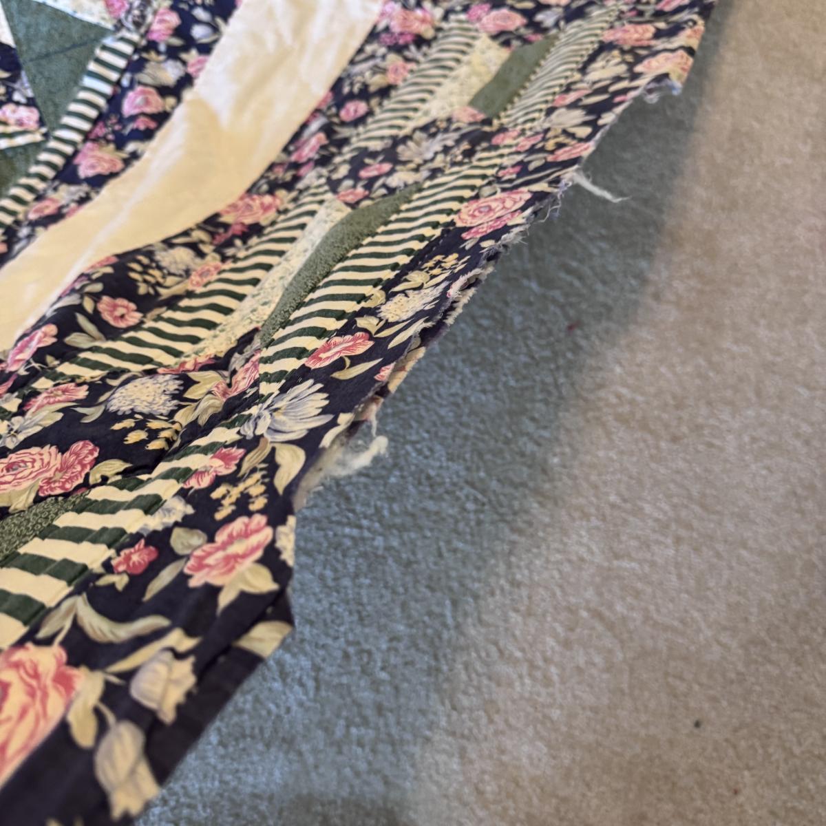 This lot includes four handmade quilts, along with four embroidered XL pillowcases. The largest quilt has a hole along the edge of one side - see picture included. This largest quilt measures 72” x 79”H. Shipping available.