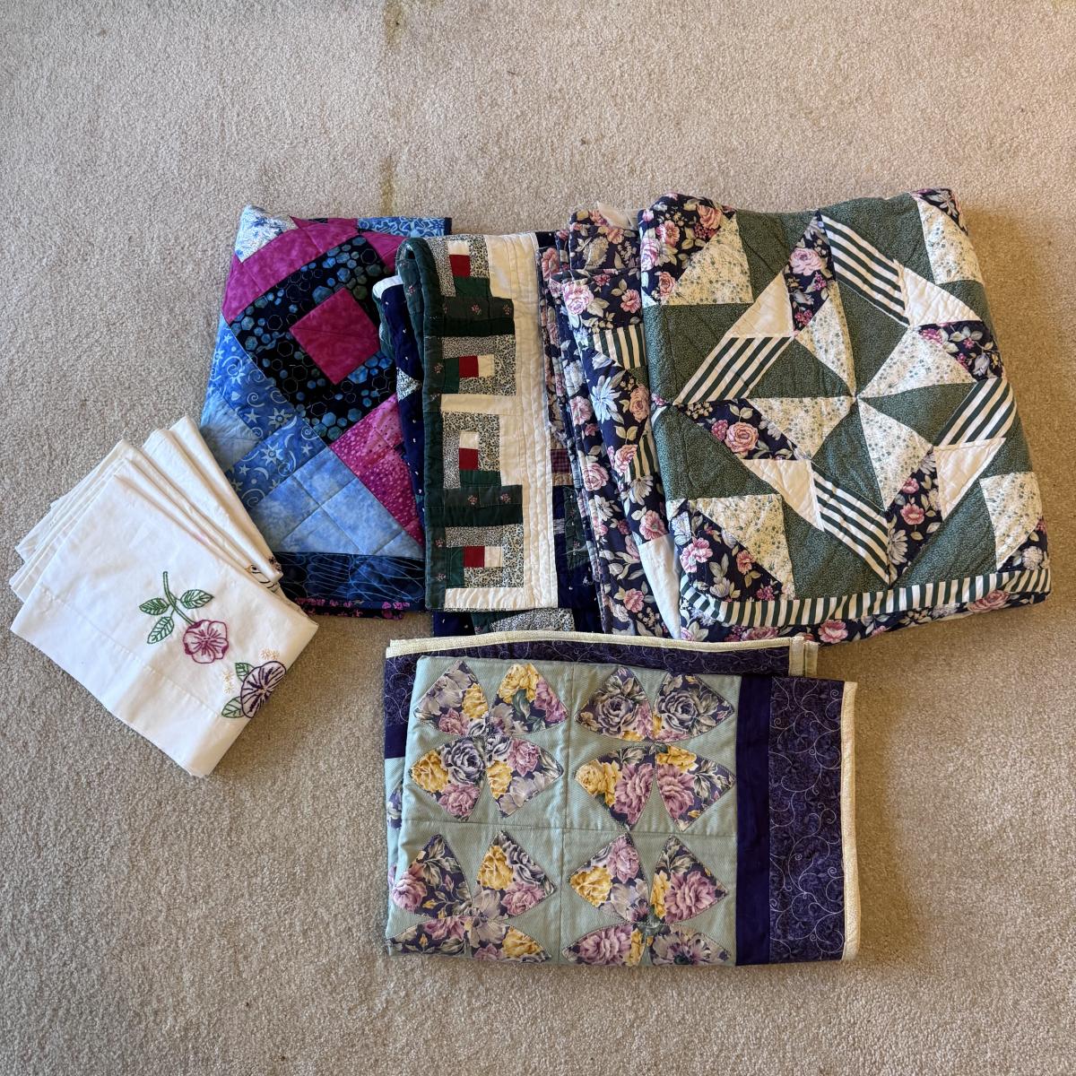 Collection of Handmade Quilts and Embroidered Pillowcases (PB-DZ)