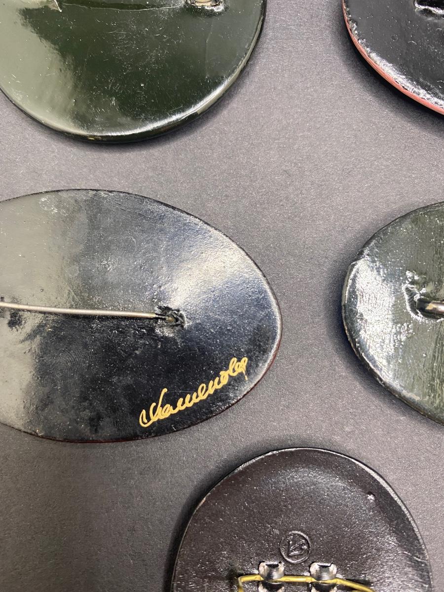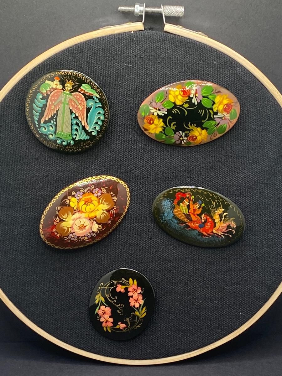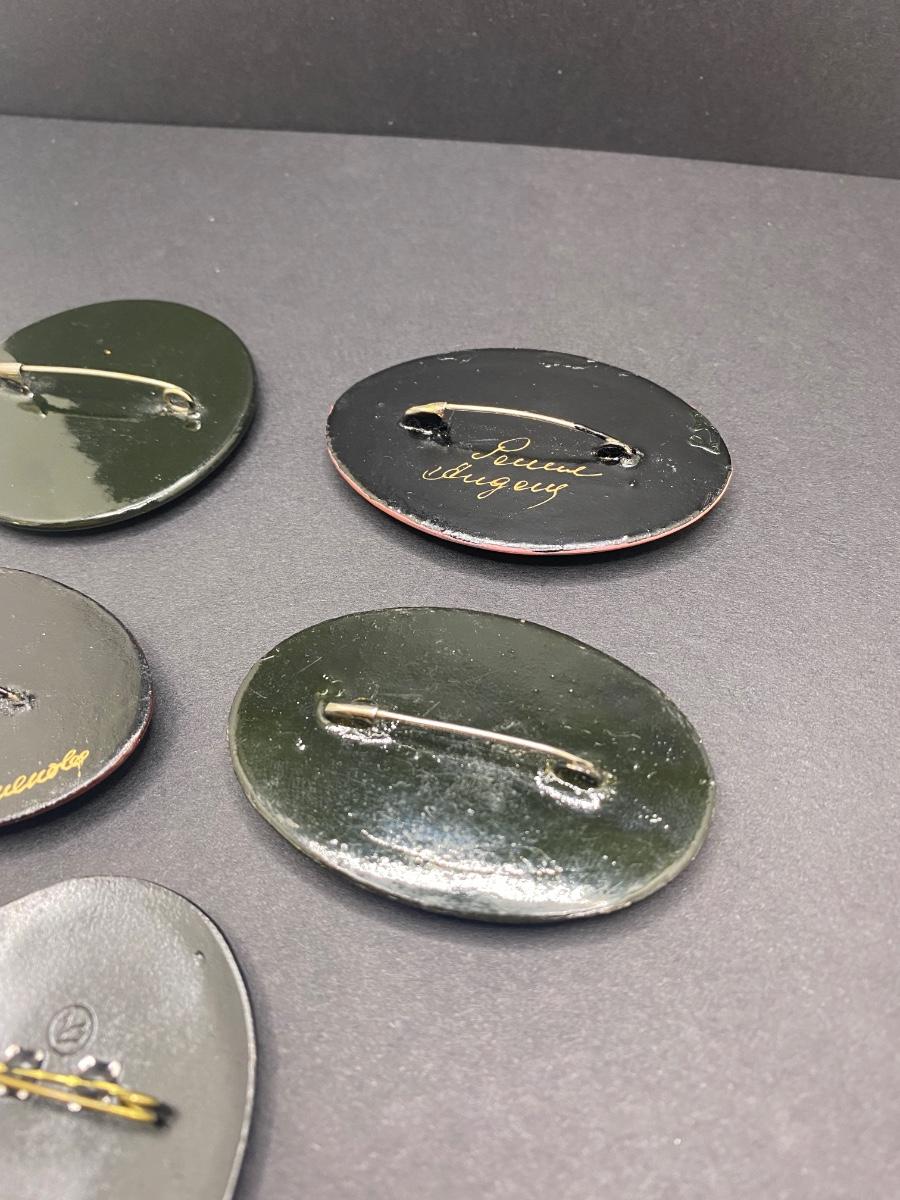 Collection of Hand-Painted Pins. Artist Signed on Back