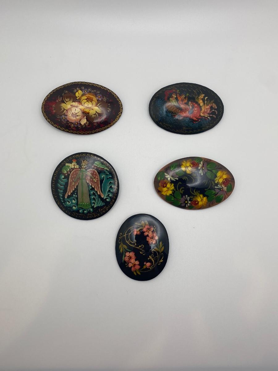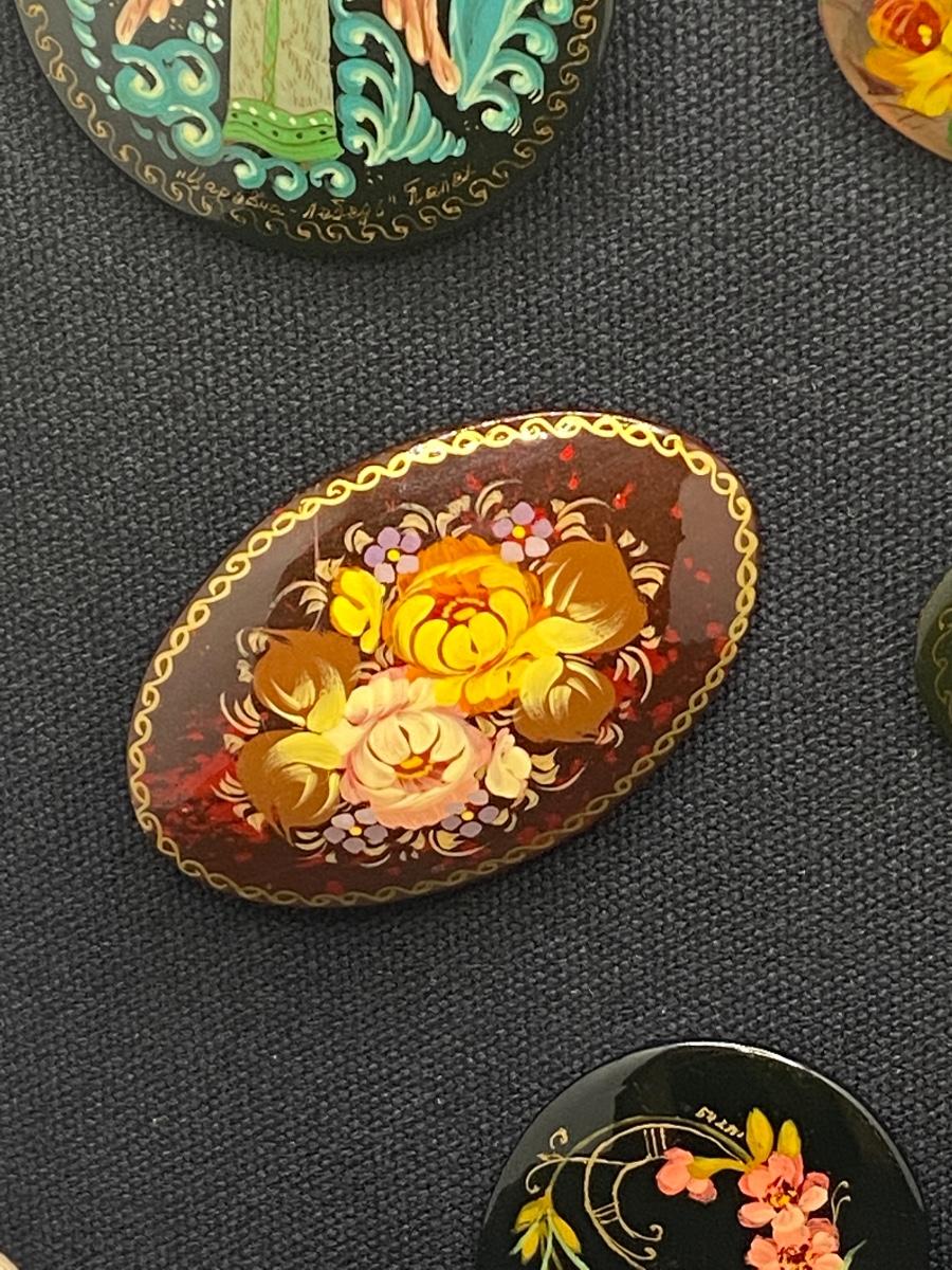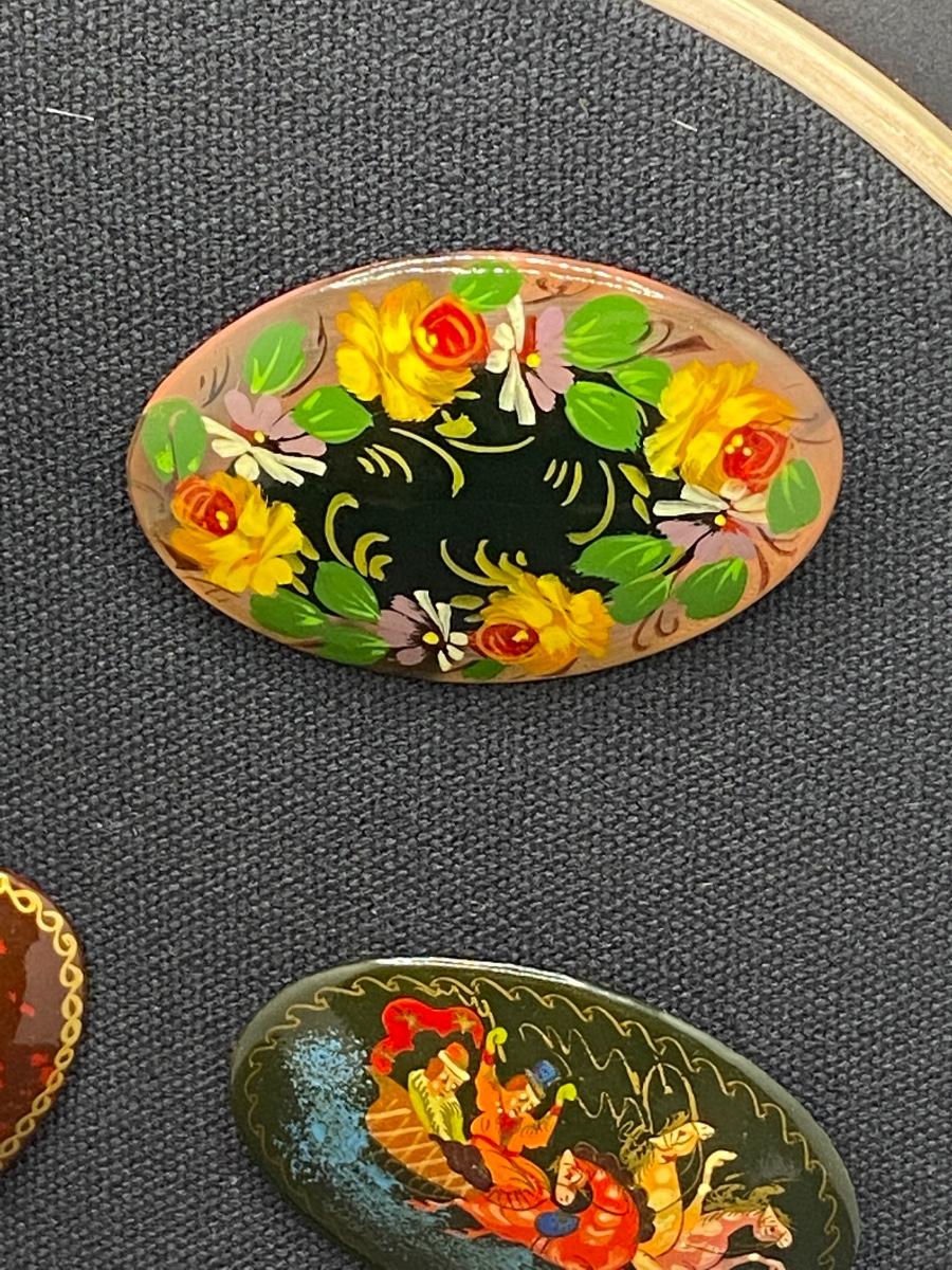 Collection of Hand-Painted Pins. Artist Signed on Back