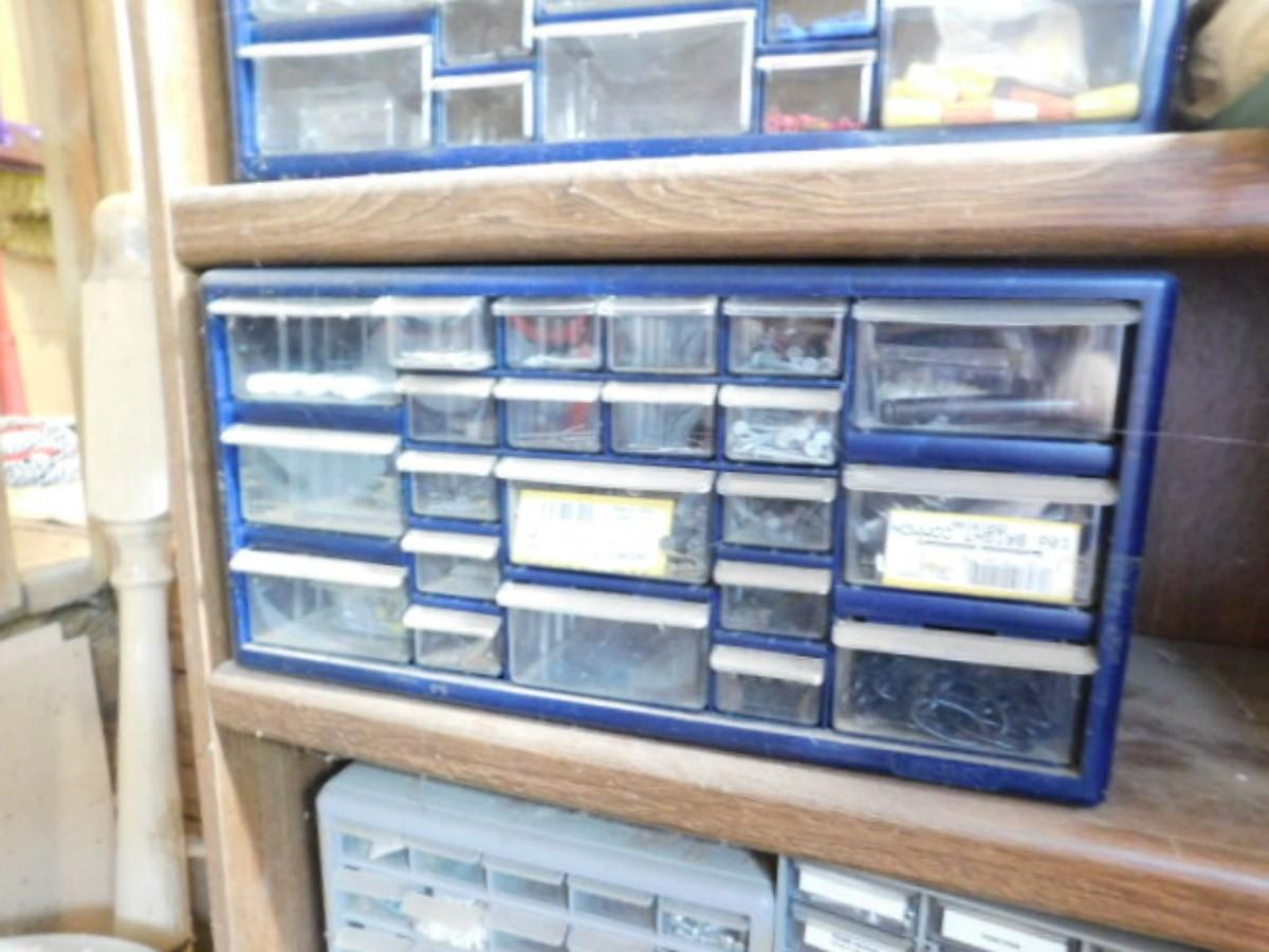 Collection of Hardware Pigeonhole Boxes including Contents