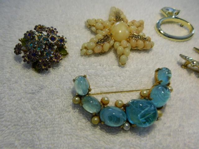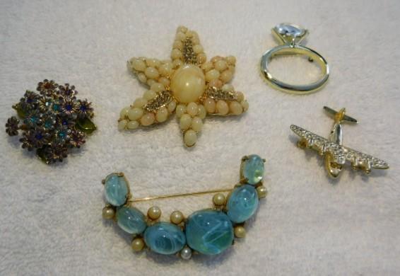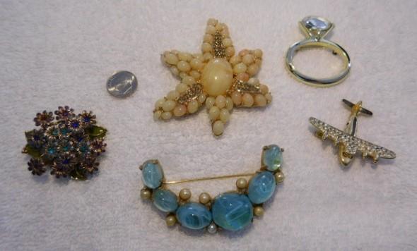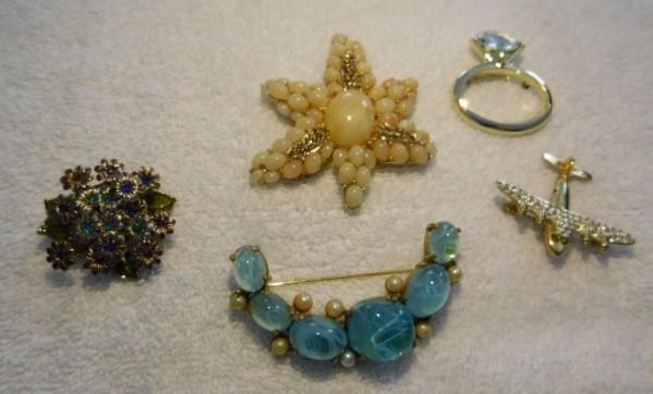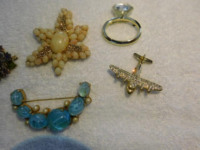 Collection of Heavy Oversize Brooches and Pins Various Stones All Plated
