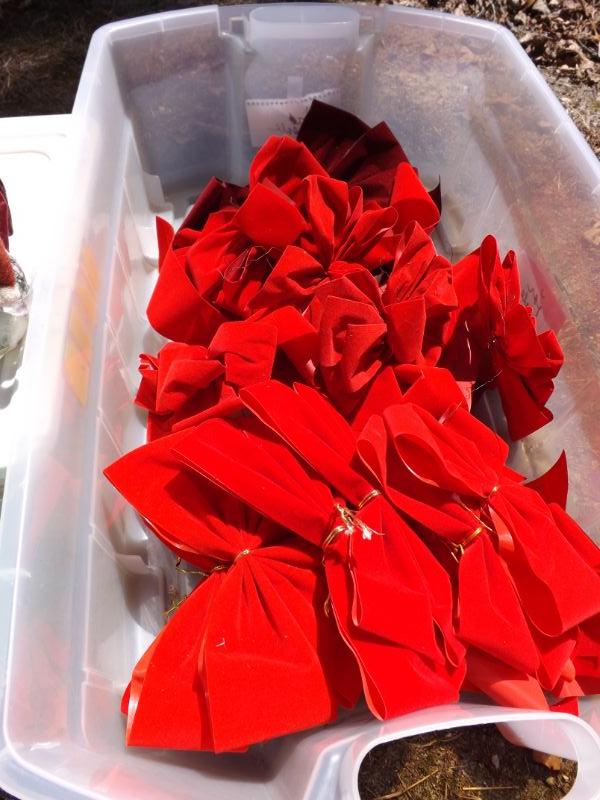 Red velvet bows and other holiday decorations. **Please read Terms and Conditions before placing a bid. Pick up is Sunday, September 15, 2019 from 11am to 4pm and Tuesday, September 17 from 4pm-7pm in Sicklerville. All sales are final. All sales are as is, where is. Please review all photos. Any props included in photos are not included in listing. All measurements are approximate.