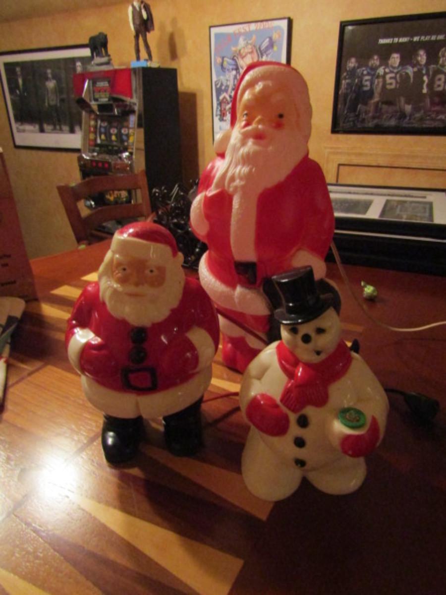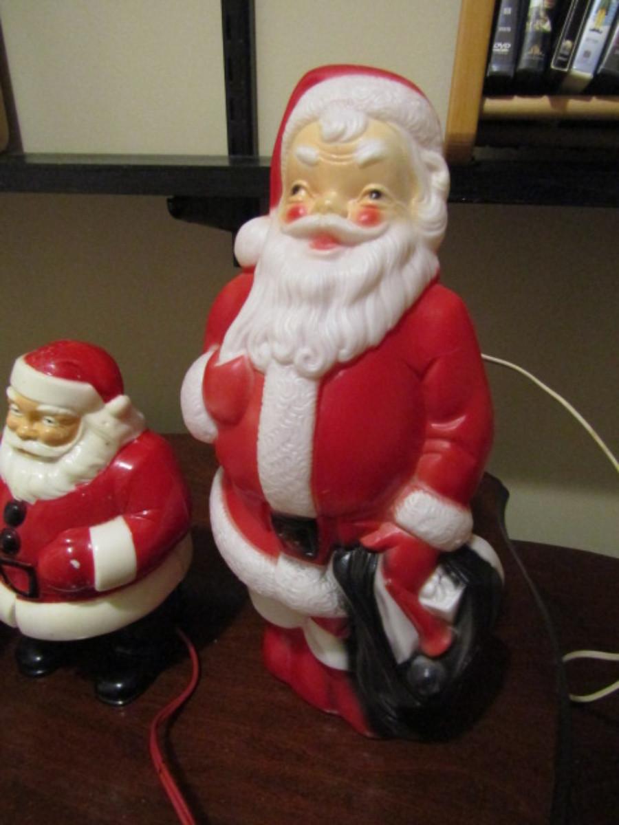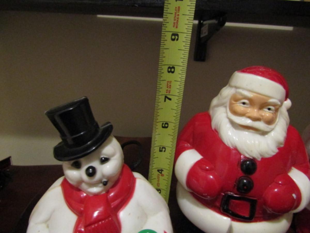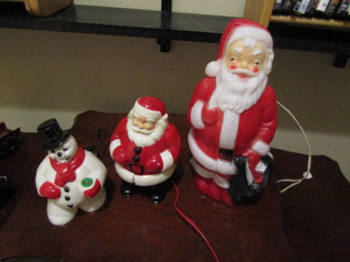 Collection of Holiday Decor- Some Vintage. Tallest Santa is from Empire Plastic Corp (1968). Pieces are not tested.