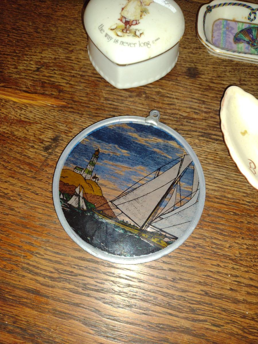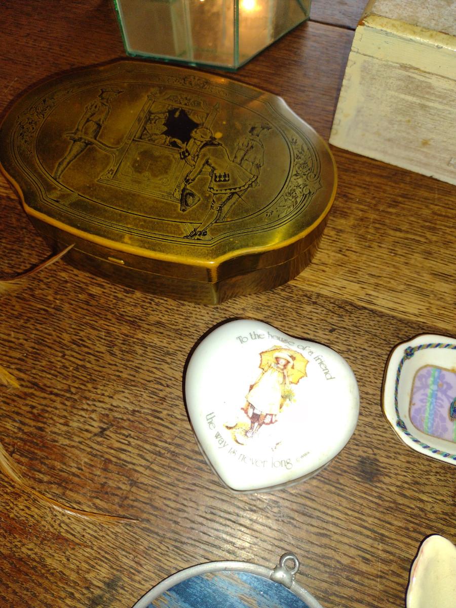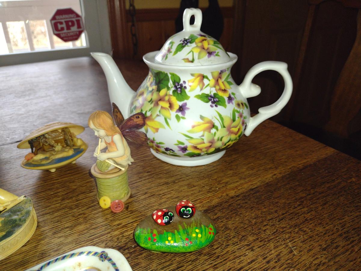 Collection of Home Decor. Glass display case has door that needs to be reattached.
