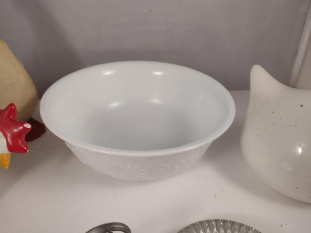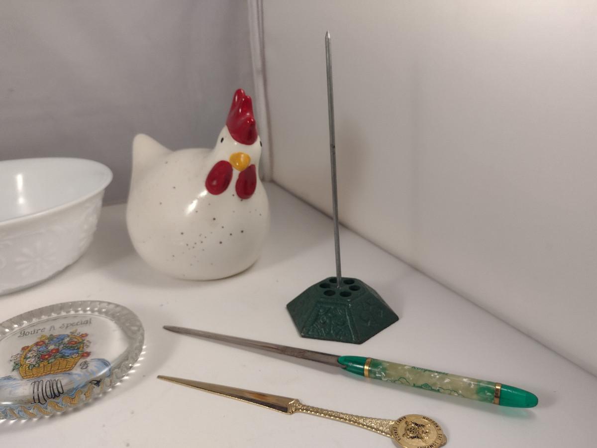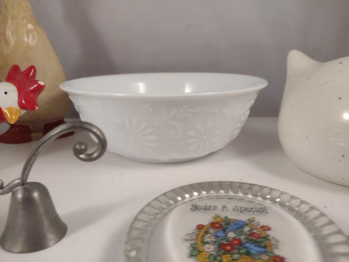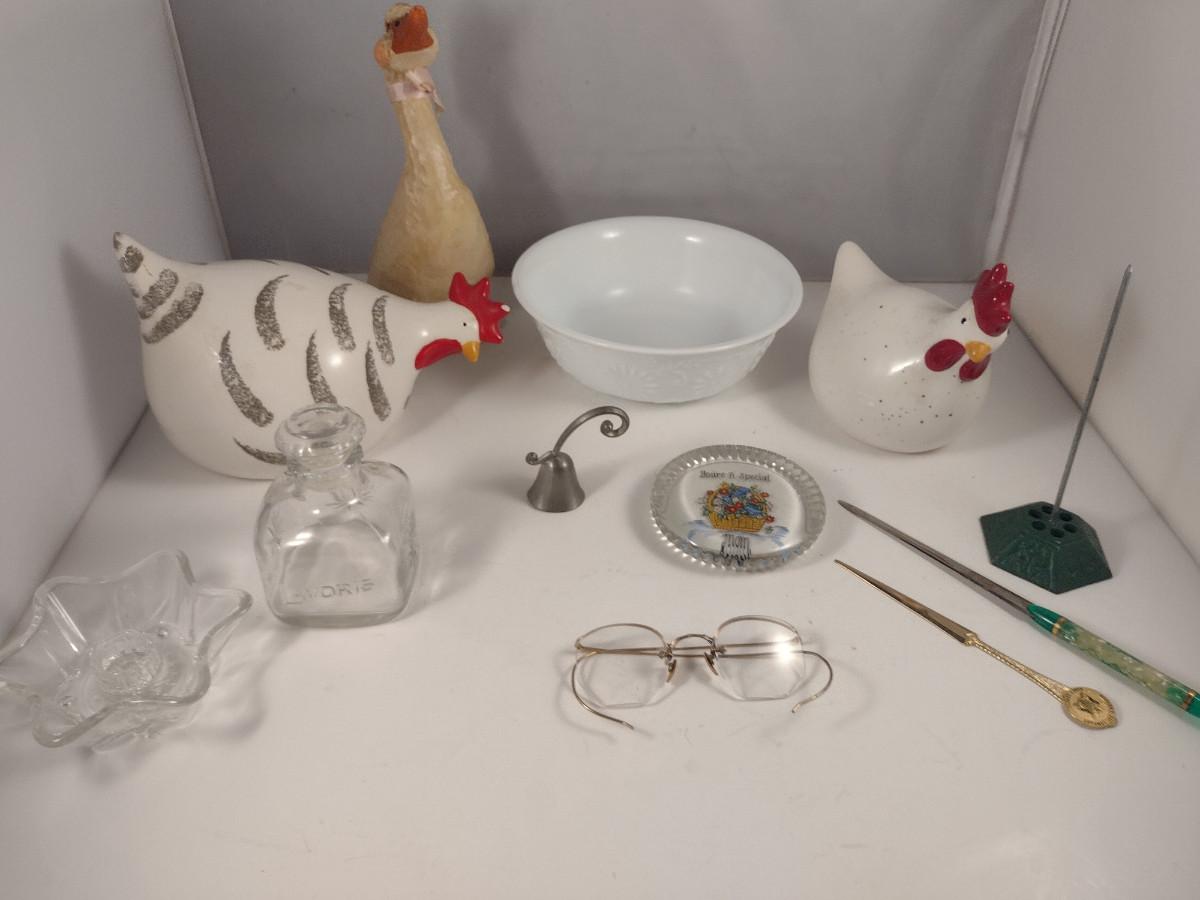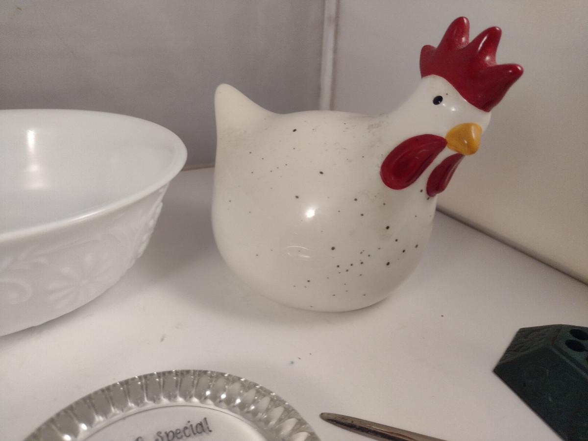Collection of Home Decor. One ceramic chicken has chipping of paint- please see all pictures.