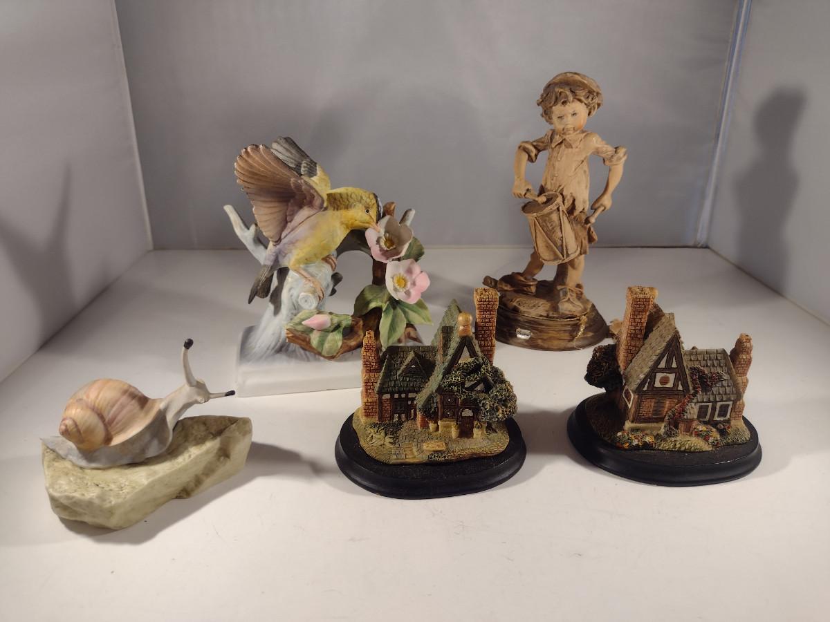 Collection of Home Decor. Snail and goldfinch are chipped/broken. Please see all pictures for condition.