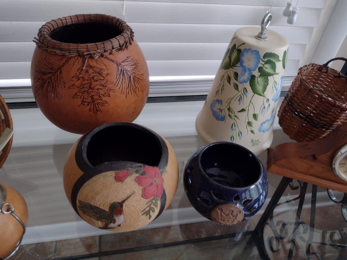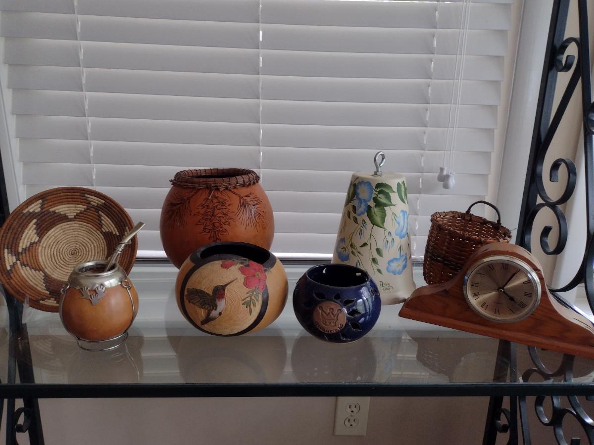Collection of Home Decor- Carved Gourds, Candle Holder, Clock, etc. Please see all pictures for selection.