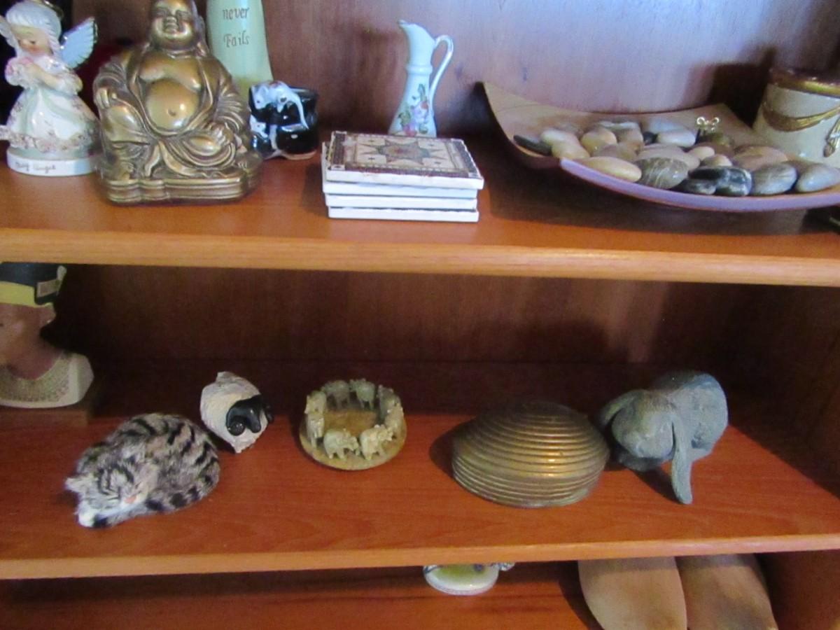 Collection of Home Decor Ceramics, Brass, Glass Figurines and More bookcase not included.