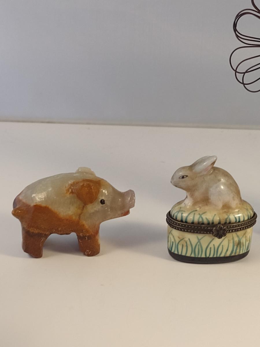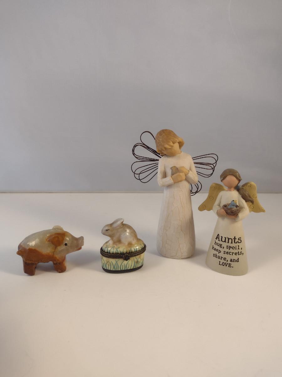 Collection of Home Decor- Willow Tree Figurines, Alabaster Pig, Rabbit Trinket Box