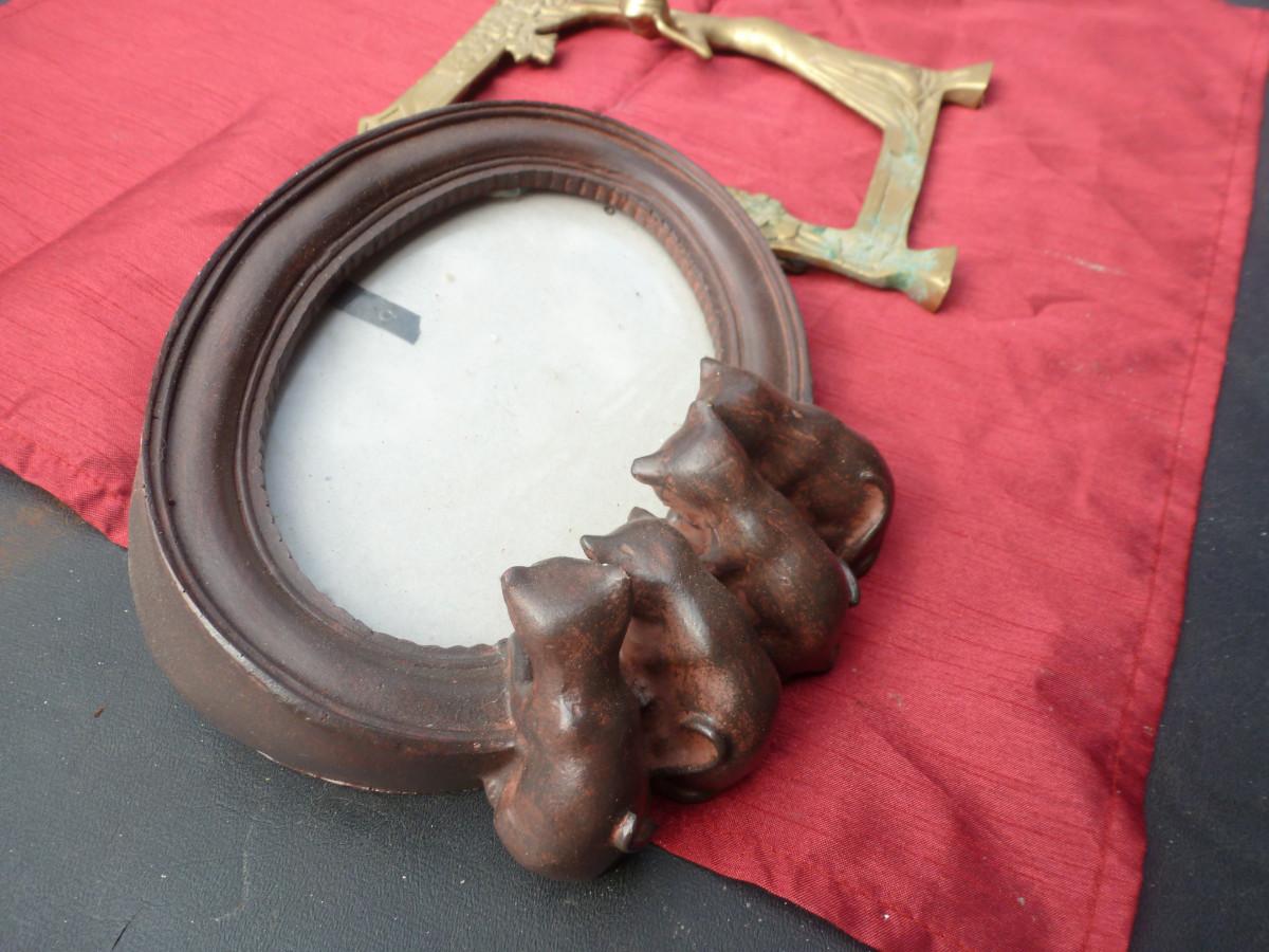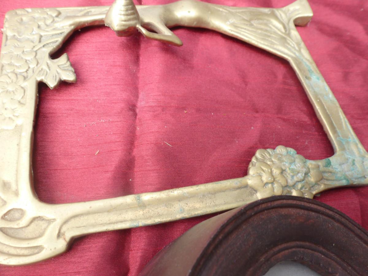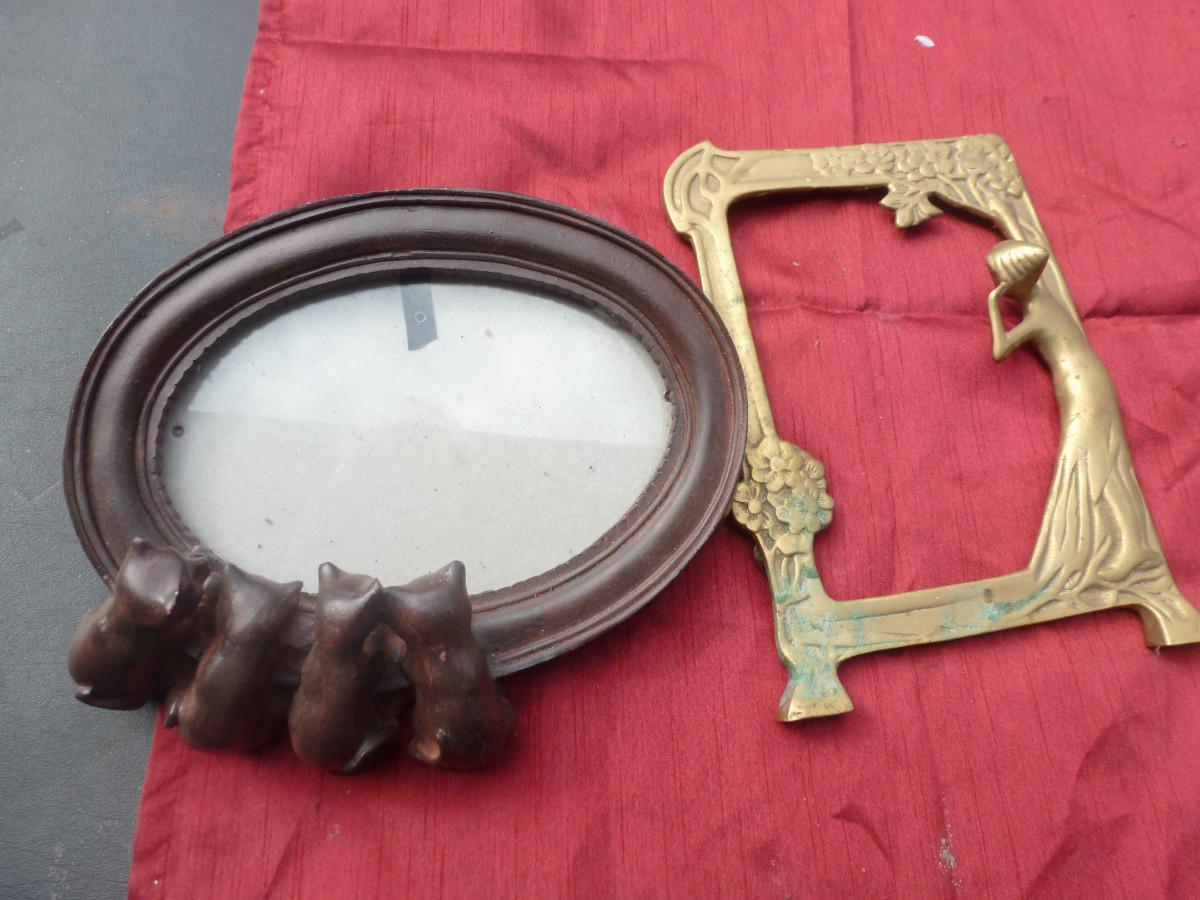 Collection of Home Decor- Wooden Cat Picture Frame and Brass Art Nouveau Frame