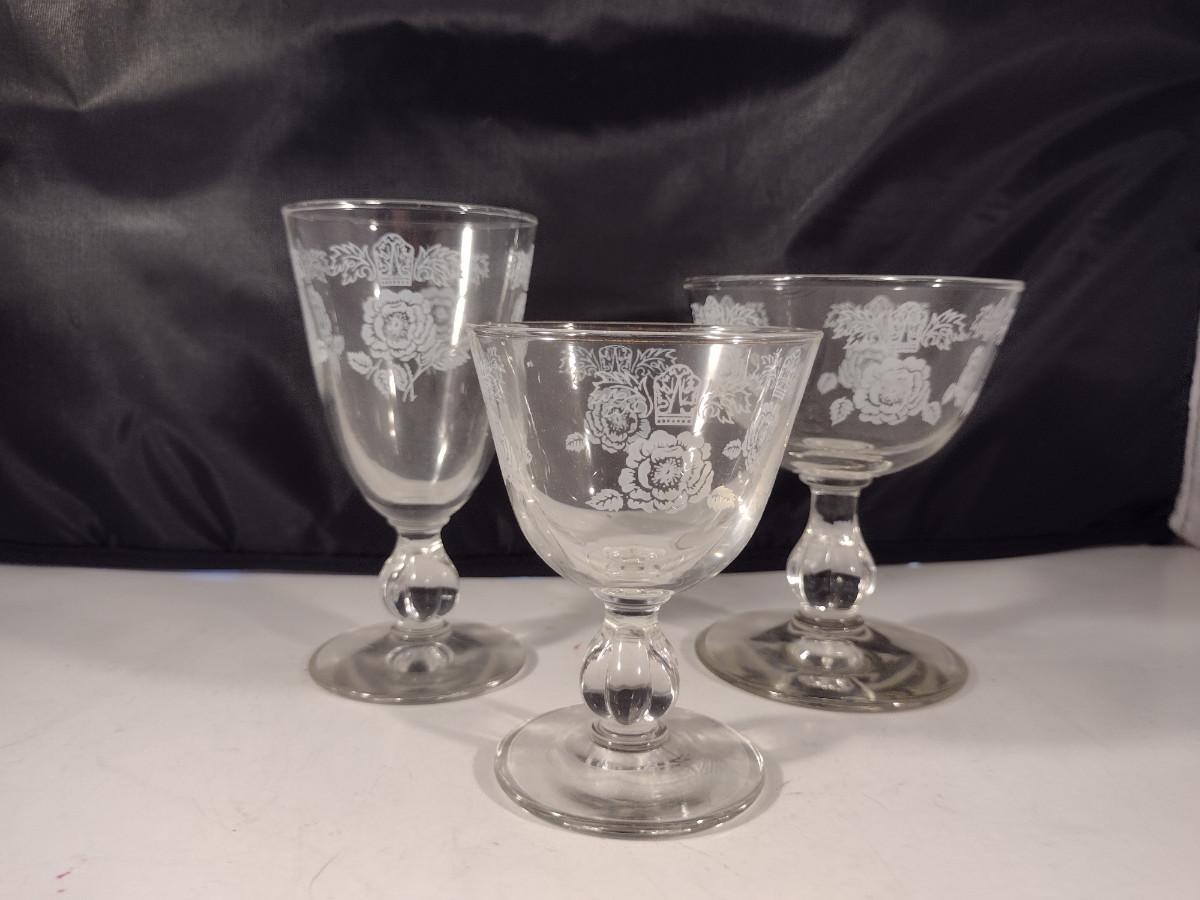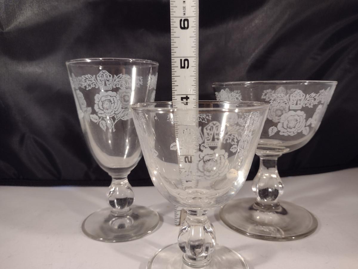 Collection of Homer Laughlin Queen Esther Glasses- 16 Pieces. Juice glasses- 4, cordial glasses- 4, sherbet glasses- 8.