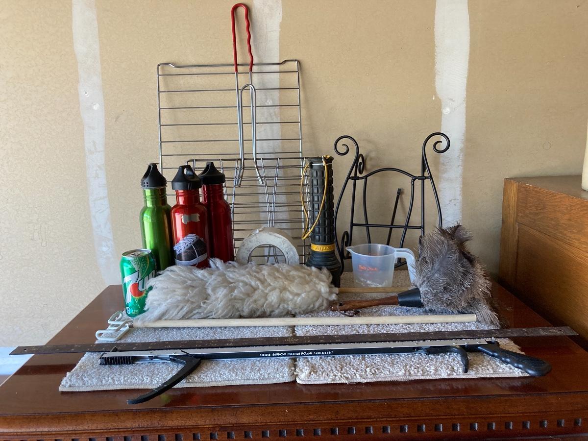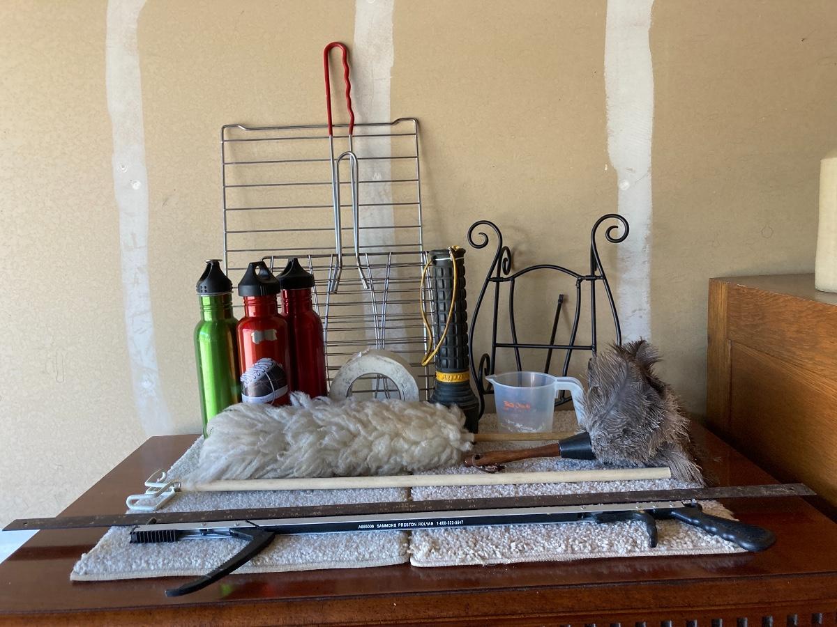 #446 Collection of Household Items: Flashlight, Water Bottles, Dusters, Grabber, Etc