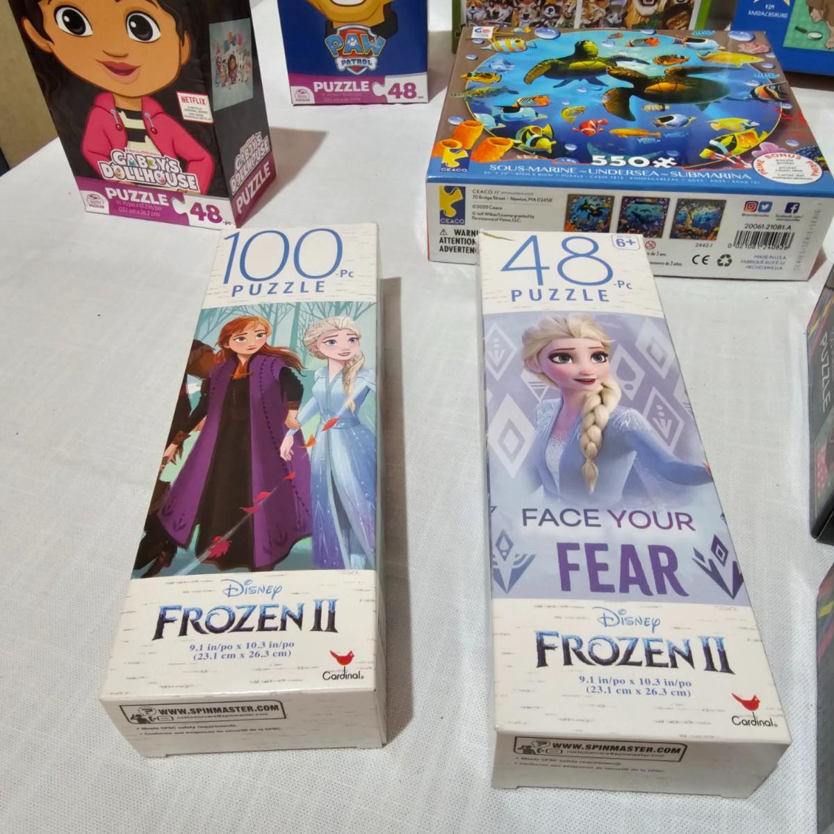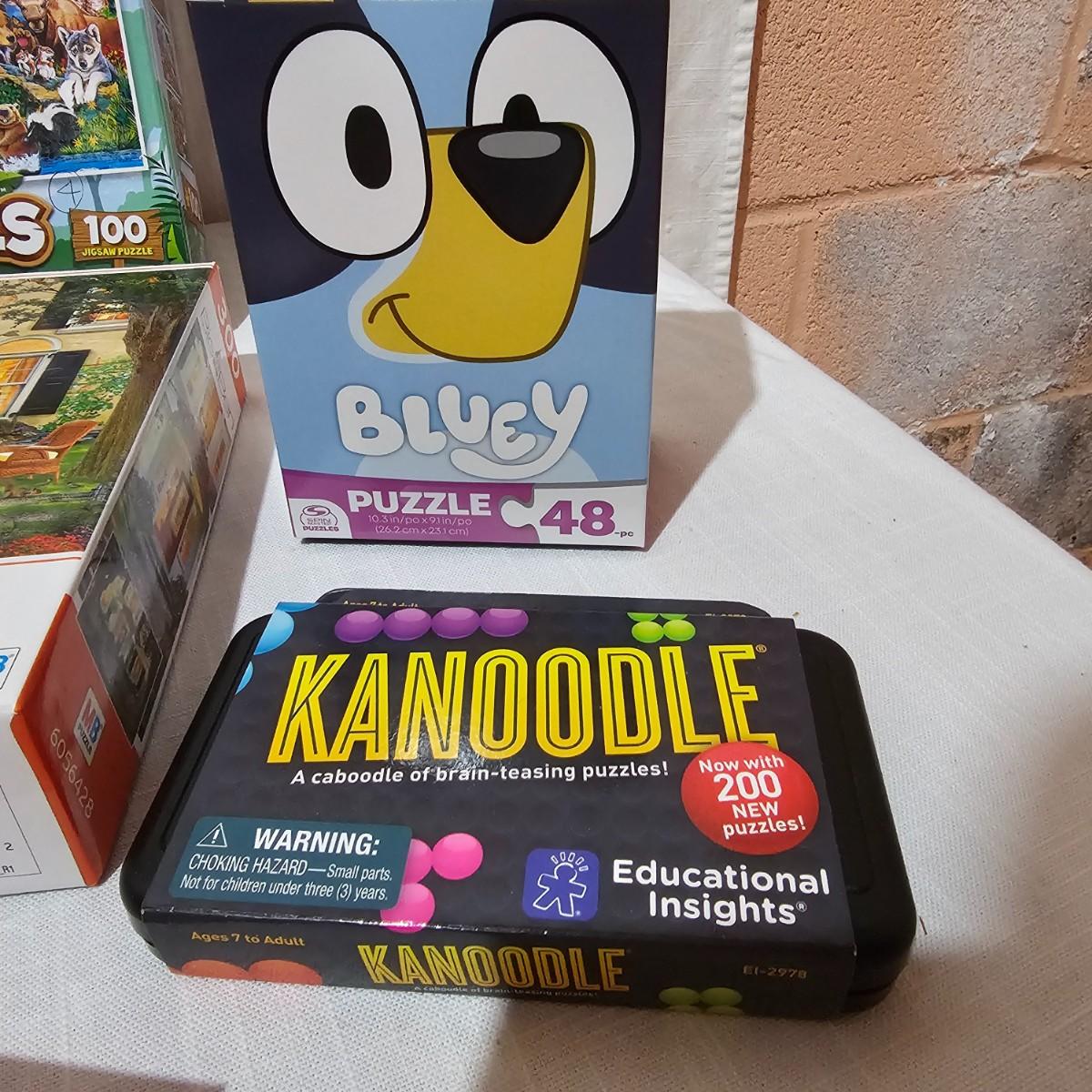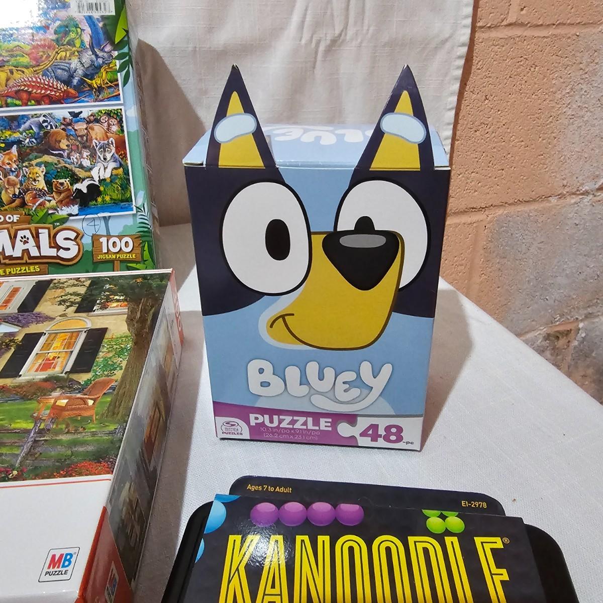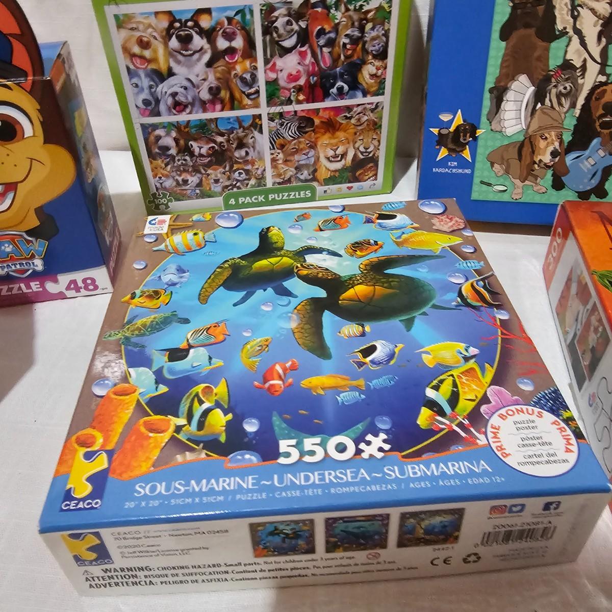 A fun grouping of puzzles for kids and adults. Piece counts range from 24 up to 1000, subjects are cartoons, animals and architecture. Celebri Dogs puzzle is patterned after famous actors, singers and others with a guide to who is who. 16 puzzles in all. See photos for details. Shipping available