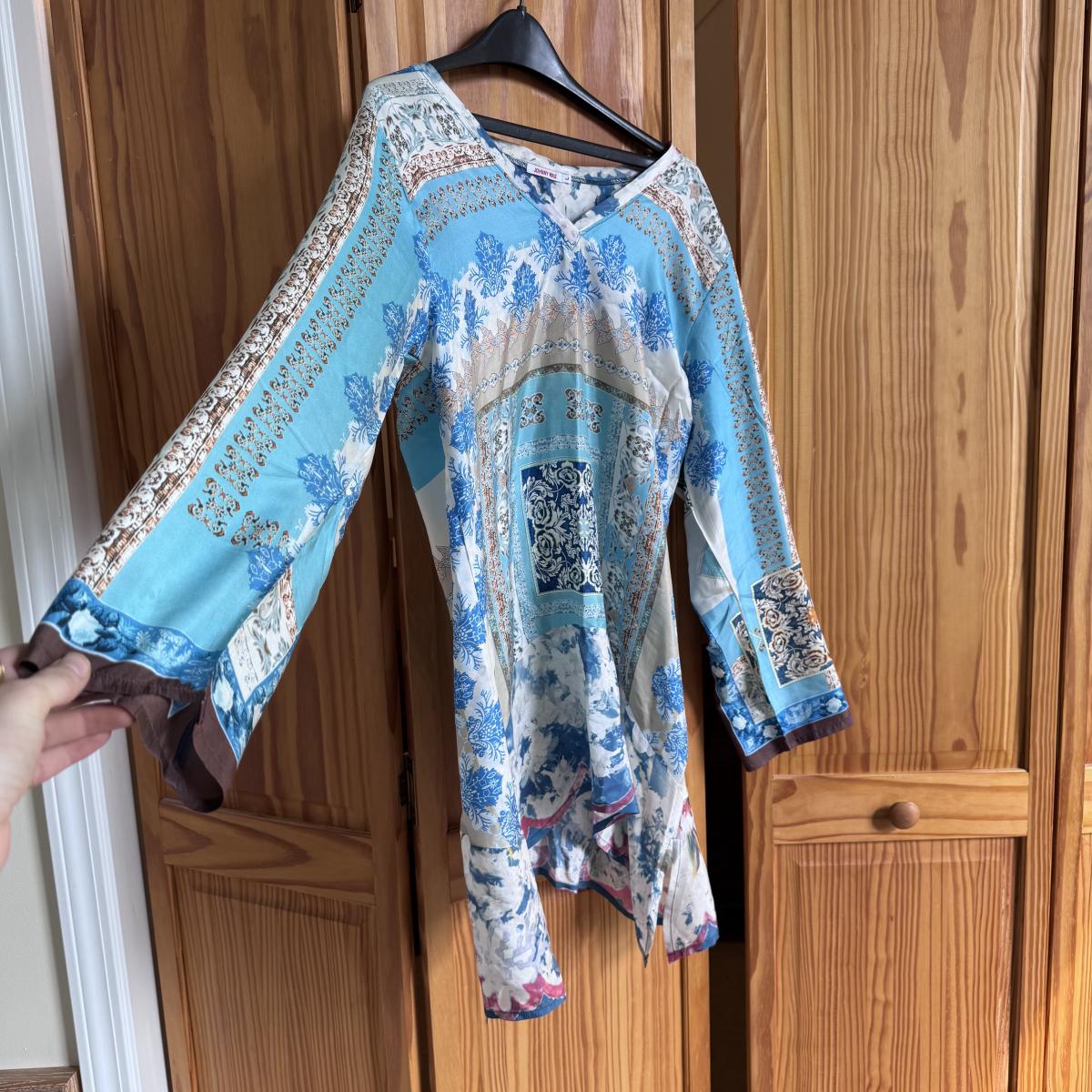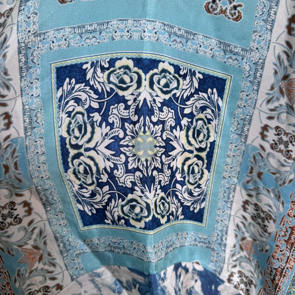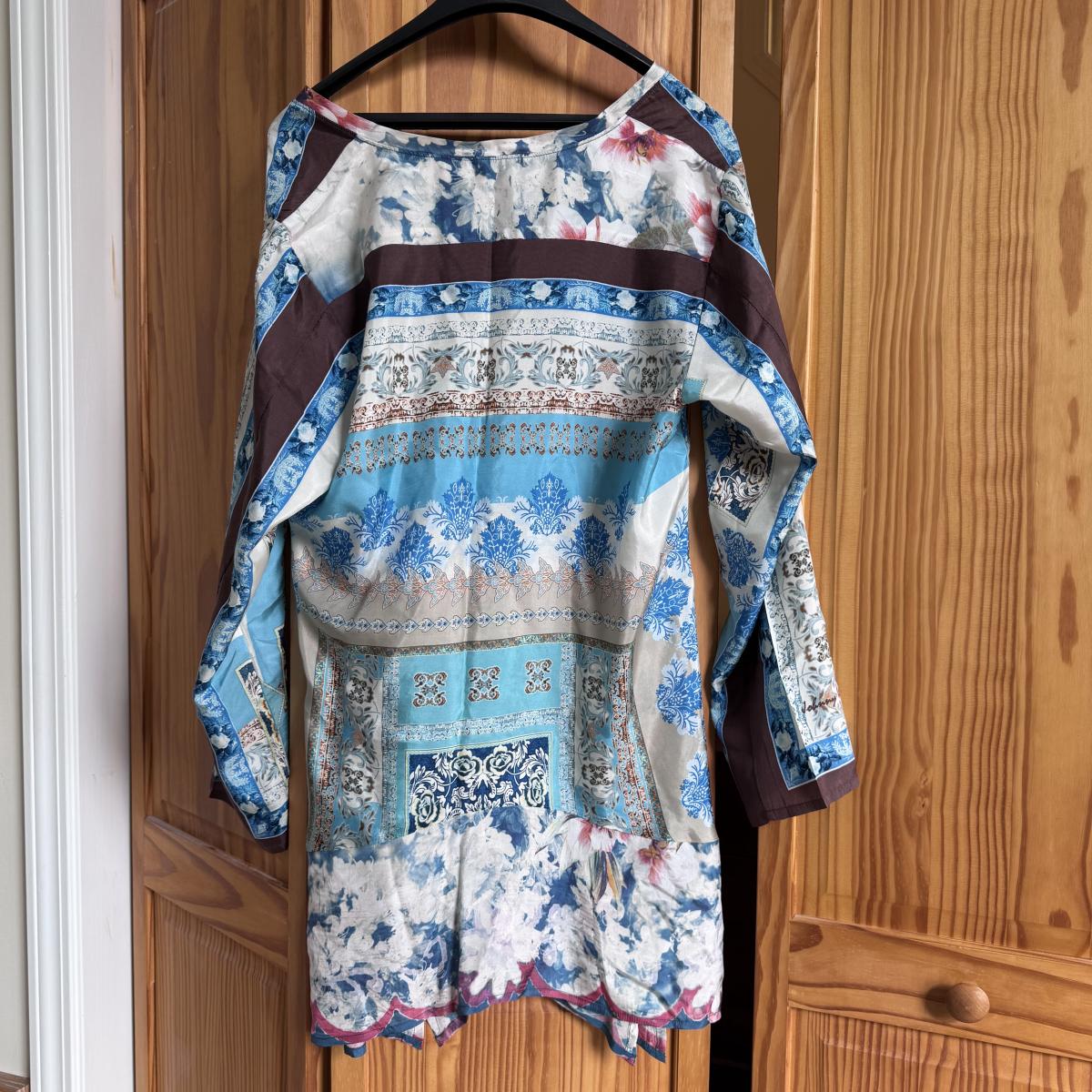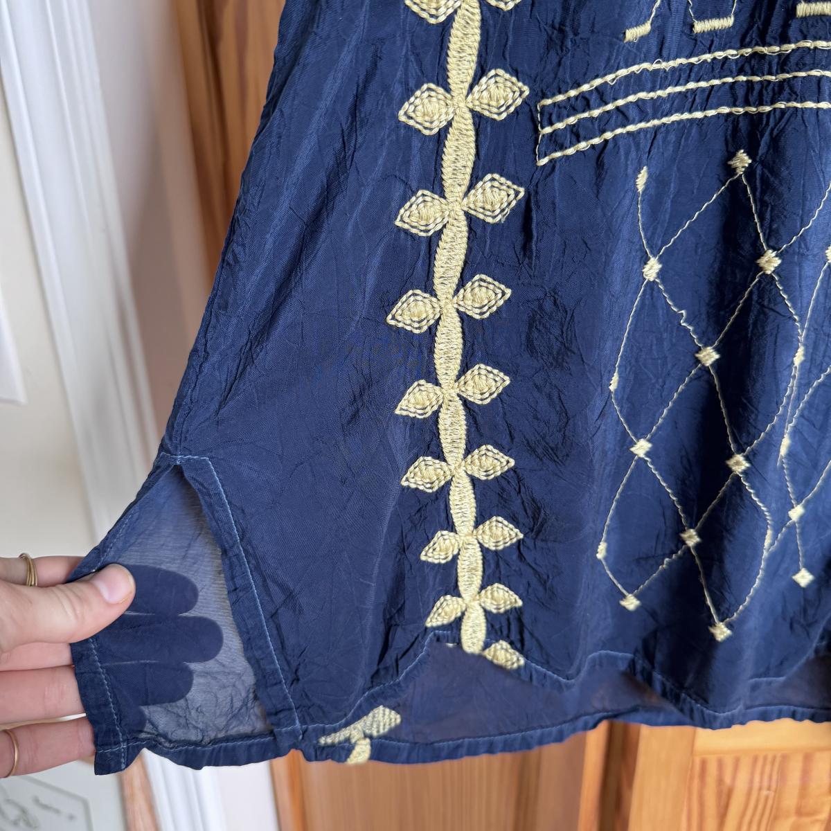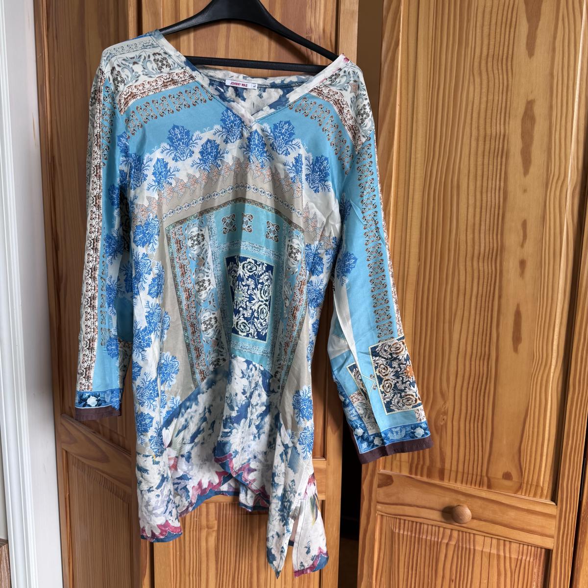 This lot includes four blouses from Johnny Was, all sized at XL. The first blouse individually pictured is new with tags. The last two blouses pictured have a few stains on them - see pictures included. Shipping available.