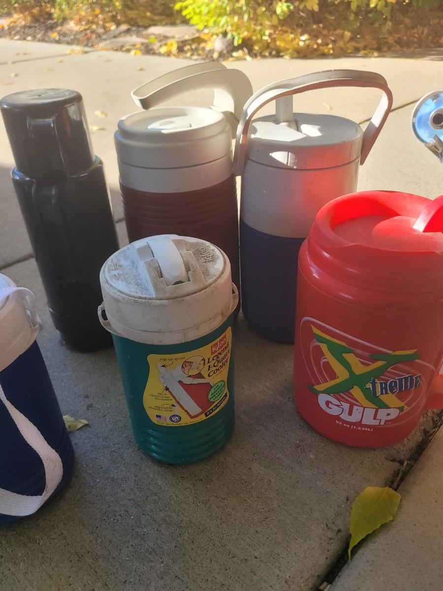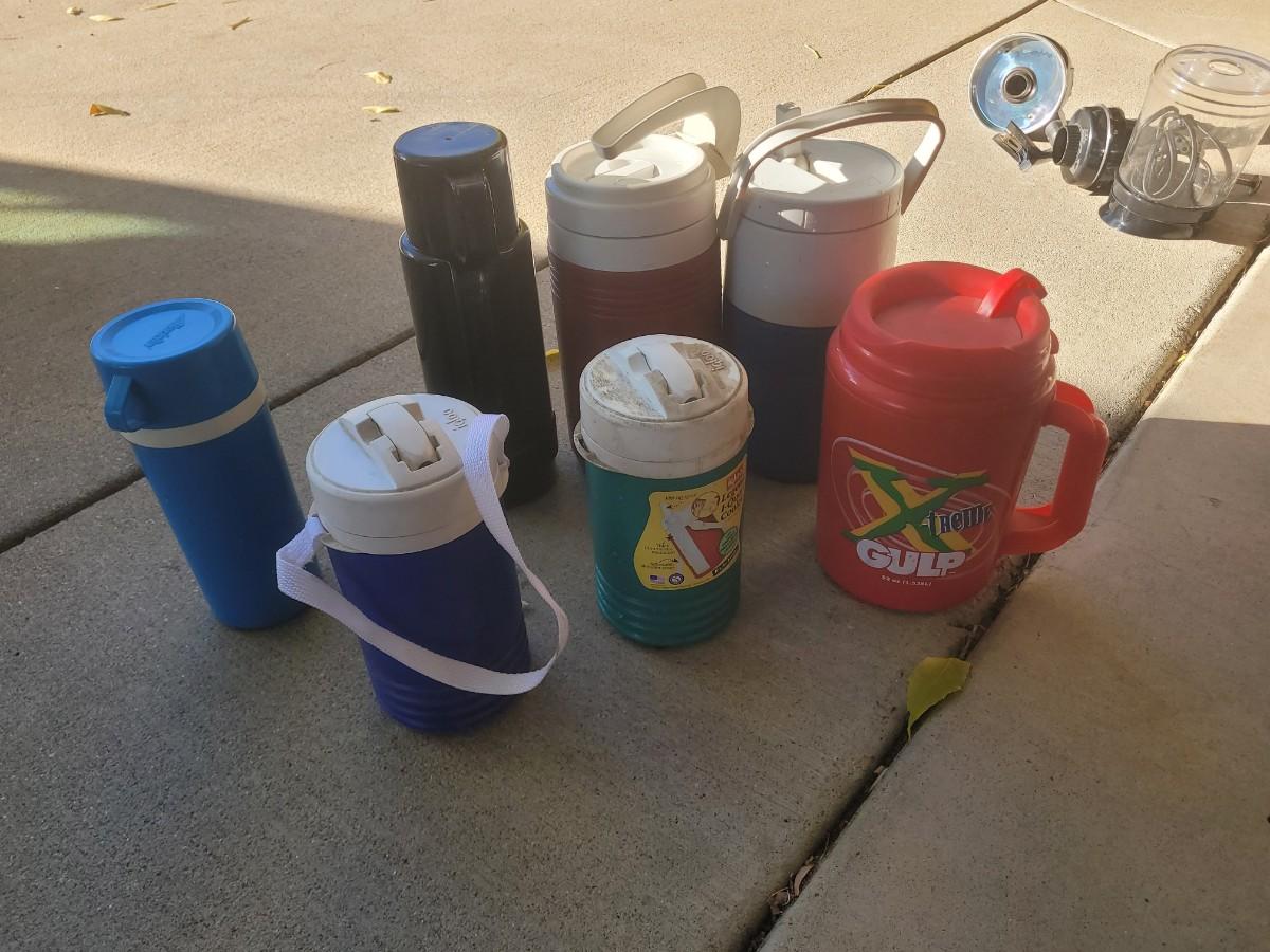 Collection of jugs, thermos's and 1 xtreem gulp 52 oz