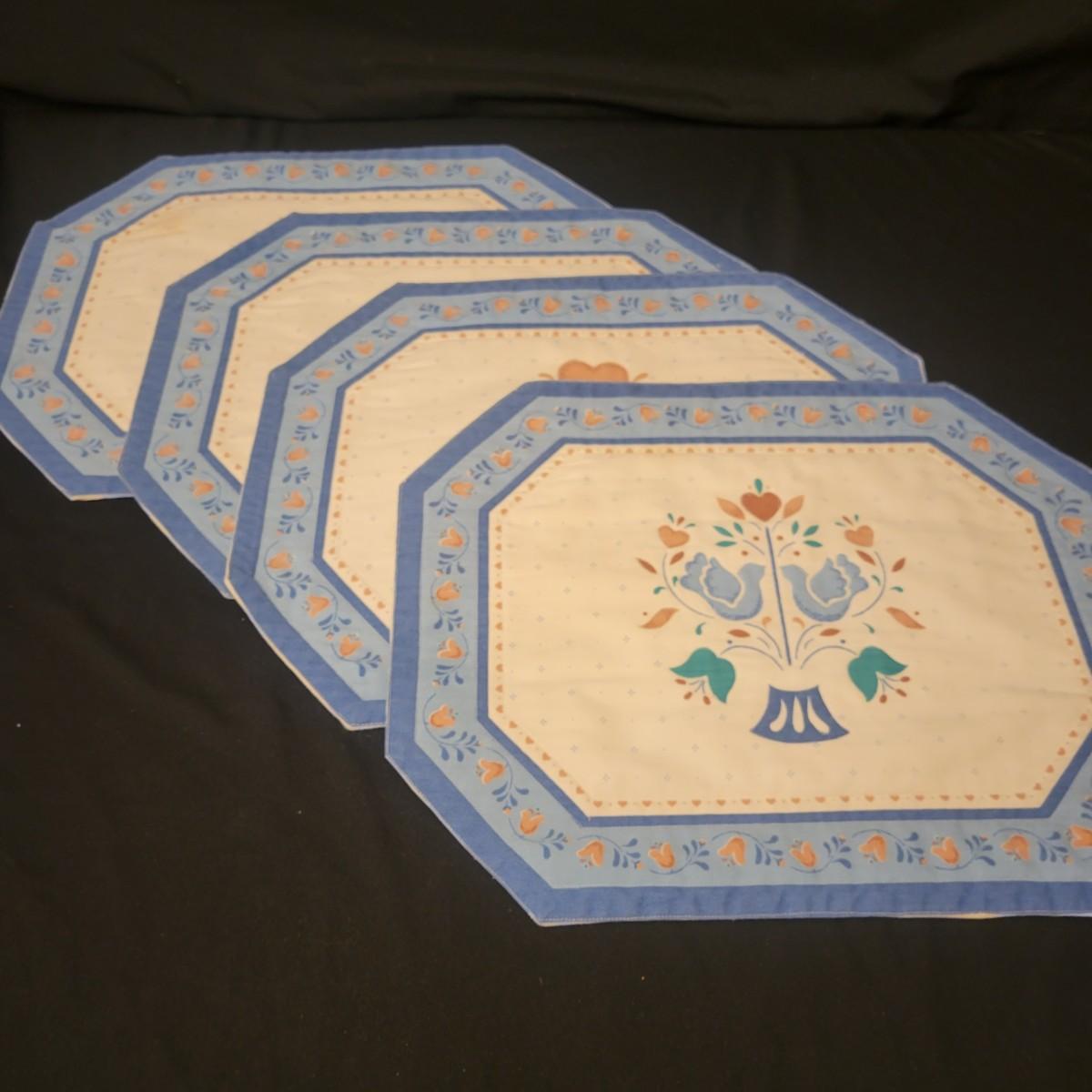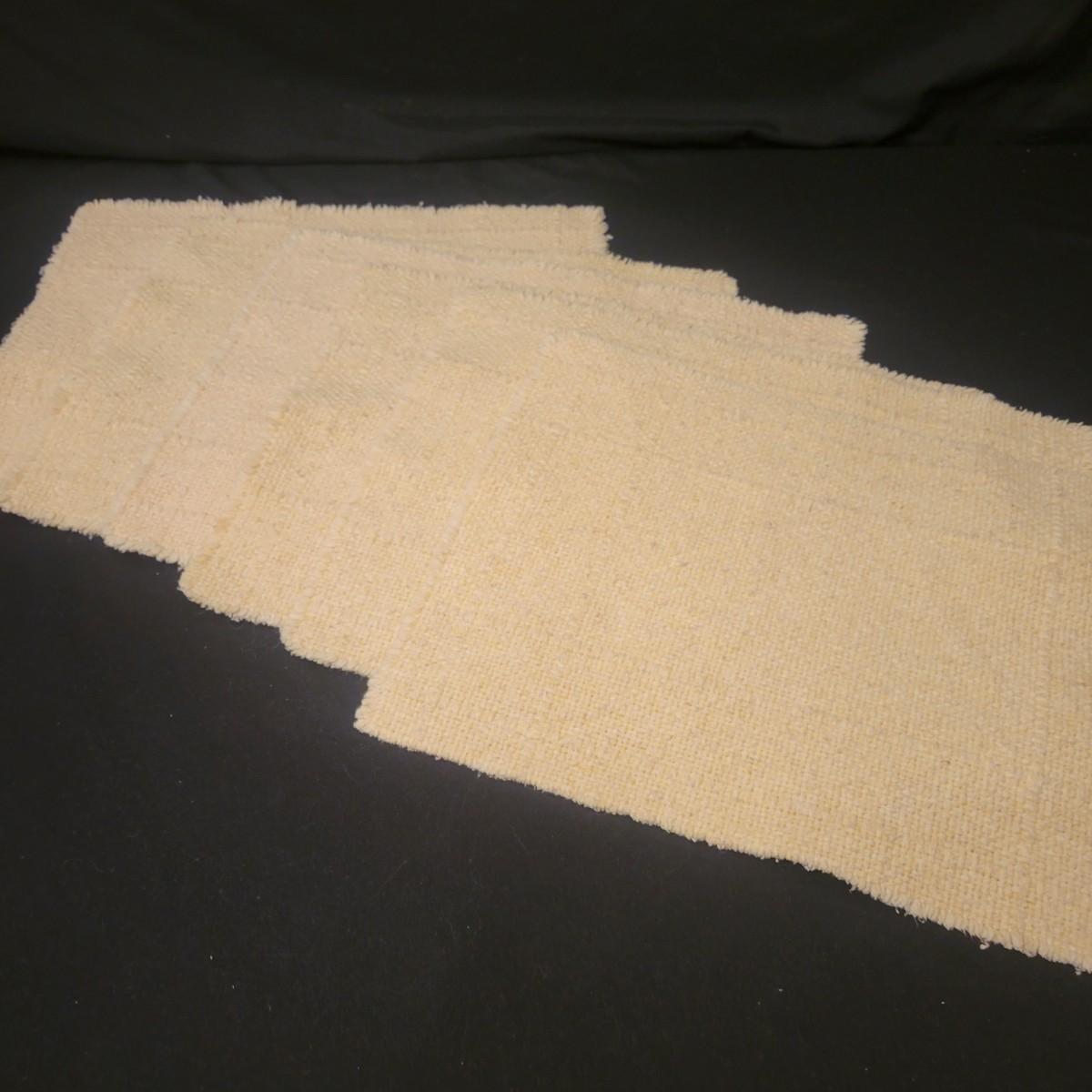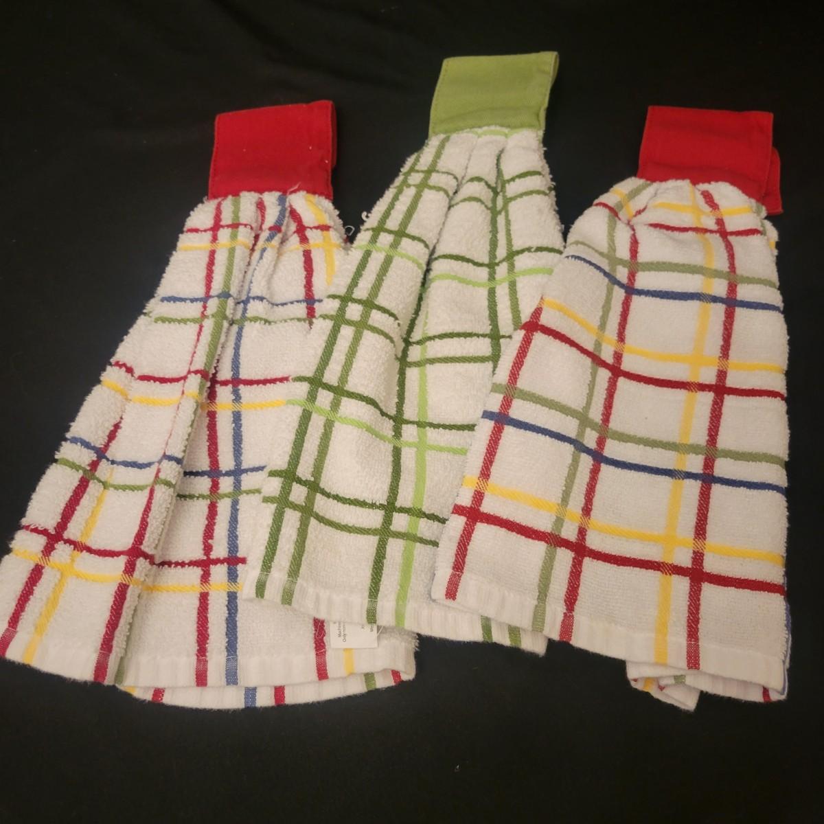 A large assortment of kitchen linens in good condition with some minor stains. Included in this lot are multiple sets of place-mats, kitchen towels and cloths, multiple sets of kitchen gloves and more. Largest linen is the beige plaid linen and measures approximately 43" x 48". Shipping available