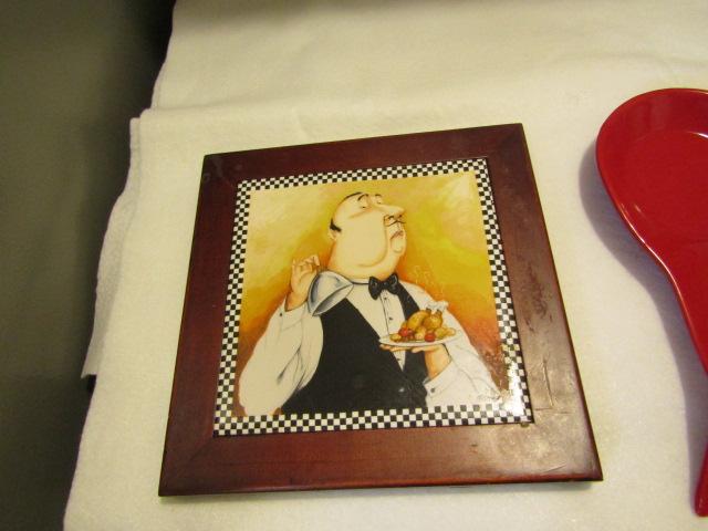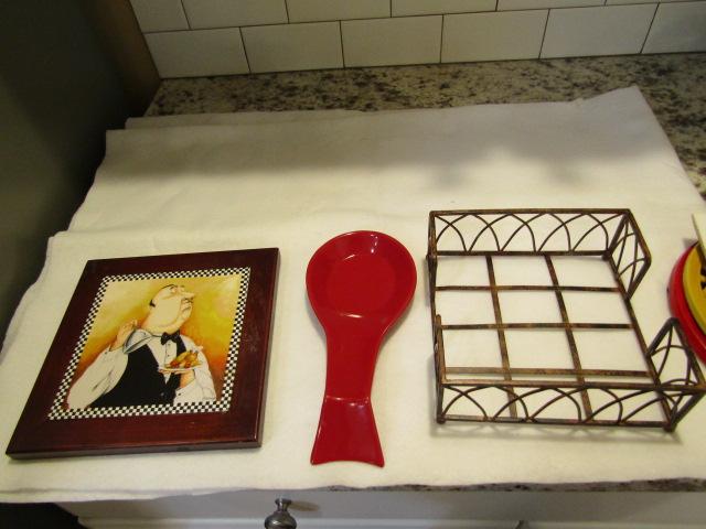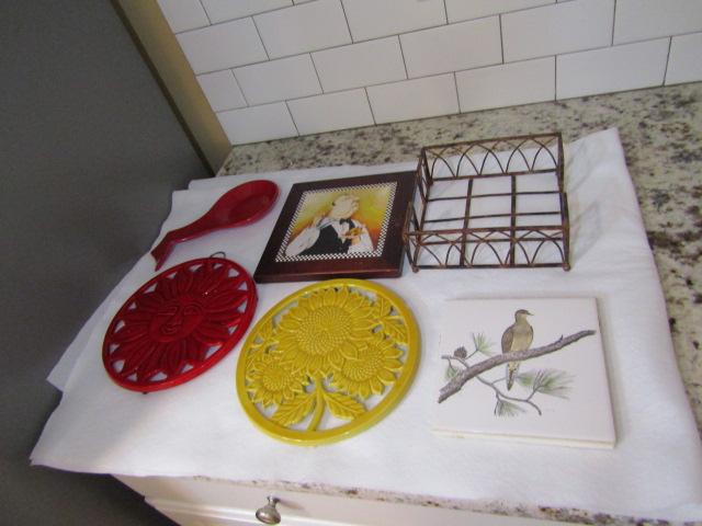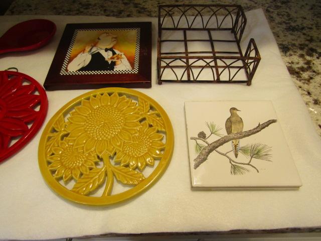 Collection of Kitchen Smalls- Trivets, Spoon Holder, Napkin Holder
