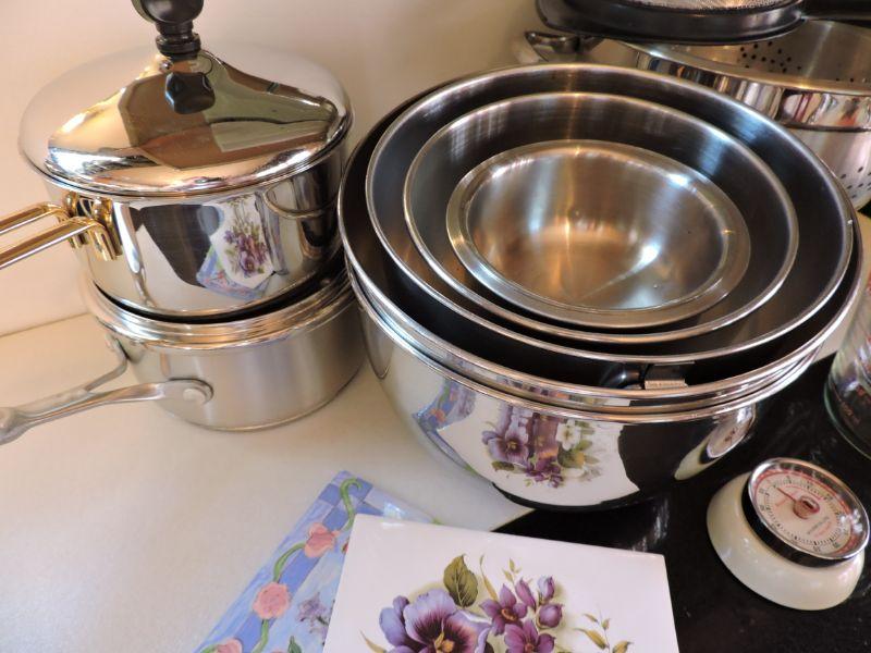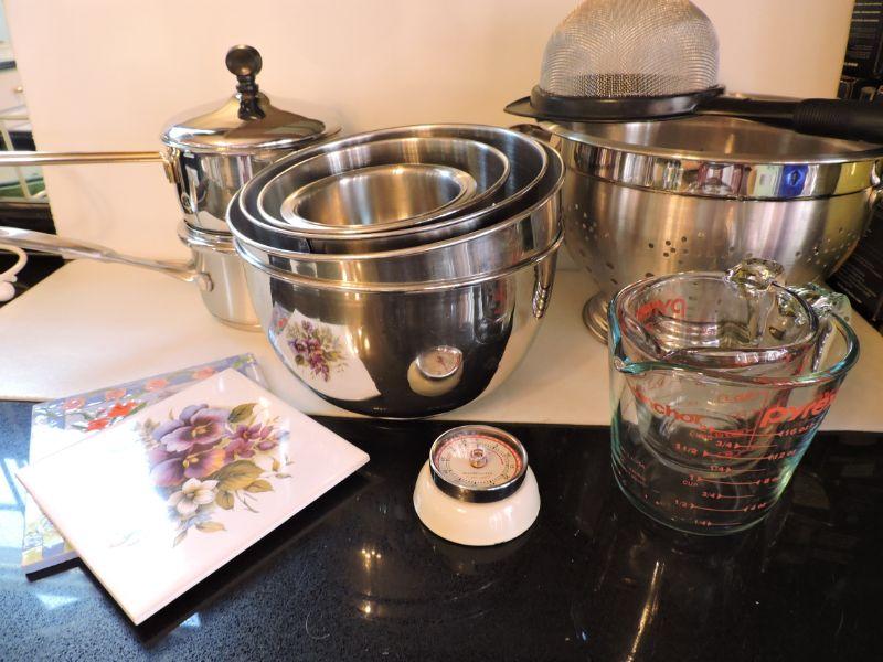 Sauce pans, mixing bowls, strainers, and more! **Please read Terms and Conditions before placing a bid. Pick up is Wednesday, September 25 from 4pm to 7pm and Saturday, September 28 from 9am to 1pm in Williamstown, NJ. All sales are final. All sales are as is, where is. Please review all photos. Any props included in photos are not included in listing. All measurements are approximate.