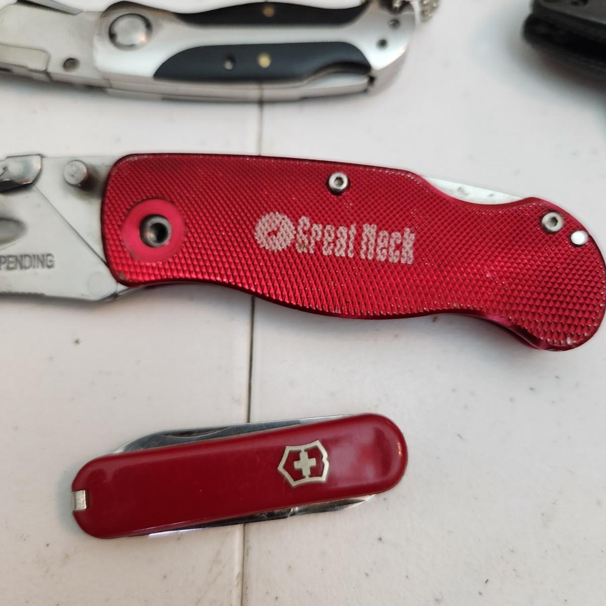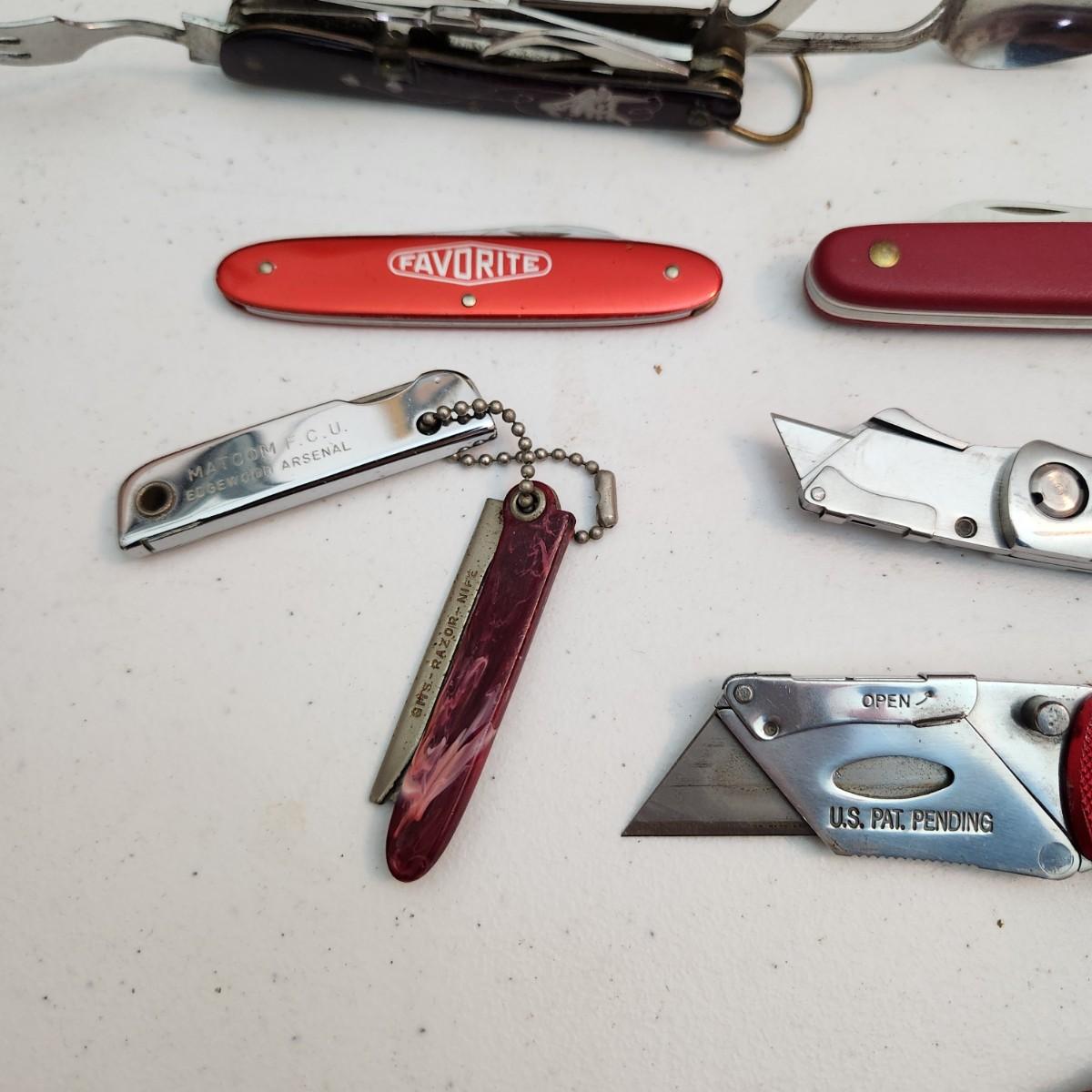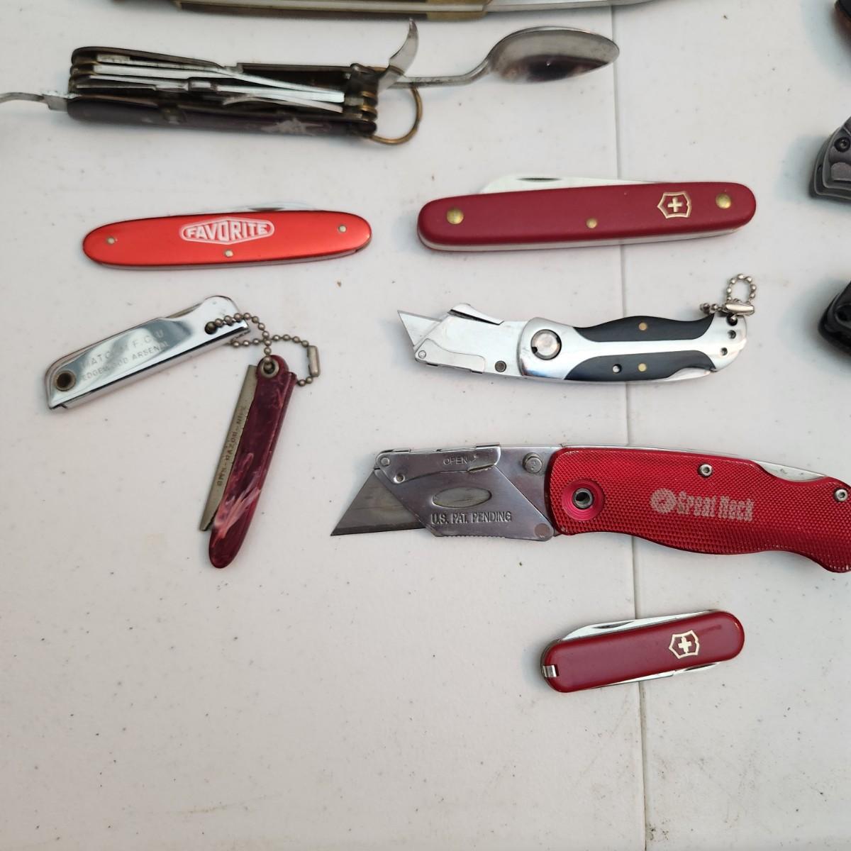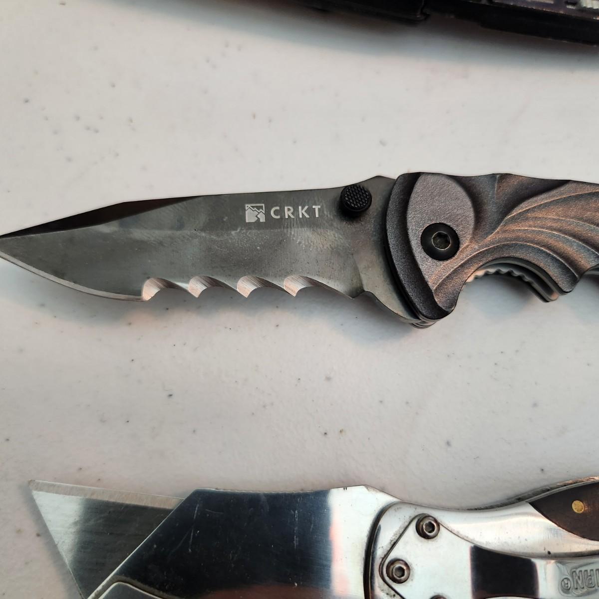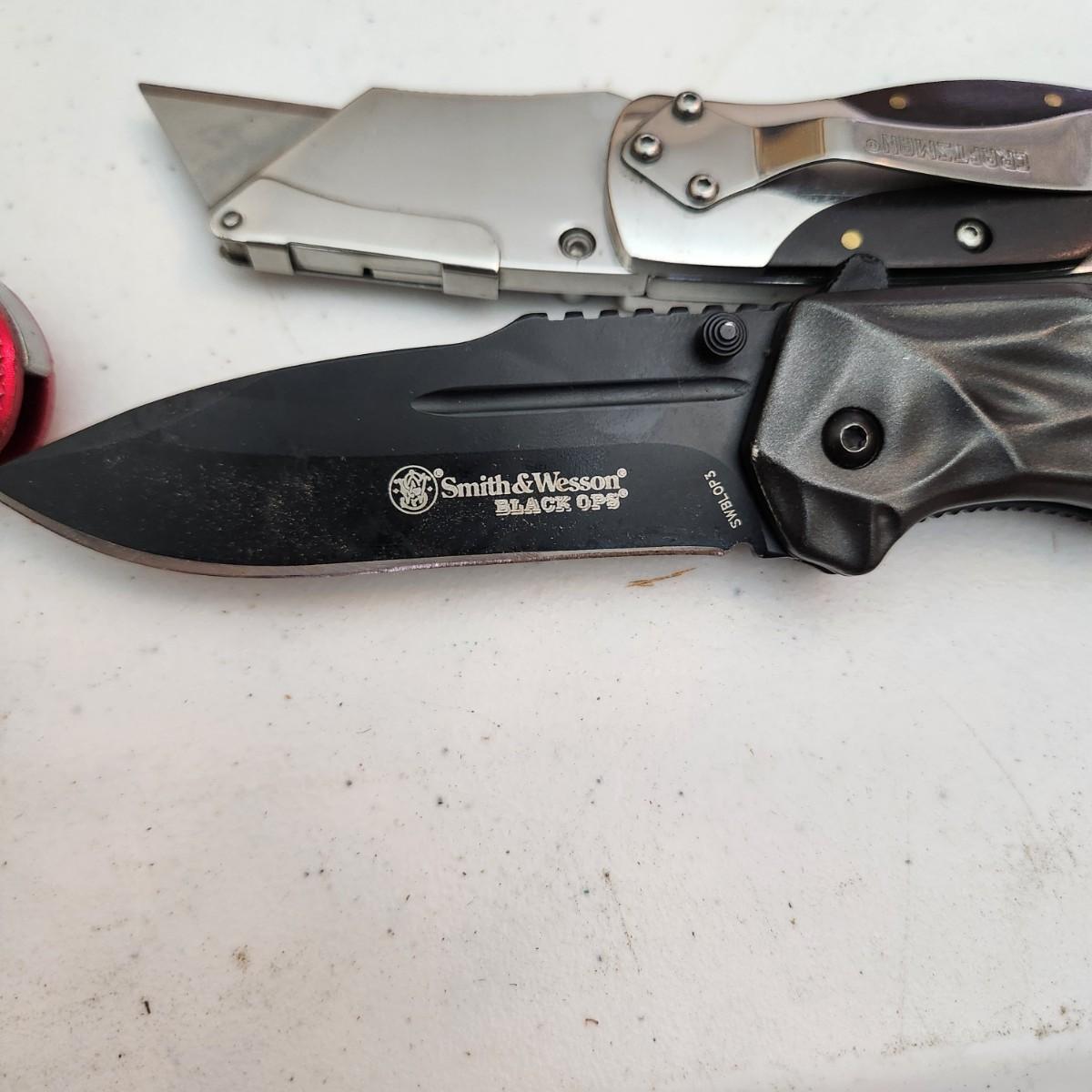 Collection of Knives, Camping Tool, Pocket Knives, Swiss Army, Smith & Wesson Folding Black Ops, CRKT , Craftsman