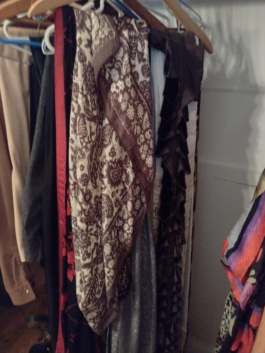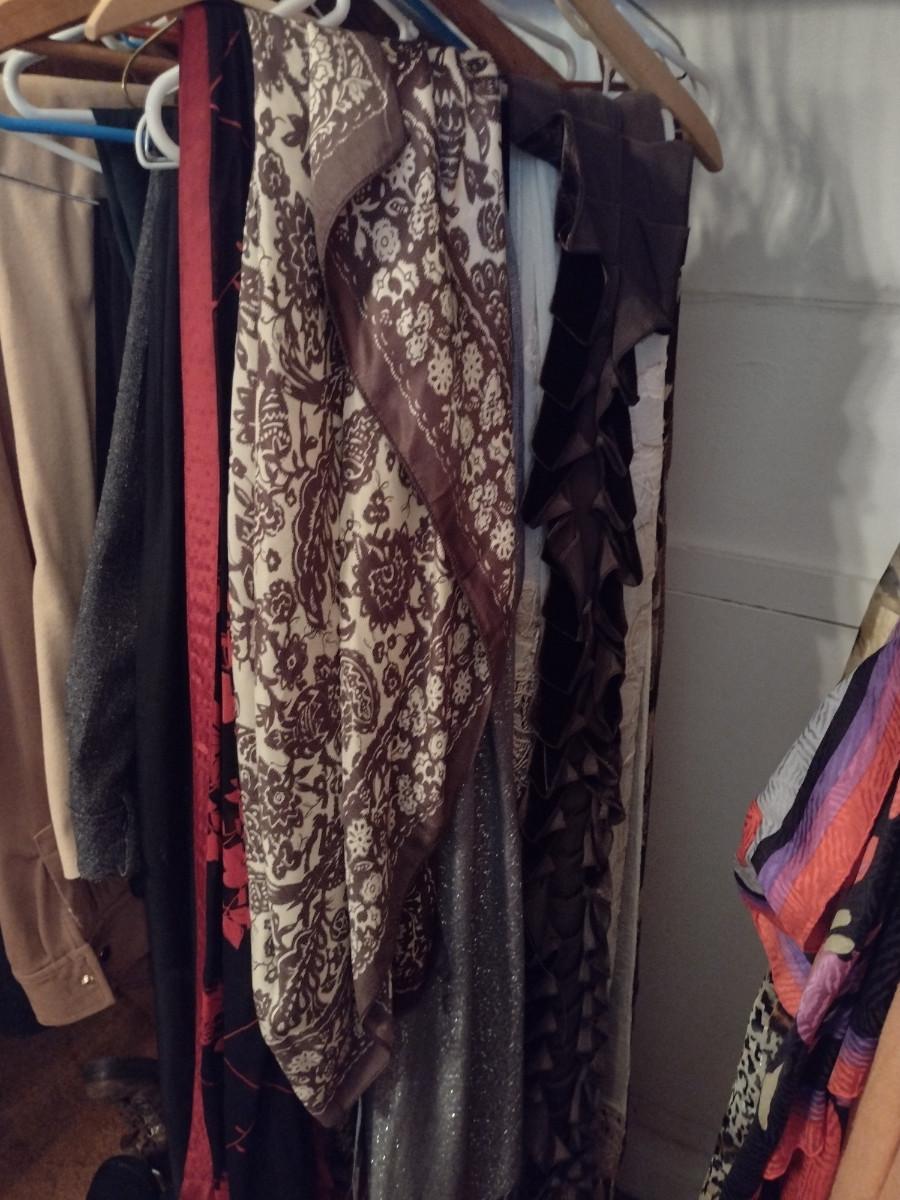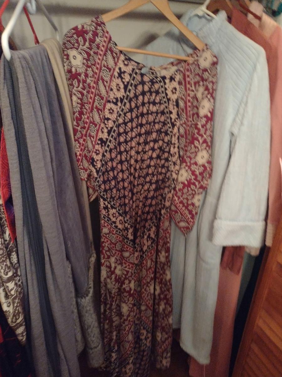 Collection of Ladies Clothing and Shoes. Clothing sizes medium to extra large. Shoes size 8. All in used condition- some shoes are heavily used.