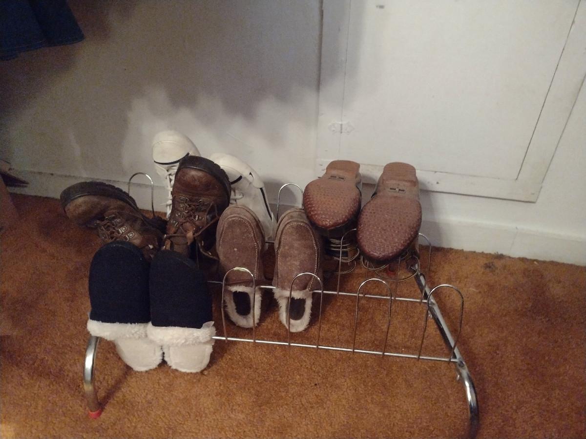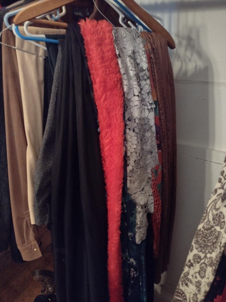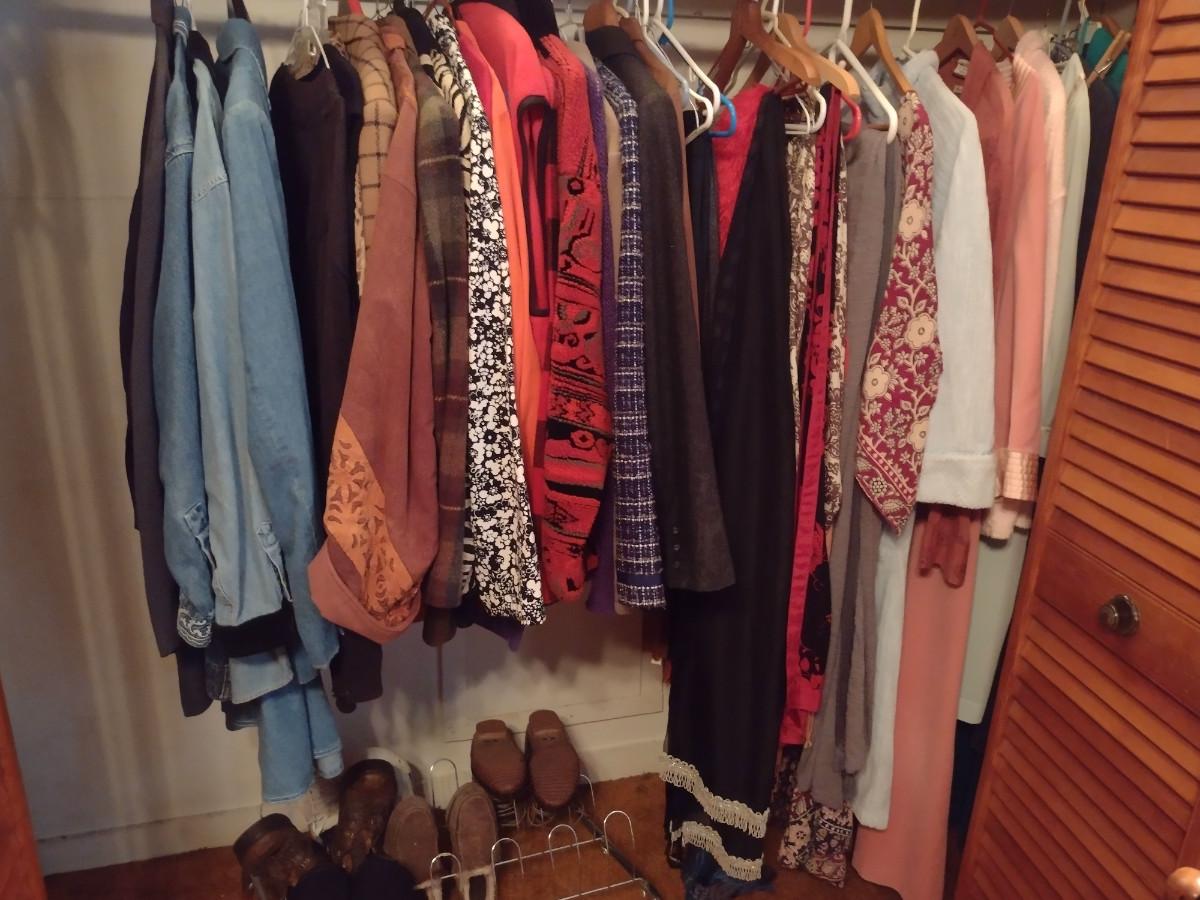 Collection of Ladies Clothing and Shoes. Clothing sizes medium to extra large. Shoes size 8. All in used condition- some shoes are heavily used.